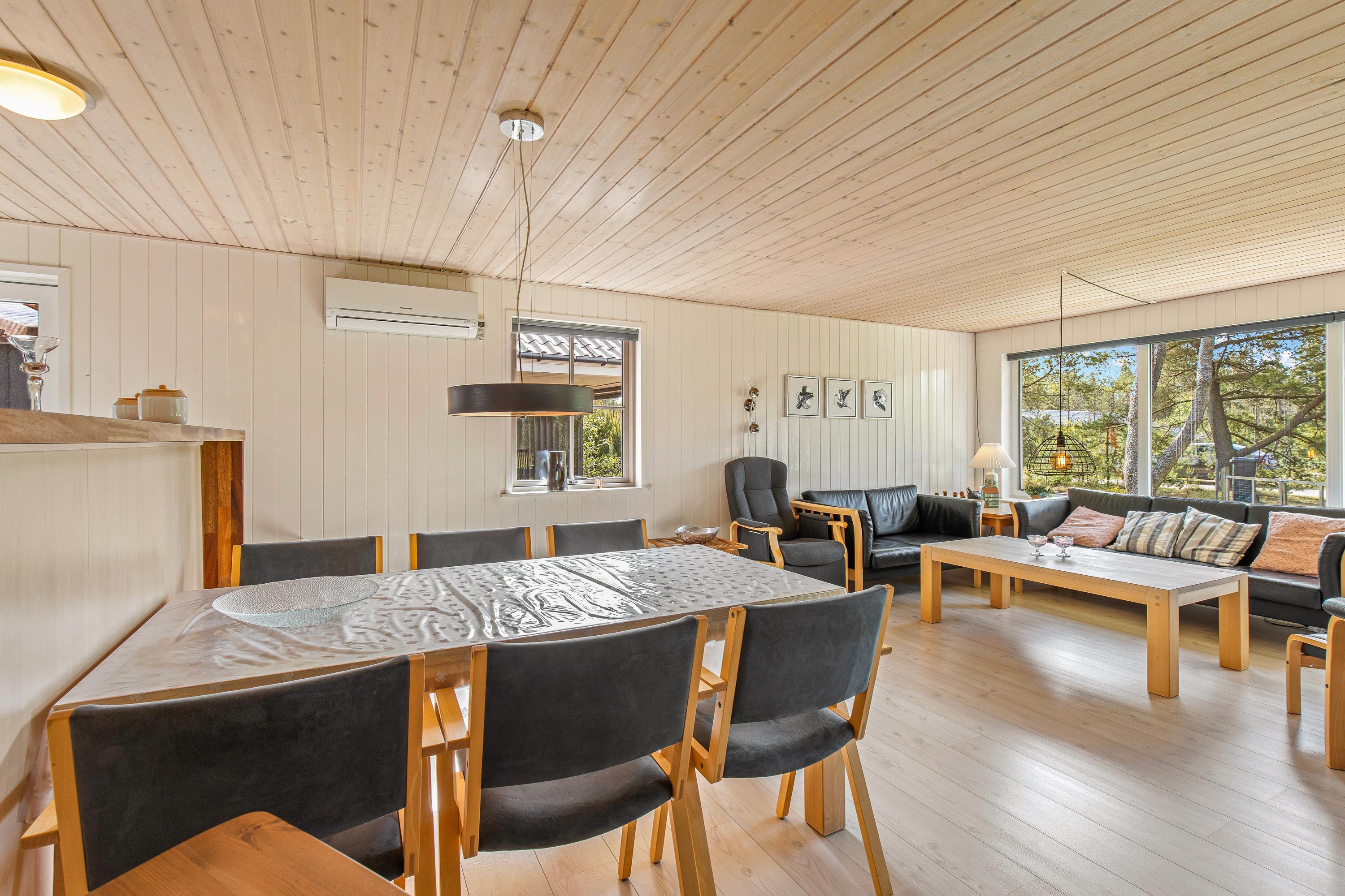 Få hurtigt fordelt sovepladserne mellem jer, og gem udpakningen til senere - i den åbne stue står det hyggelige sofahjørne klar, så I kan slappe af med en god bog eller planlægge de næste dages udflugter og oplevelser, og er solen fremme, er der gennem stuen udgang til en af de to dejlige terrasser.