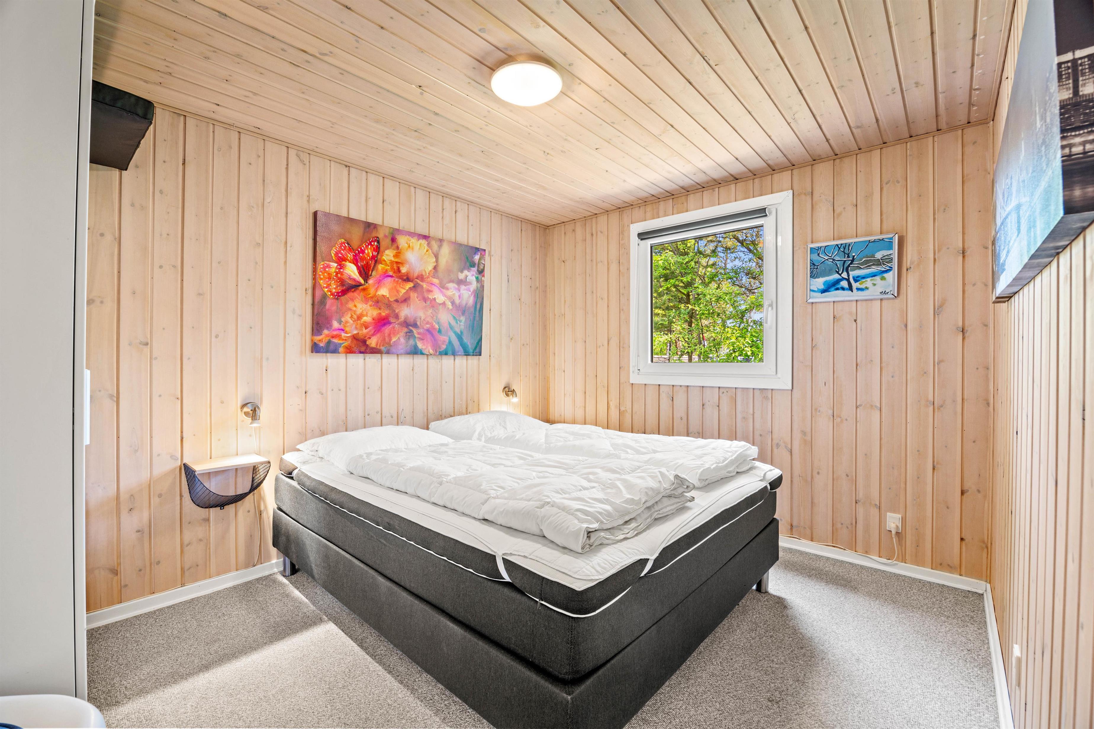 I sommerhuset er der plads til 6 personer fordelt på 3 indbydende soverum, som sikrer, at alle kan trække sig tilbage til en behagelig nats søvn. De 2 badeværelser, begge udstyret med gulvvarme, tilbyder morgenkomfort og den ene byder på ekstra luksus i form af en sauna og tømmespa, hvor I kan slappe af og lade dagens aktiviteter glide væk.