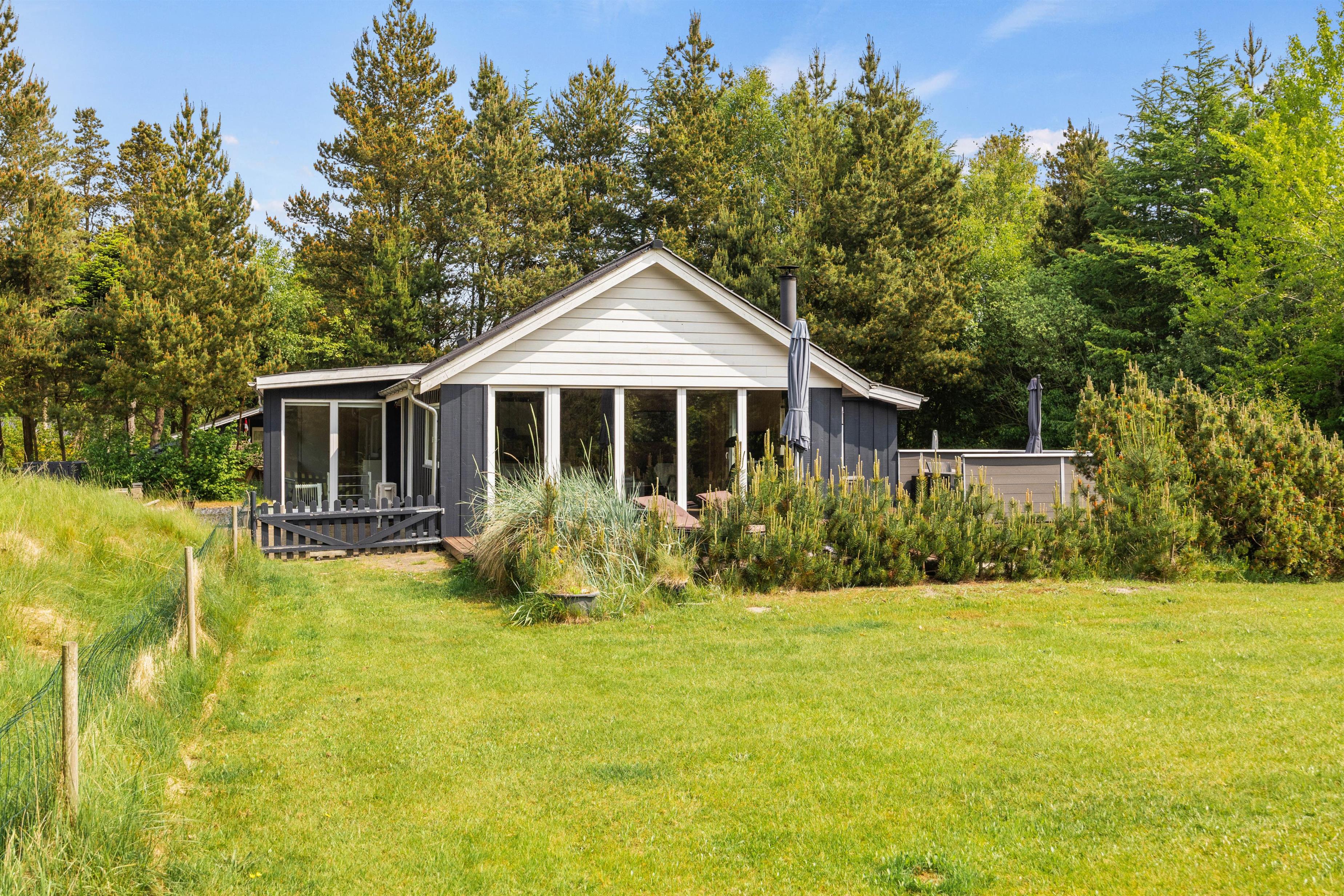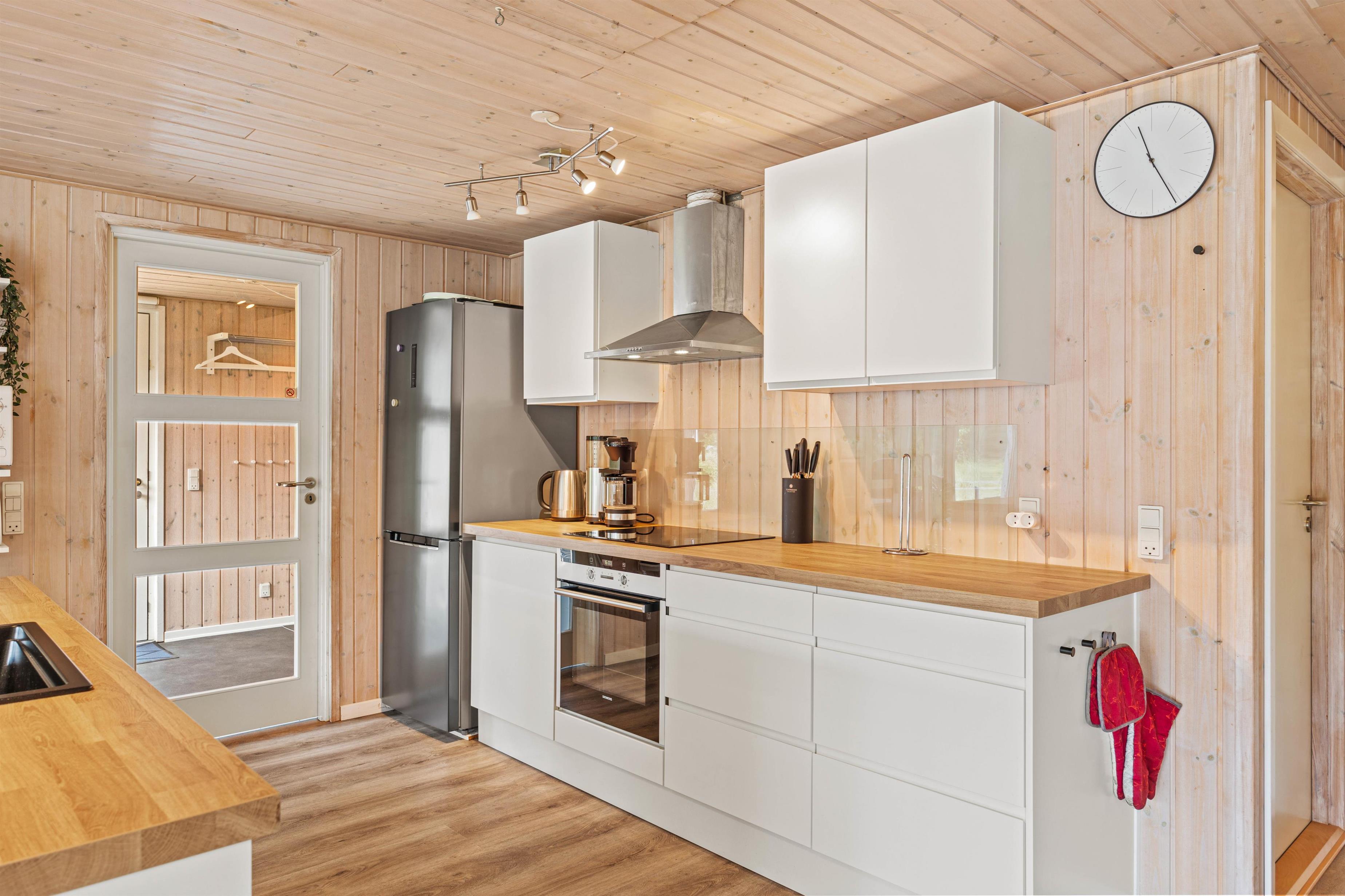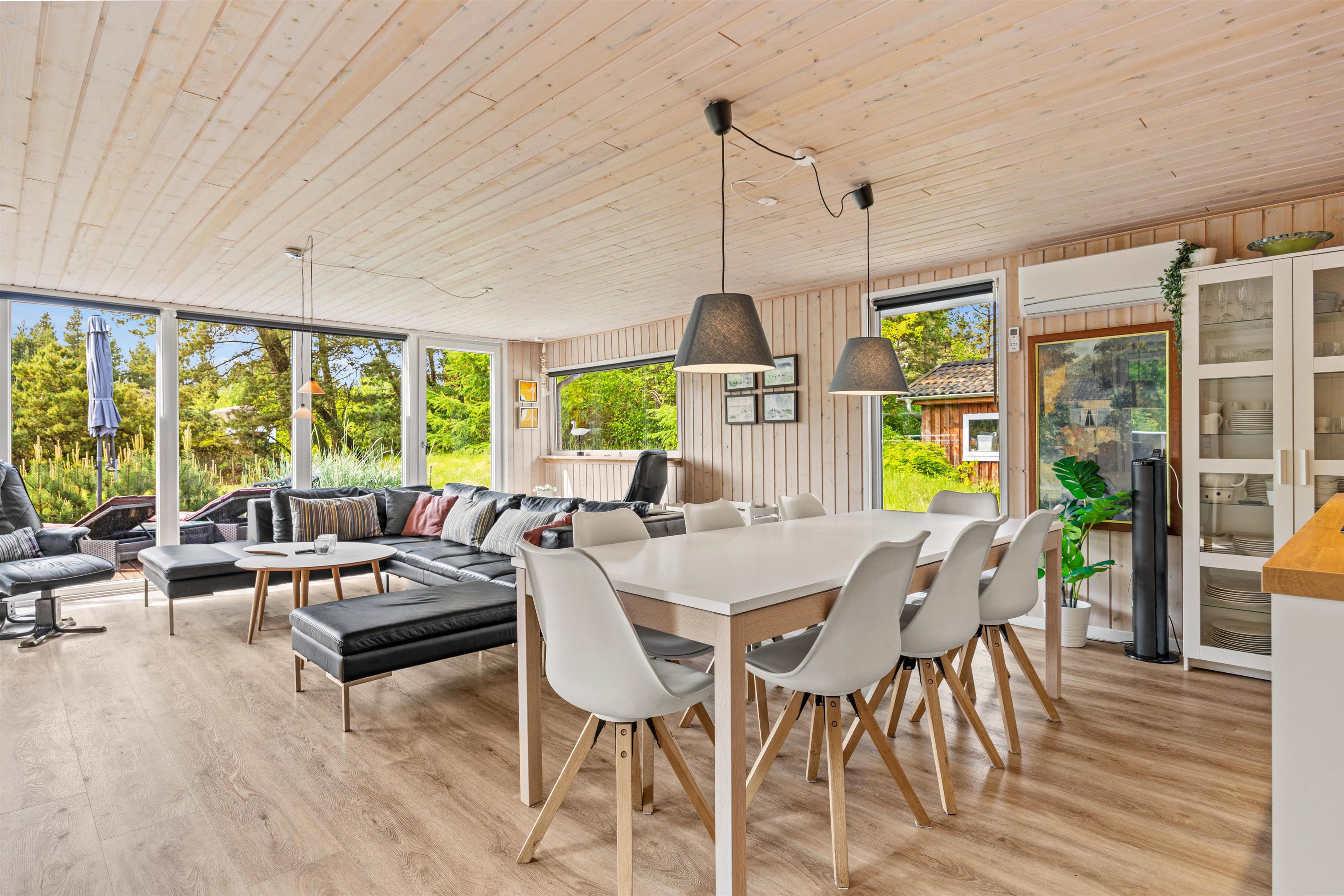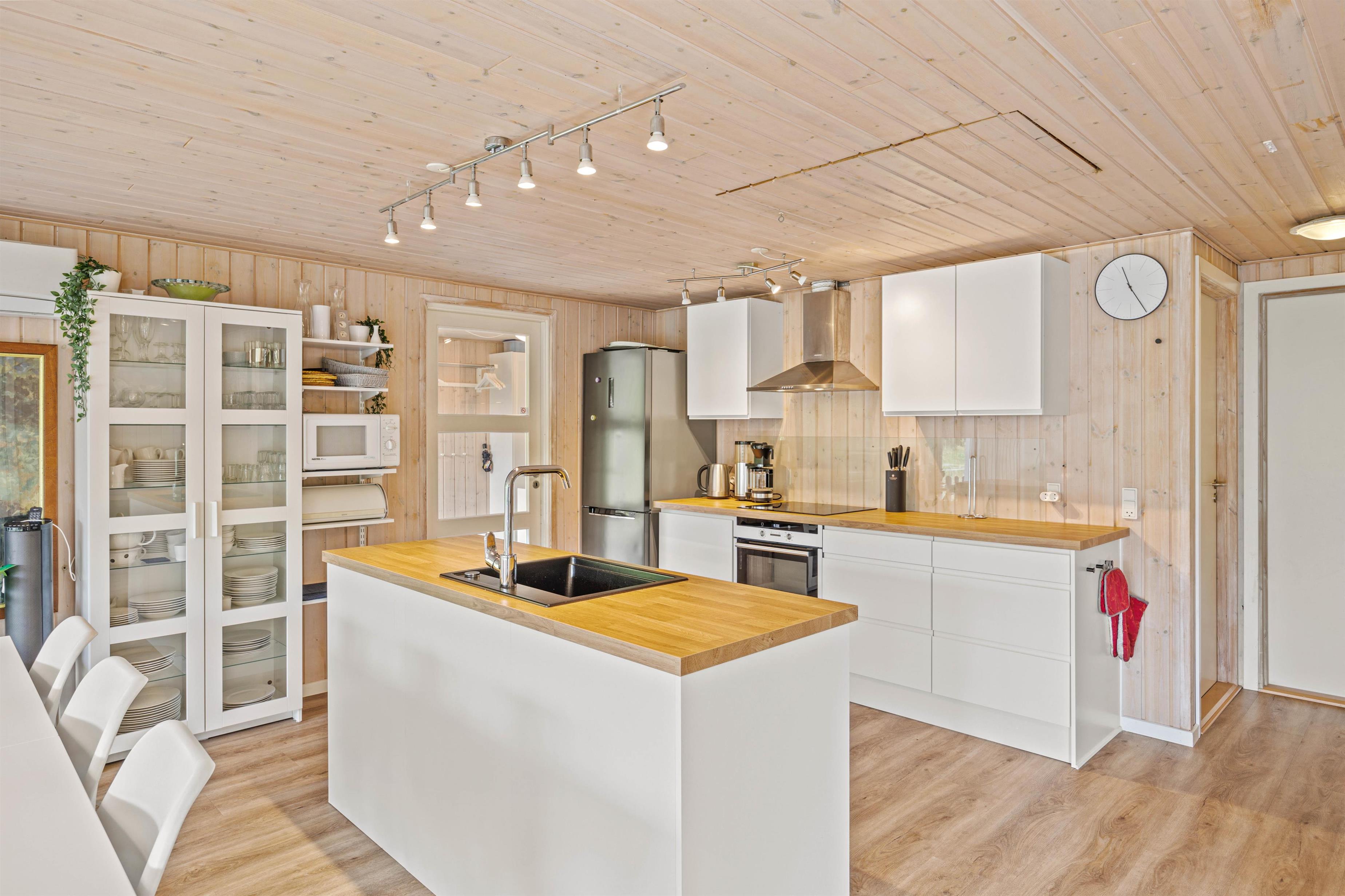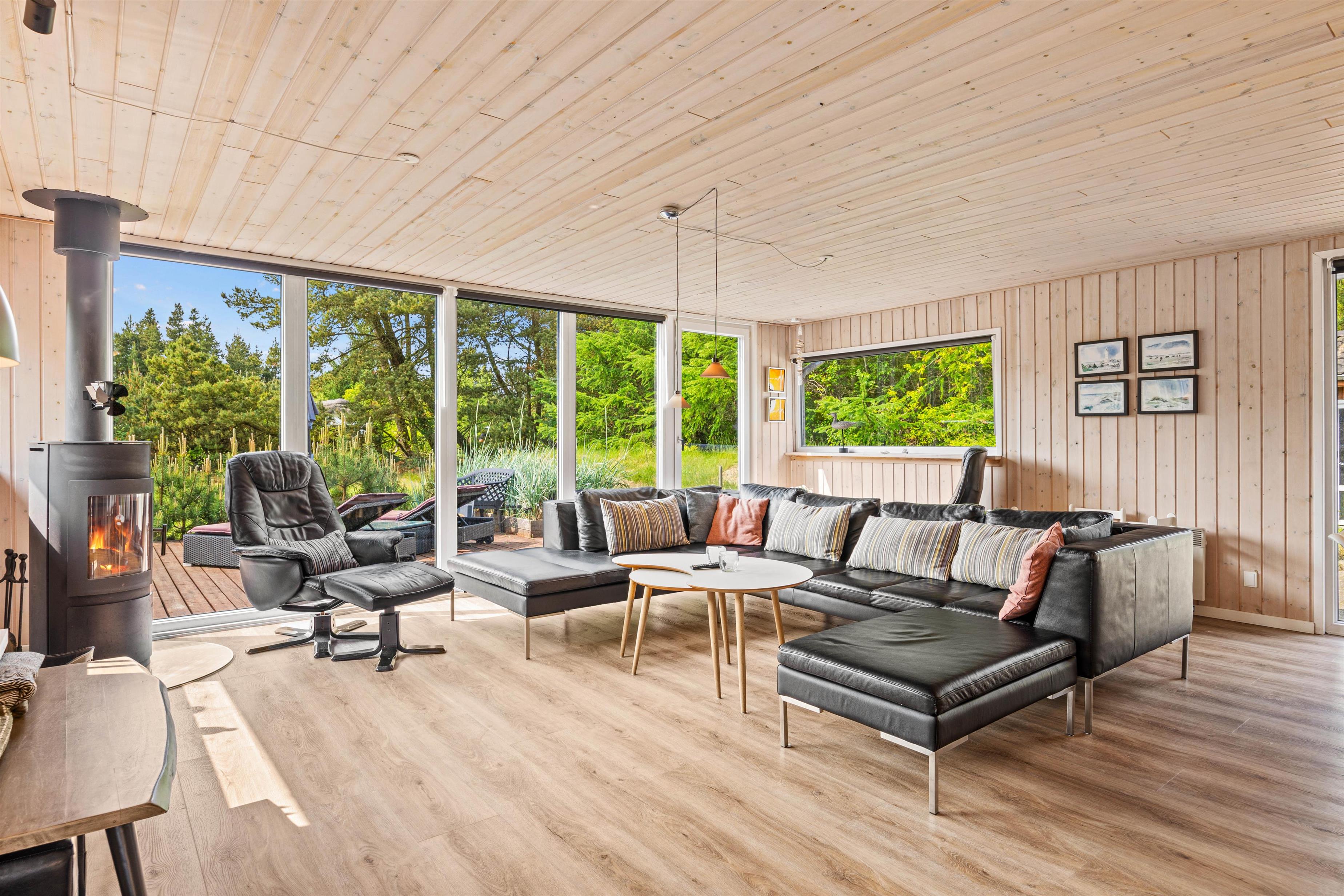 Indenfor byder sommerhuset på en perfekt kombination af komfort og underholdning, der skaber rammerne for en afslappet ferie. Stuen danner centrum for hygge med brændeovn, der ikke kun skaber varme, men også en hyggelig atmosfære, perfekt til at samles omkring på kølige aftener. I stuen finder I et kombineret pool-, airhockey og fodboldbord. I et seperat rum finder I WII og Playstation 4 med spil og tilbehør, der indbyder til sjove turneringer med hele familien eller vennerne.