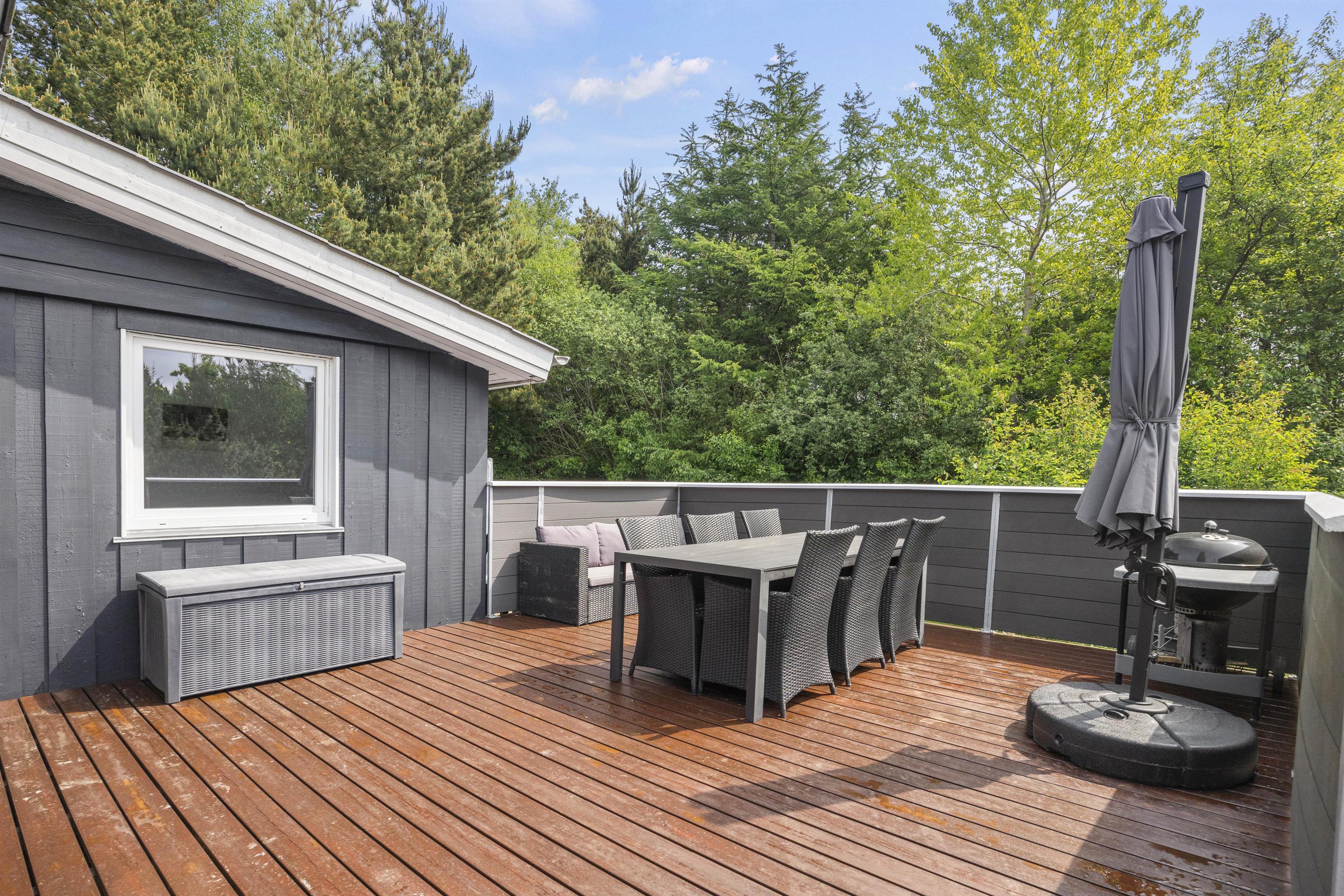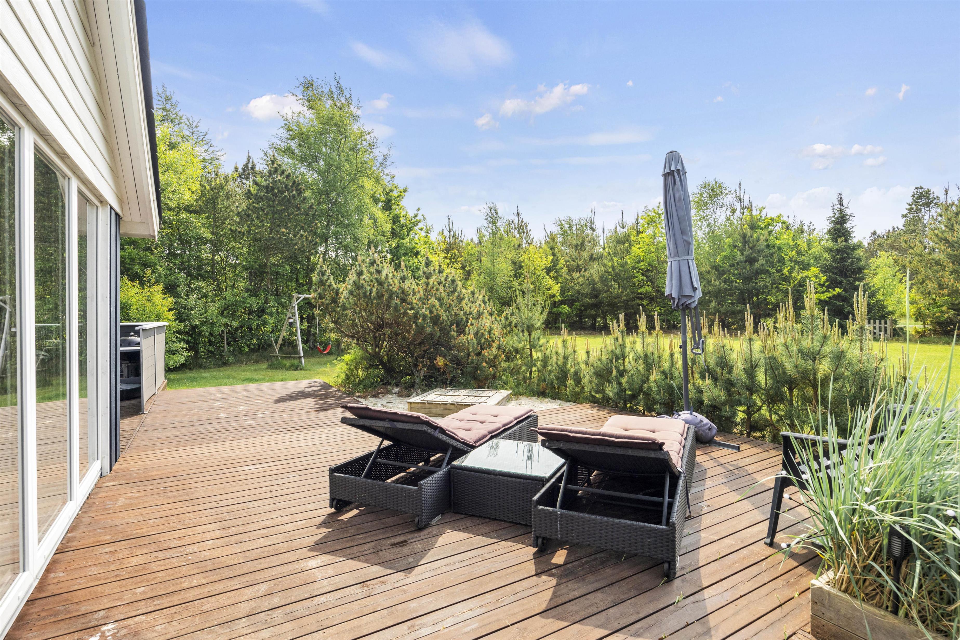 Her er plads til både store og små. Udenfor finder I et bordtennisbord, hvor I kan spille om opvasken, mens de yngste kan more sig på trampolinen, gynge fornøjeligt eller bygge fantasifulde slotte i sandkassen. Terrassen tilbyder både åbne og afskærmede områder, der sikrer, at I kan nyde udelivet uanset vejret.