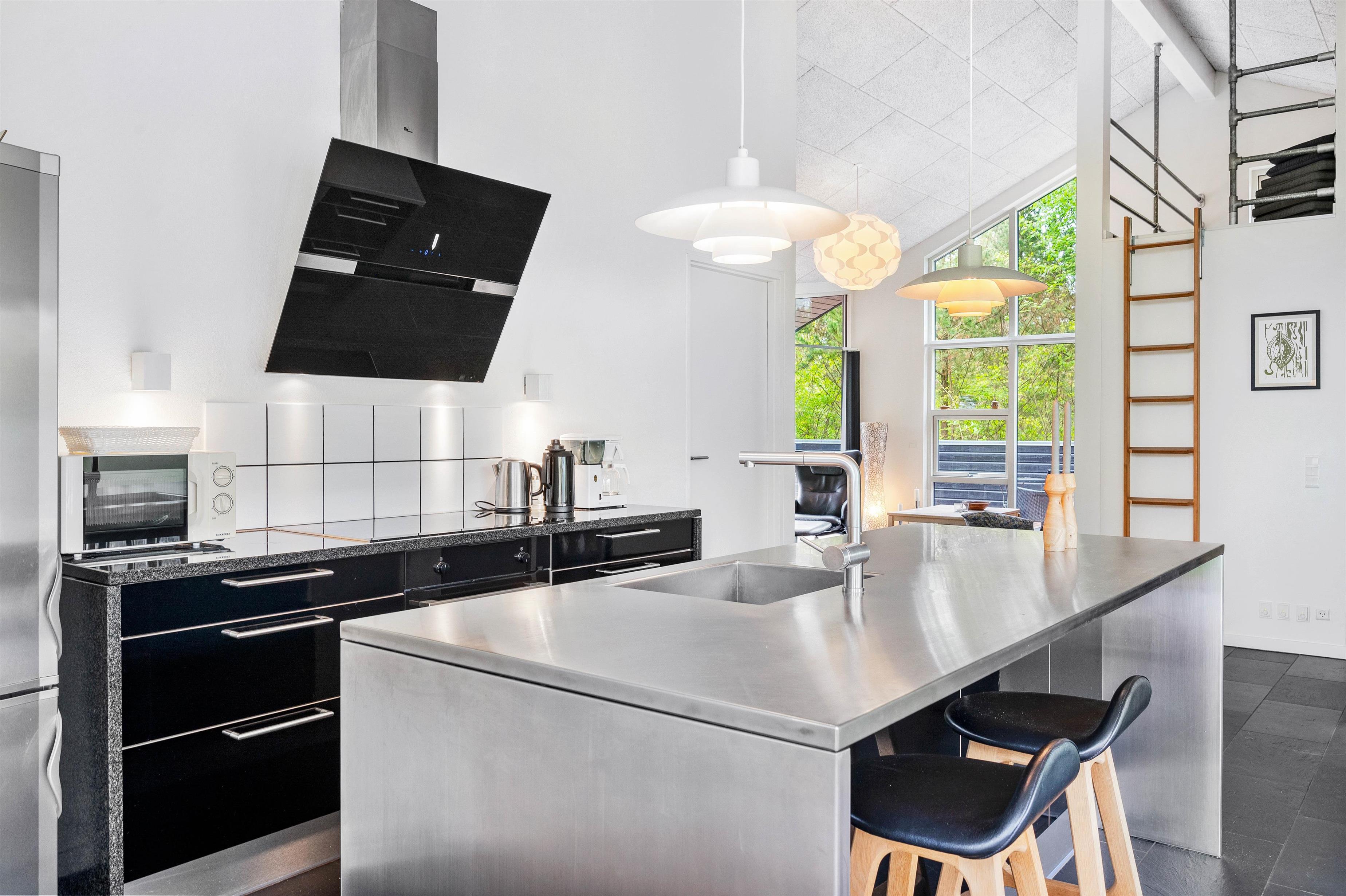 Sandtag 22 overbeviser med et moderne køkken med induktionskomfur og opvaskemaskine, 2 badeværelser, sauna, spa, gulvvarme og varmepumpe, og ikke mindst både vaskemaskine og tørretumbler.