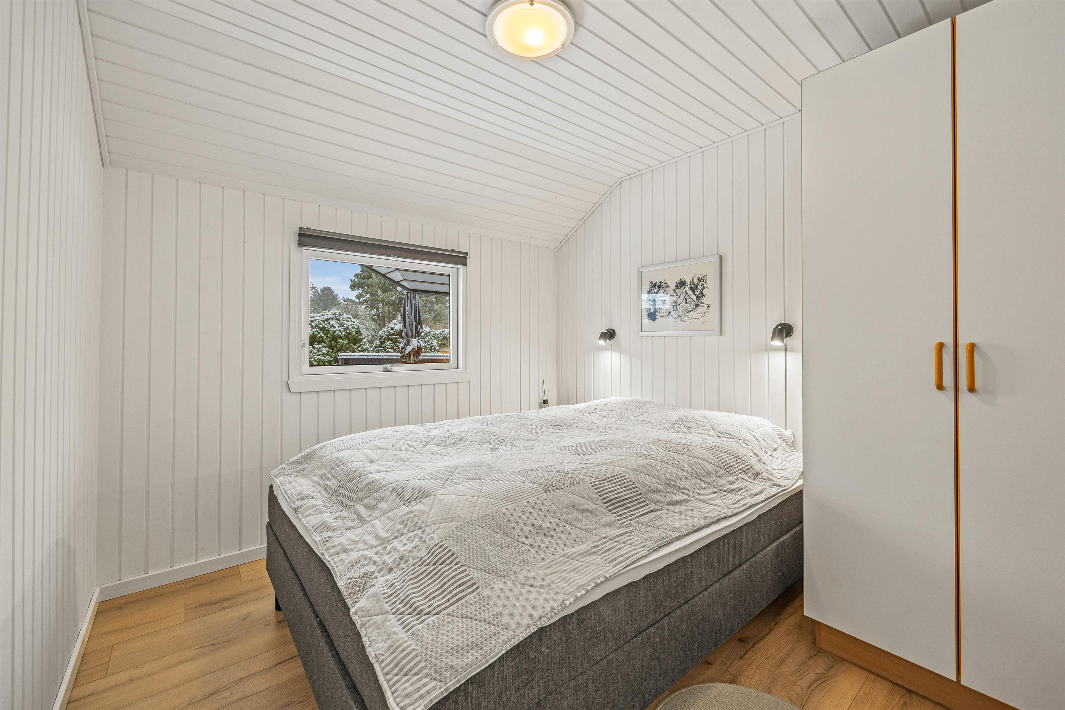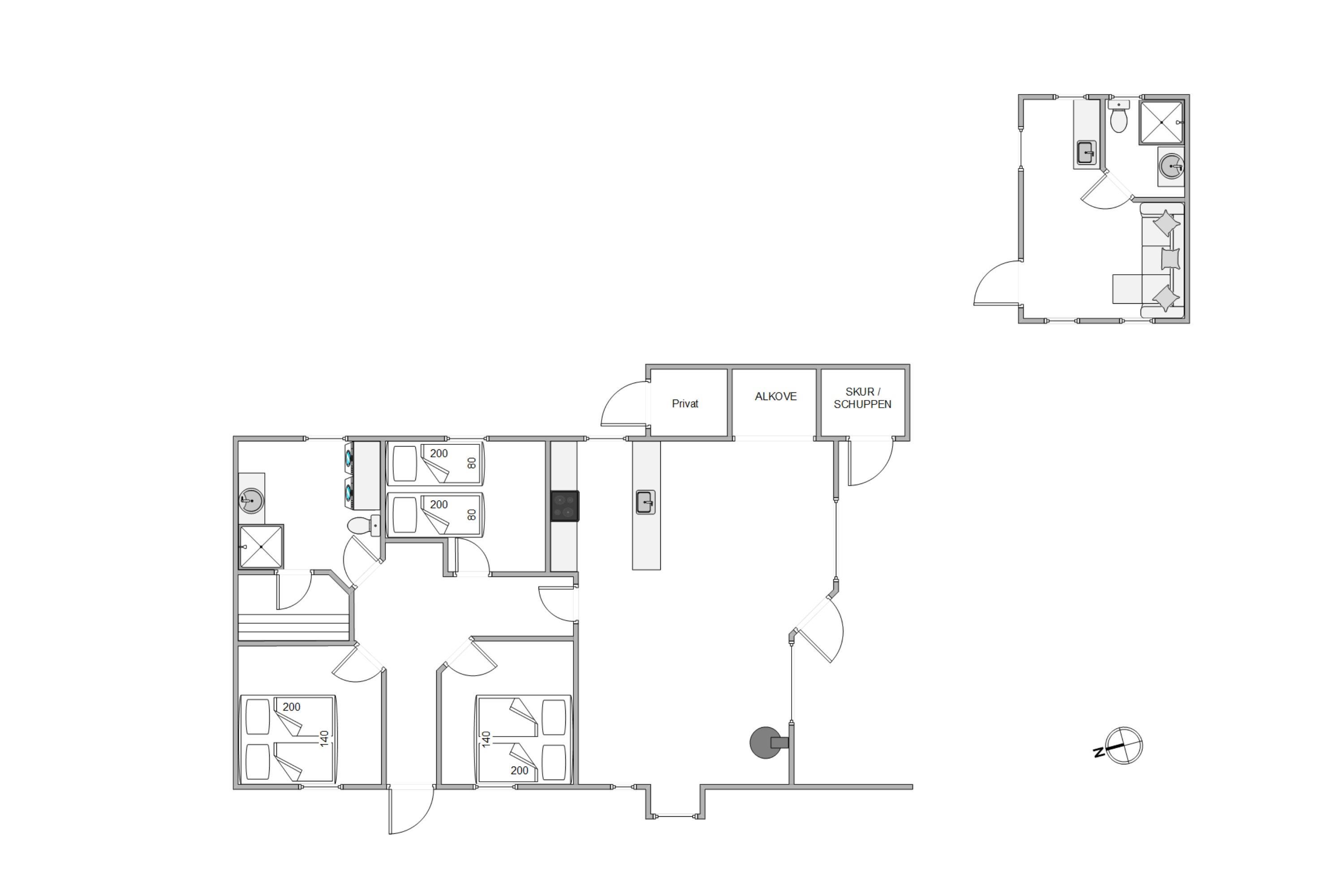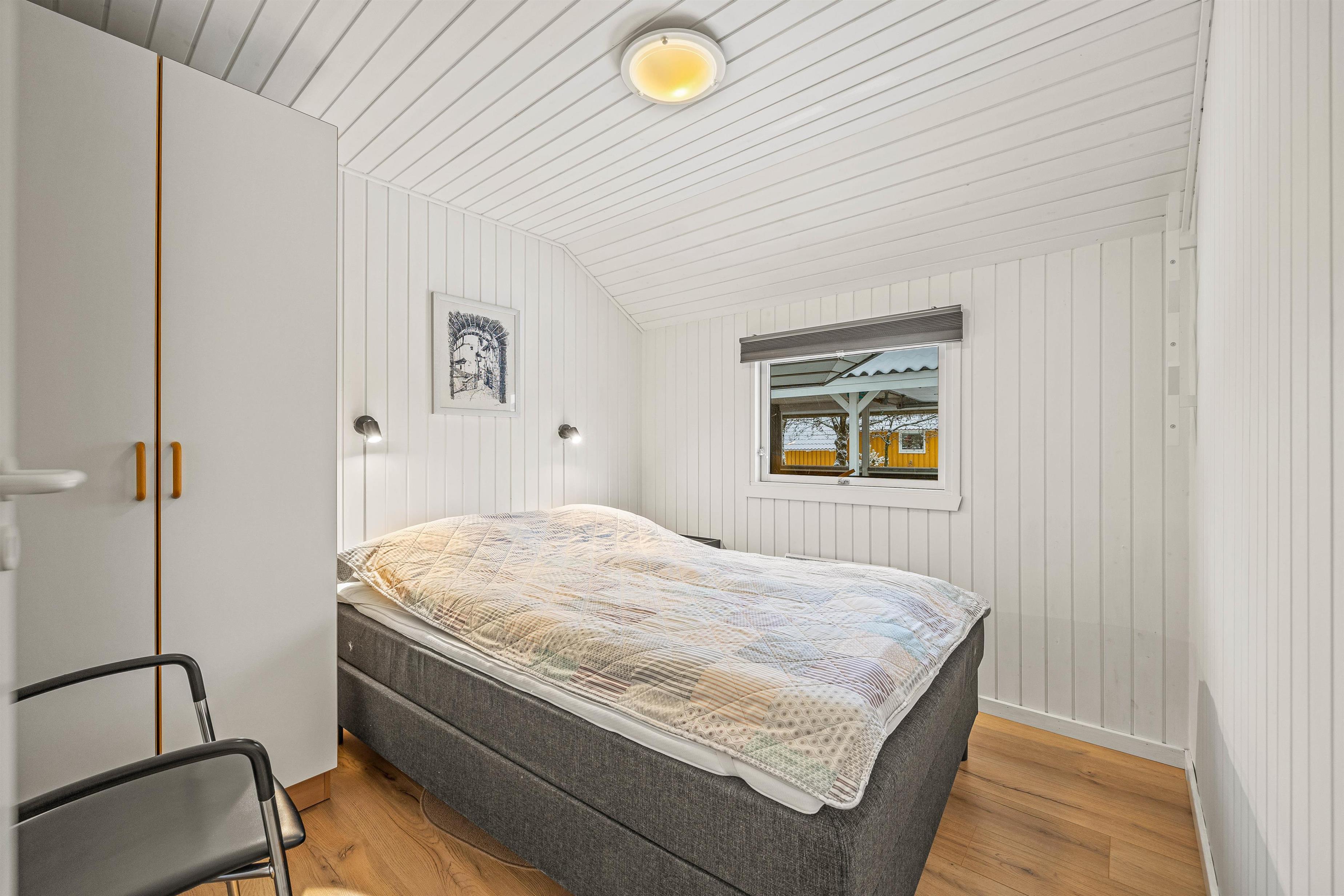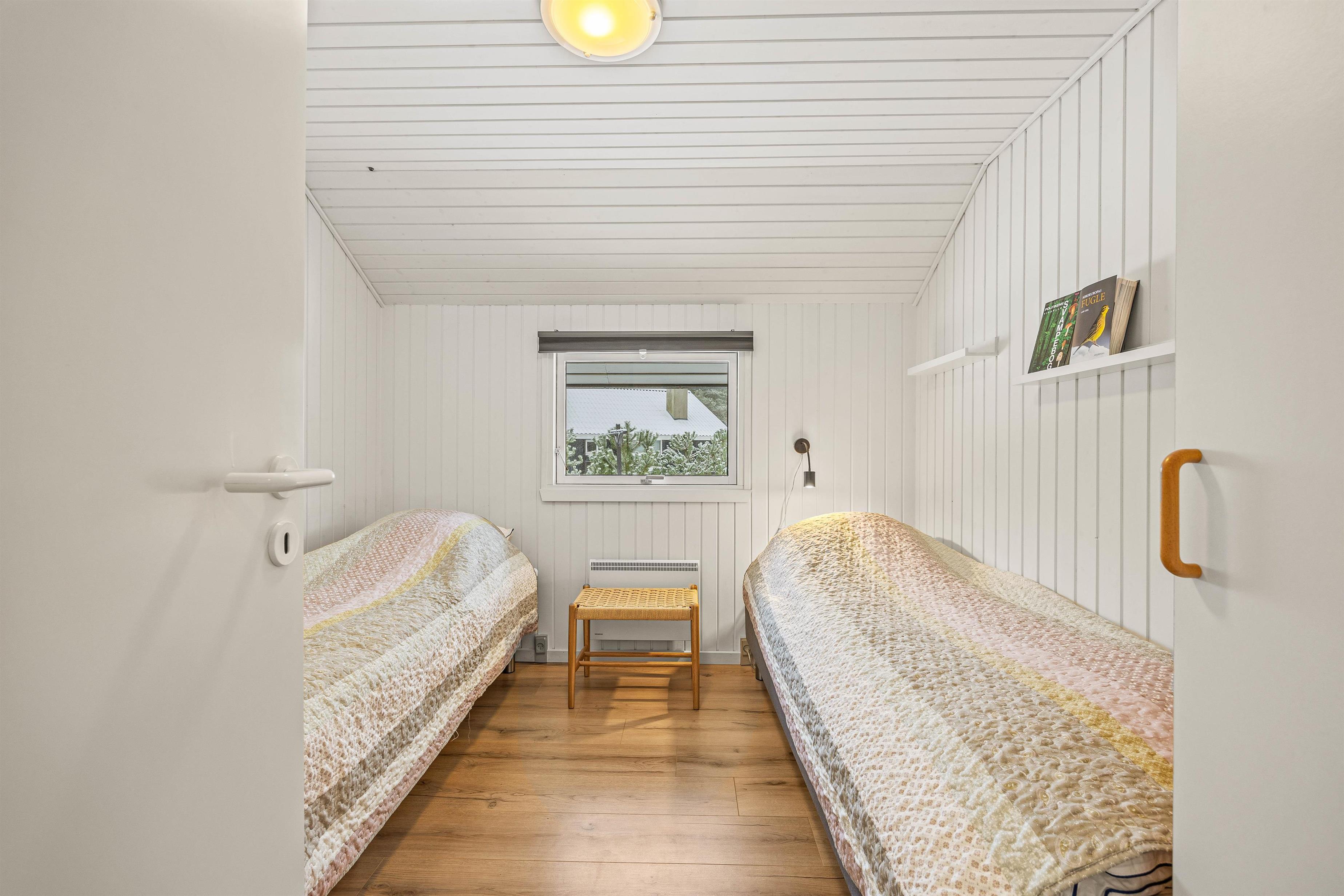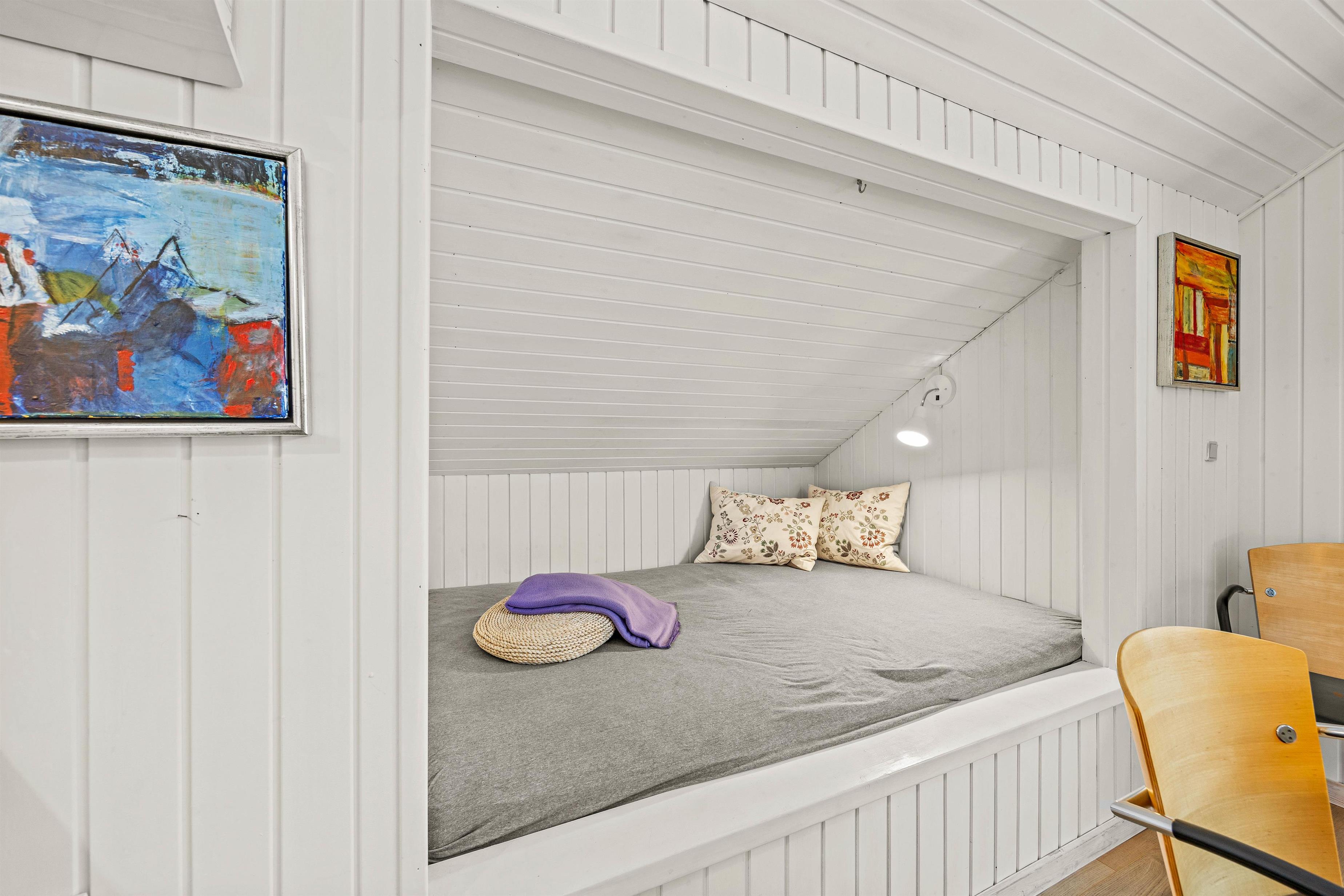 Stuen byder på klassisk dansk sommerhushygge takket være pilleovnen, der skaber det perfekte samlingssted for familie og venner. I hovedhuset er der to værelser med komfortable dobbeltsenge og et værelse med to enkeltsenge, som alle inviterer til afslappende og rolige nætter.