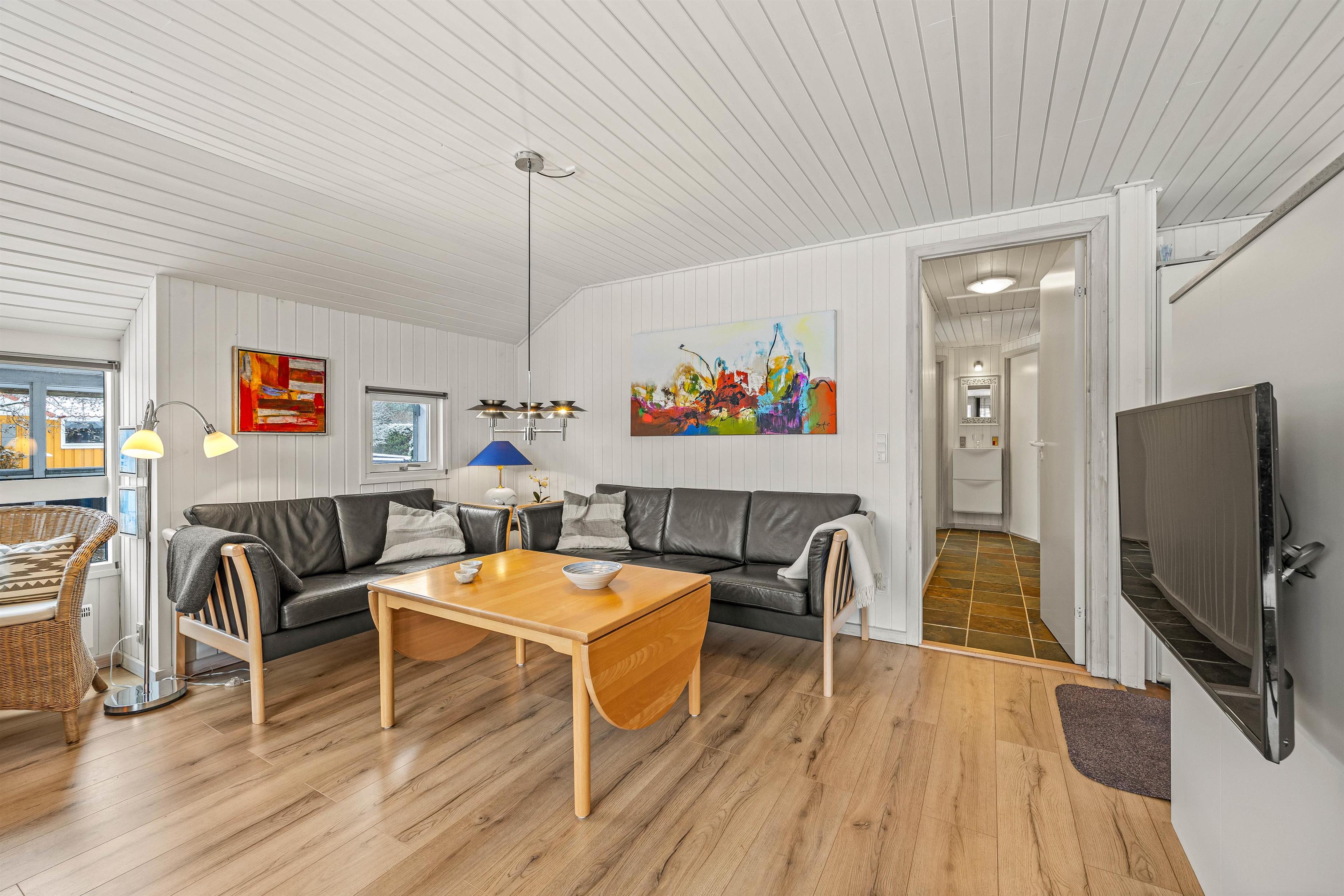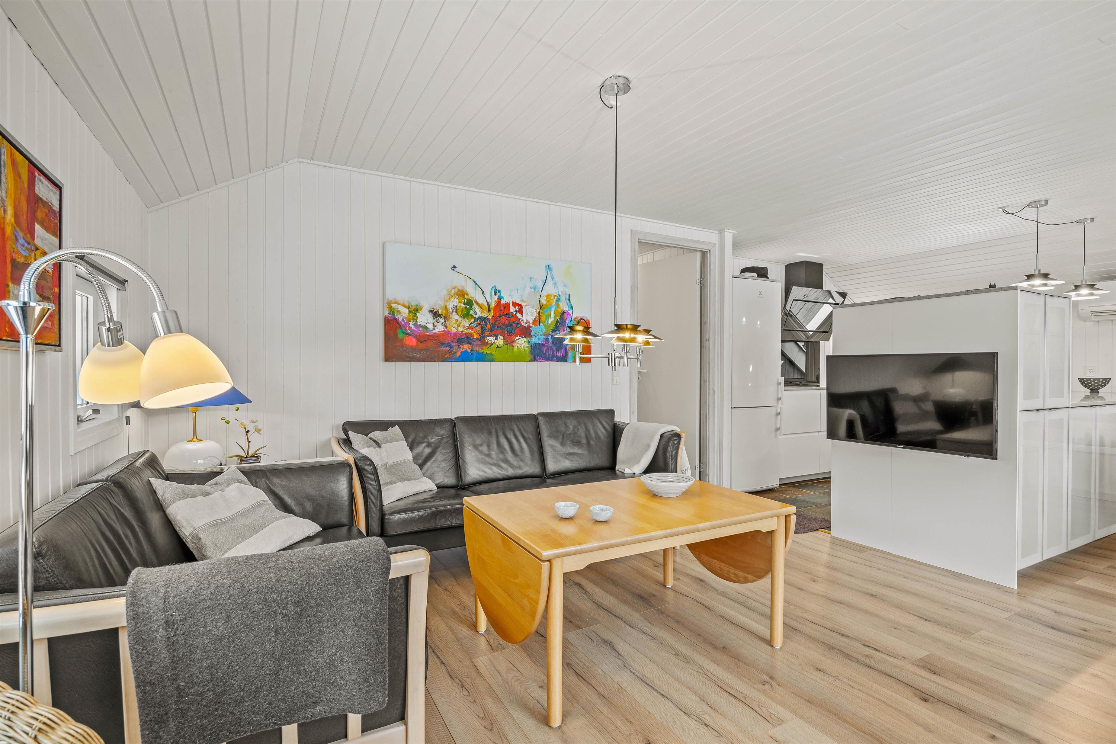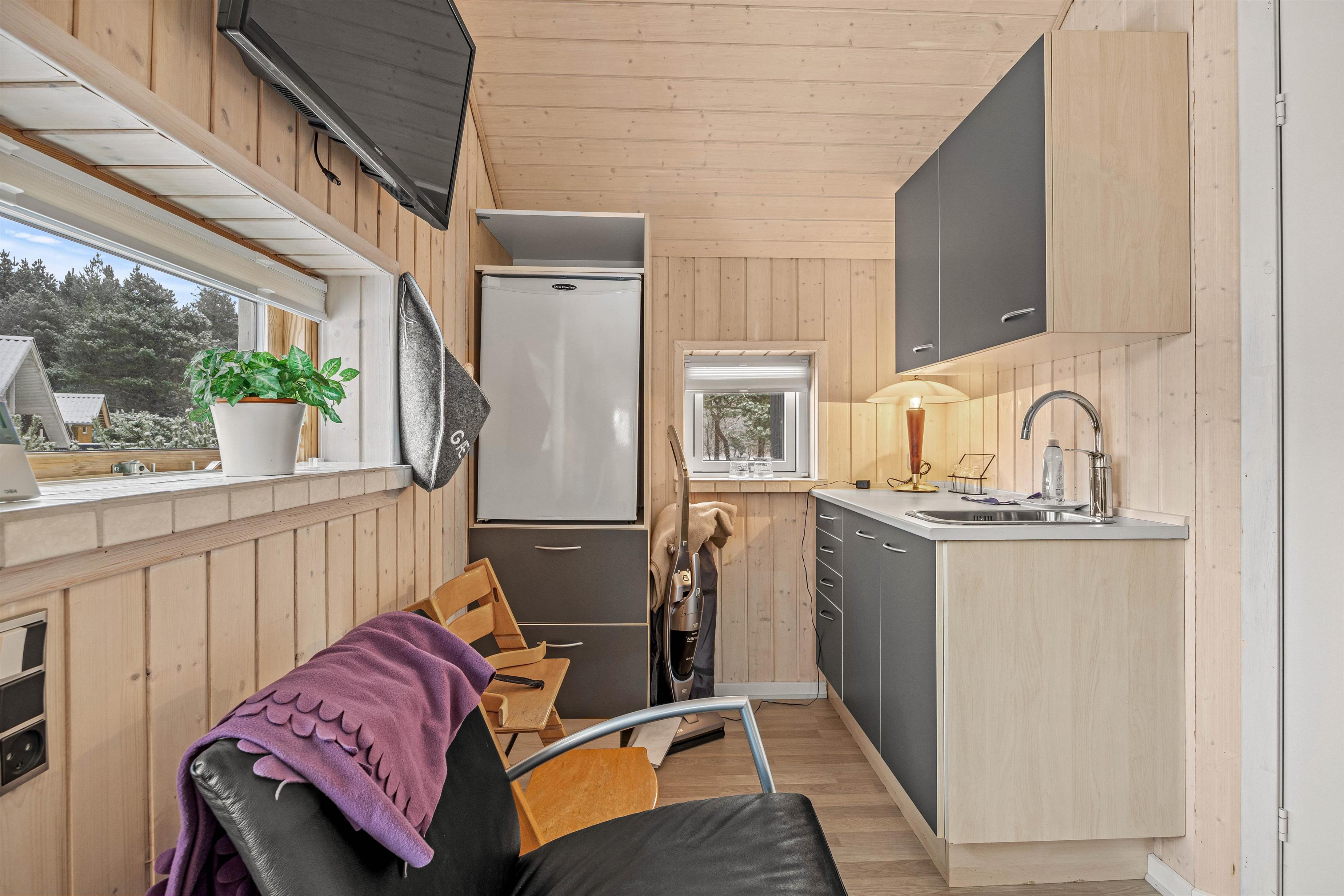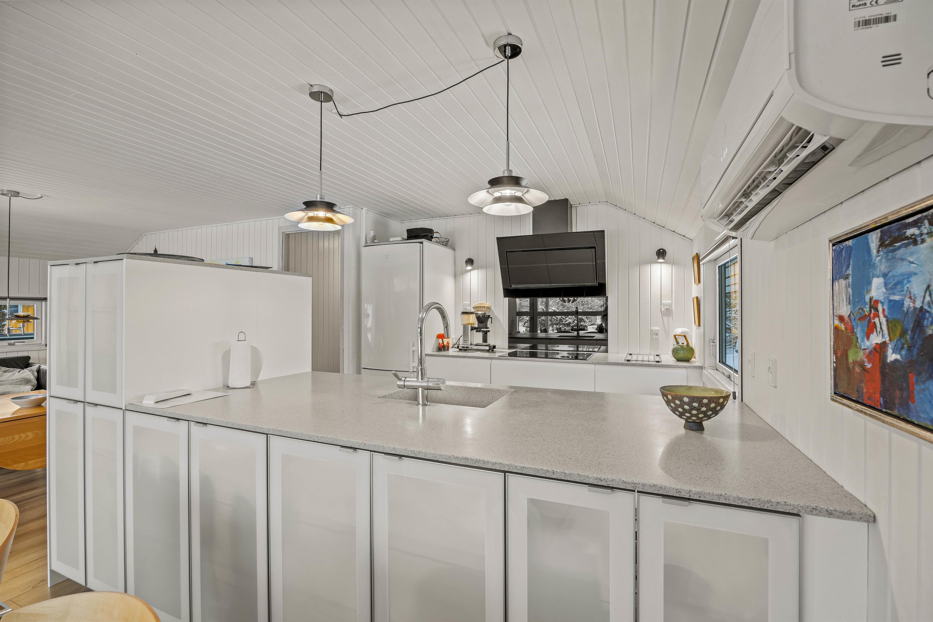 Sommerhuset er lyst og indbydende indrettet, hvilket skaber en behagelig stemning fra det øjeblik, I træder ind. Køkkenet er fuldt udstyret og skabt til at gøre madlavningen til en fornøjelse. En praktisk opvaskemaskine sørger for, at oprydningen efter alle måltider er let som en leg, så I hurtigt kan komme videre til jeres næste eventyr.