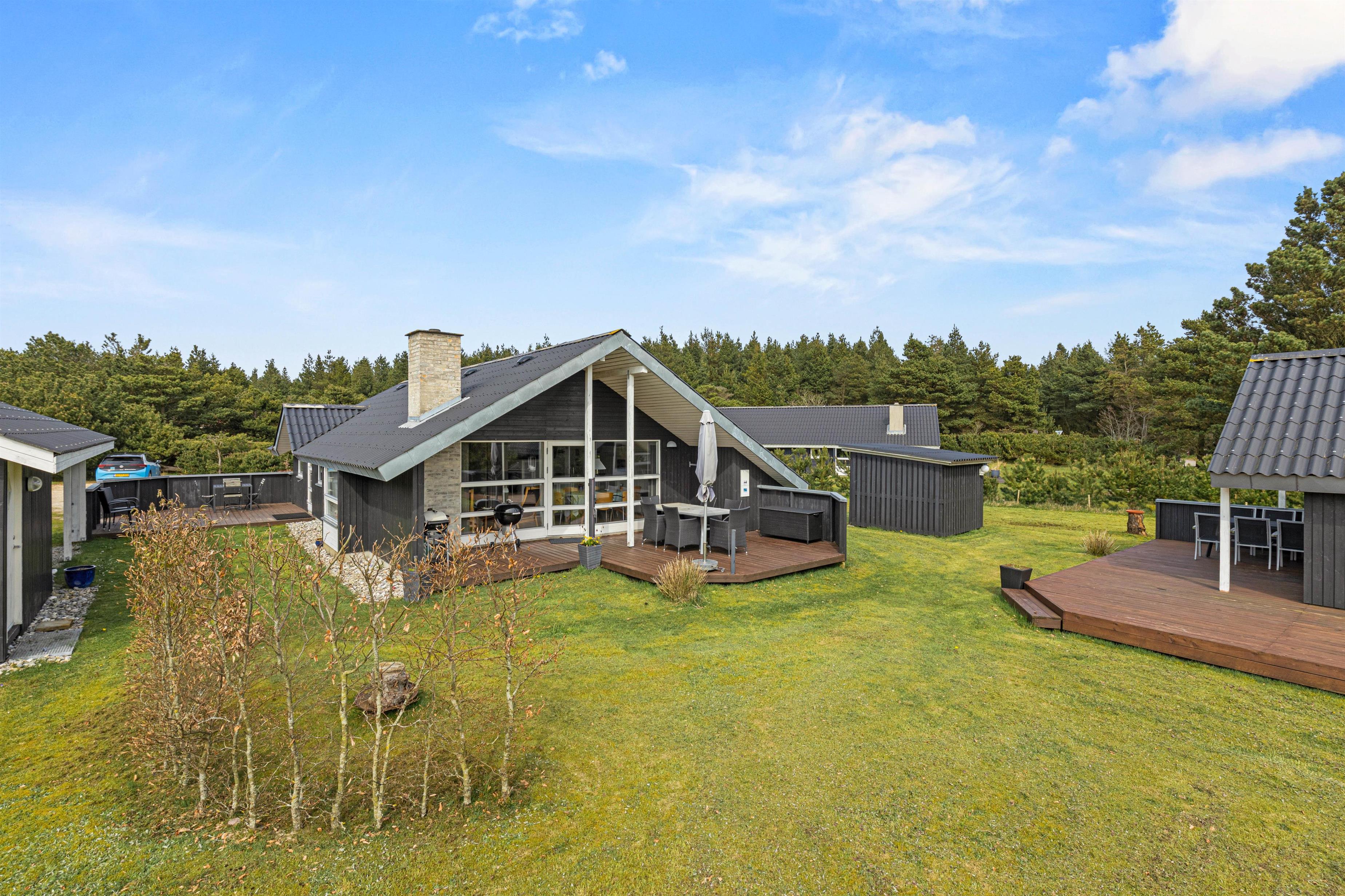 Ved annekset venter jer et hyggeligt loungeområde, som er perfekt til aftenhygge med små snacks og drinks. Dette kan I kombinere med kongespil på græsplænen. Går I rundt omkring i haven, vil I rundt om sommerhuset også finde mange andre skønne terrasseområder, så I hele tiden kan finde et dejligt spot med læ eller solskin.