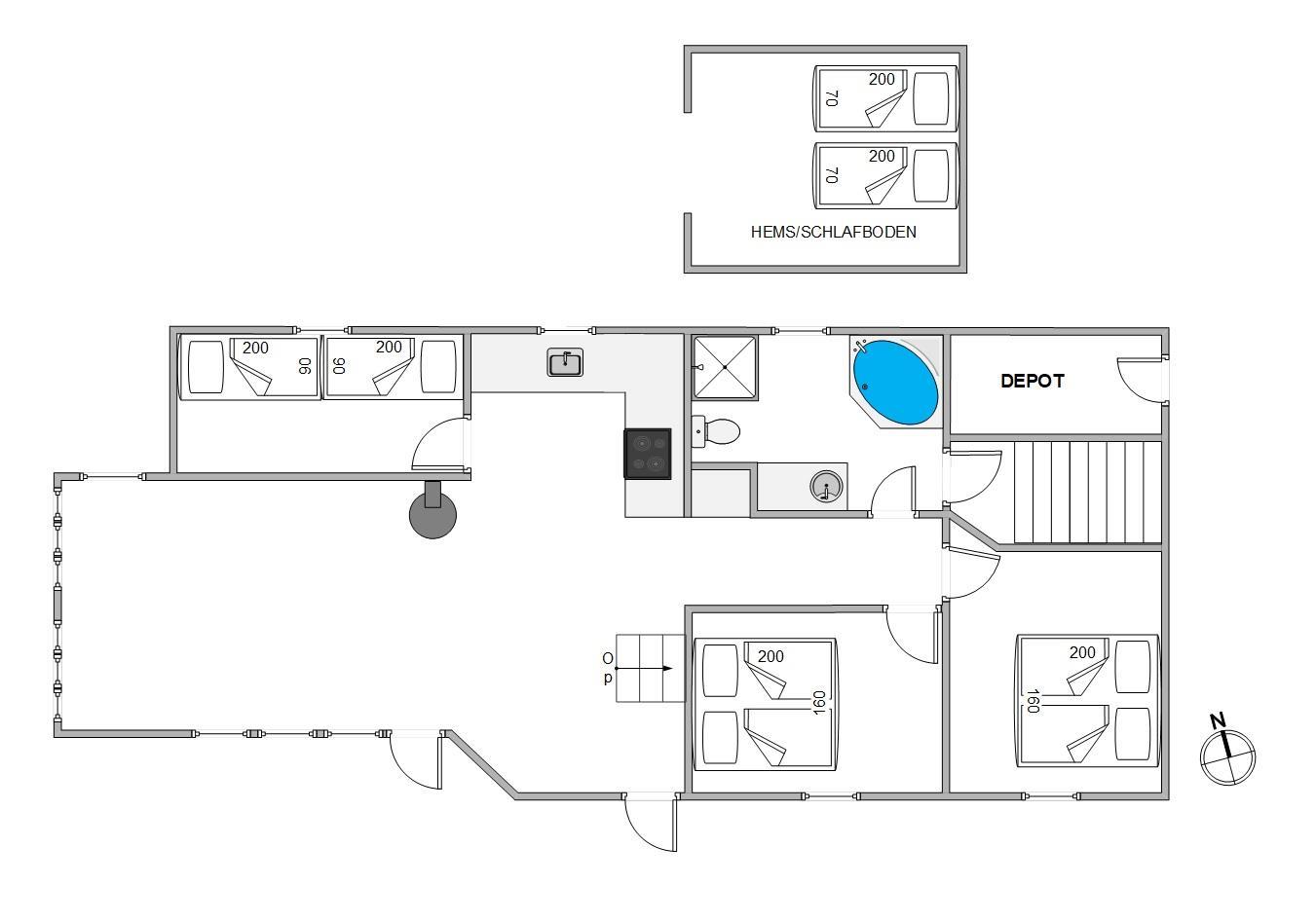 Huset er både praktisk og hyggeligt indrettet med alt, hvad ferien har brug for. Det betyder også, at der både står en opvaskemaskine og en vaskemaskine til rådighed, så der hurtigt kan blive taget hånd om de huslige pligter.