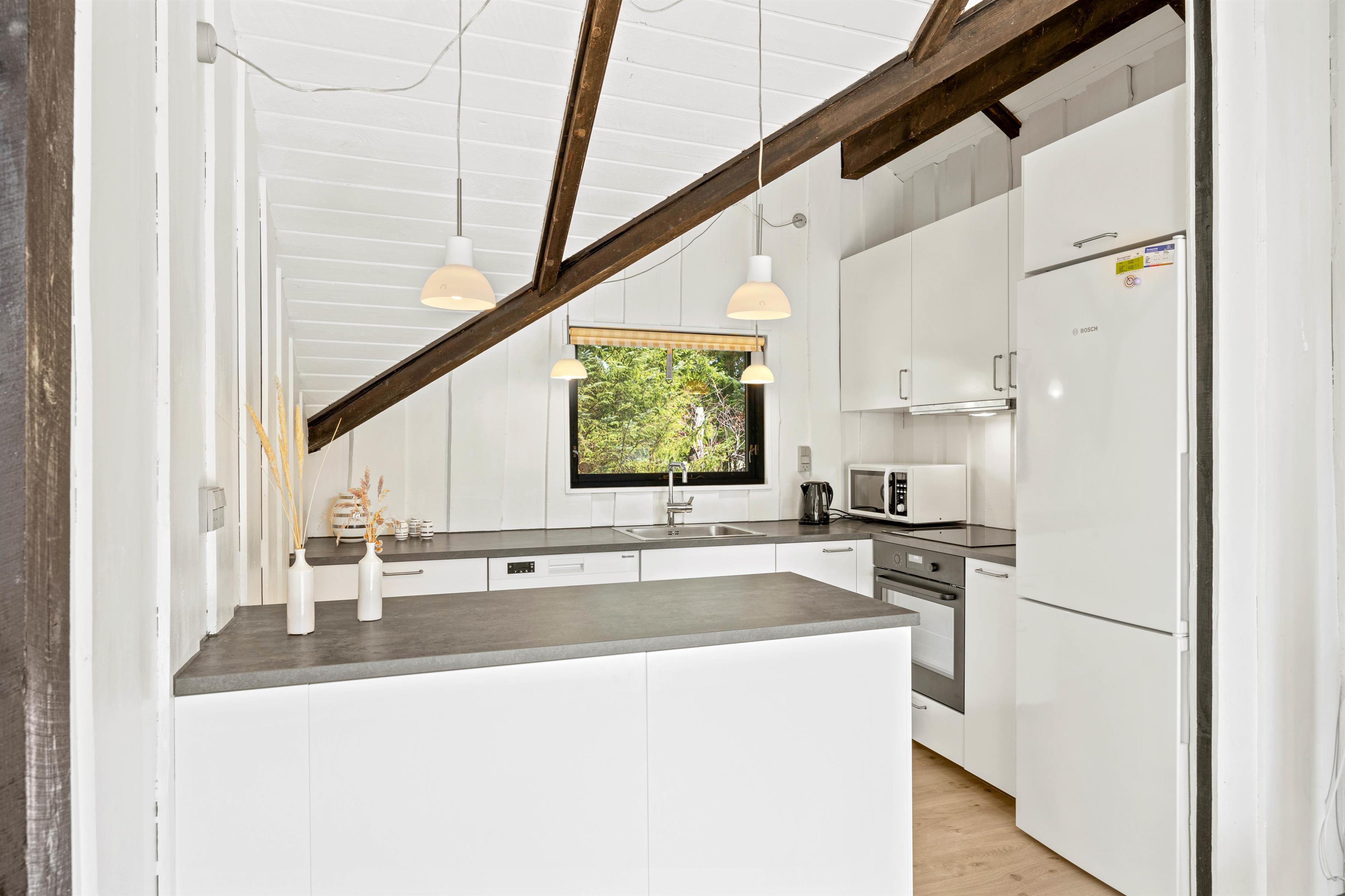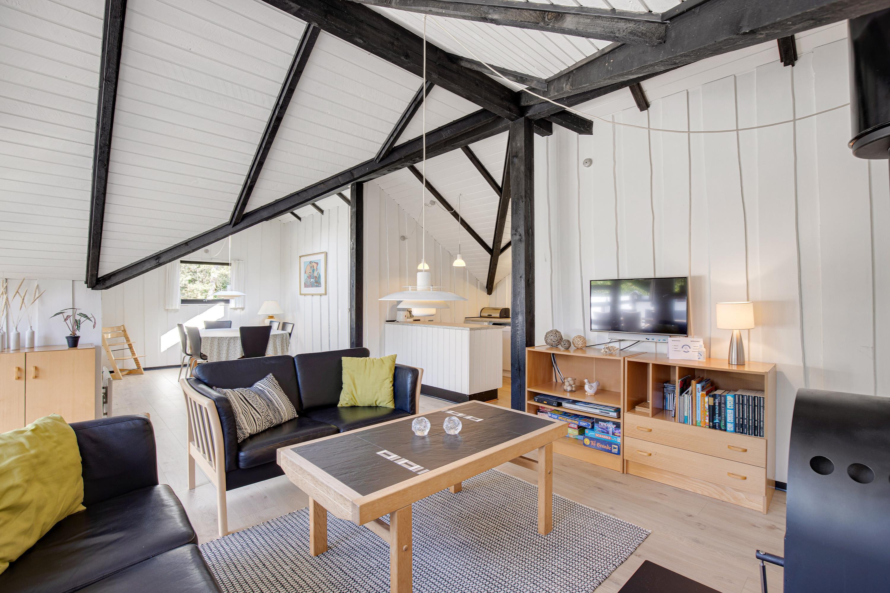 I dette feriehus finder I de helt rigtige rammer for en familieferie. Med sit lyse køkken- og stueområde ud i ét, kan I alle samles omkring madlavningen, hyggestunden eller et brætspil. Børnene kan have deres egen soveafdeling og nyde at sove i køjeseng, mens I forældre nyder roen i den anden ende af huset.