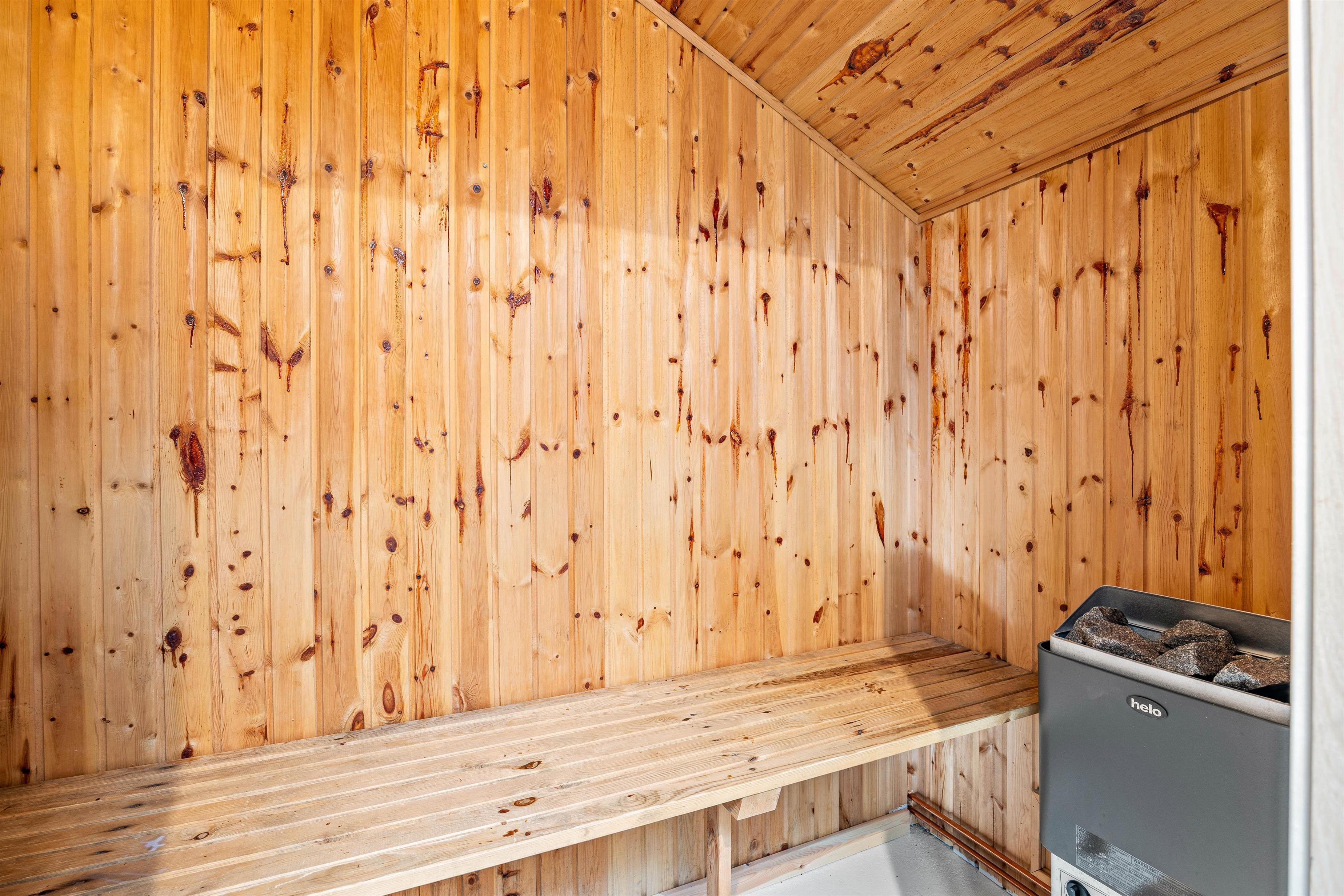 Er vejret dårligt? Det er intet problem! Tænd op i brændeovnen, sæt dig til rette i den bekvemme sofa, snup en god bog eller se en film sammen med dine kære. I den lyse, men super hyggelige stue, er der god plads til, at alle kan slappe af. Og som prikken på i’et kan I forkæle jer selv med en tur i husets sauna.