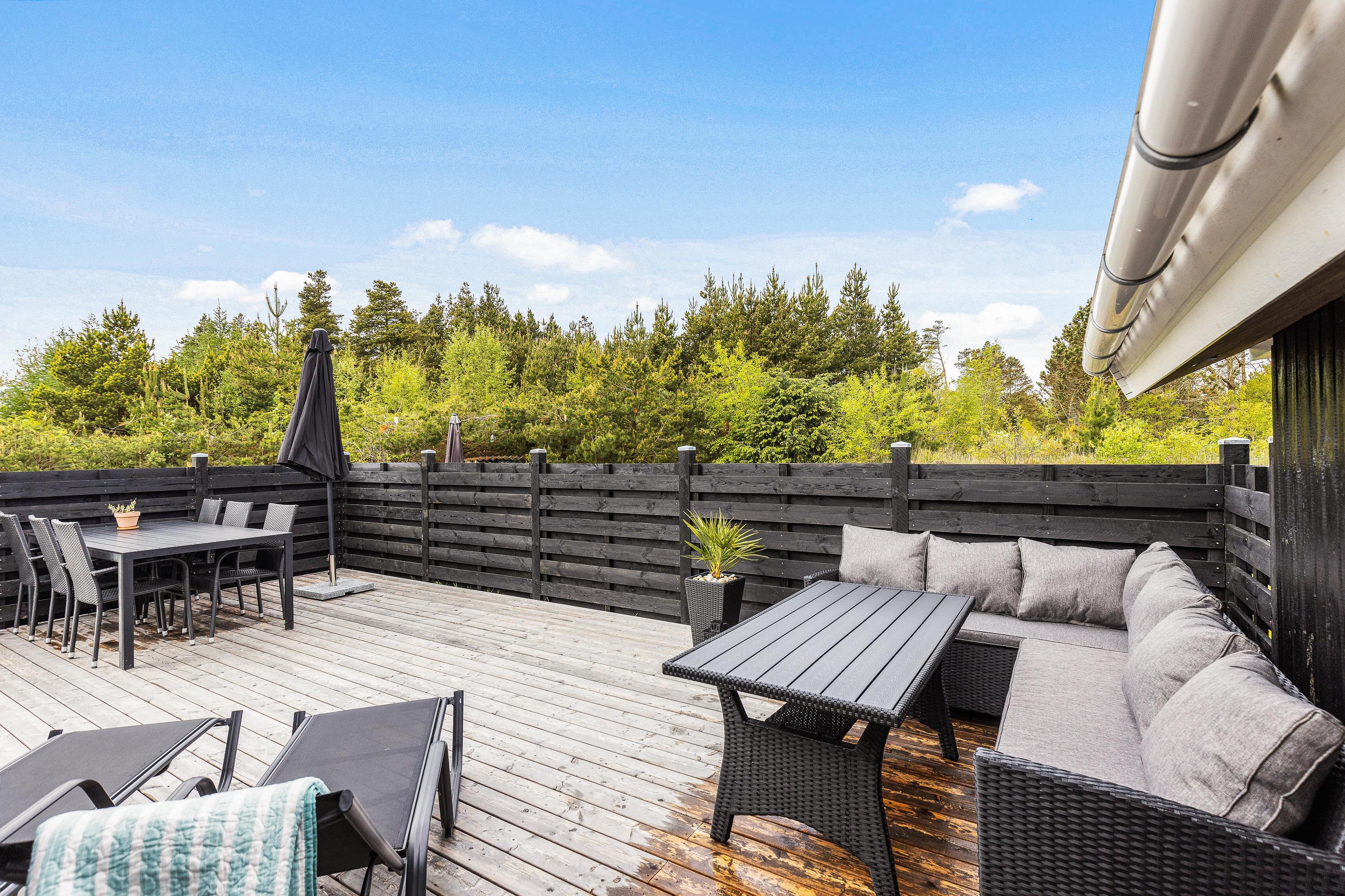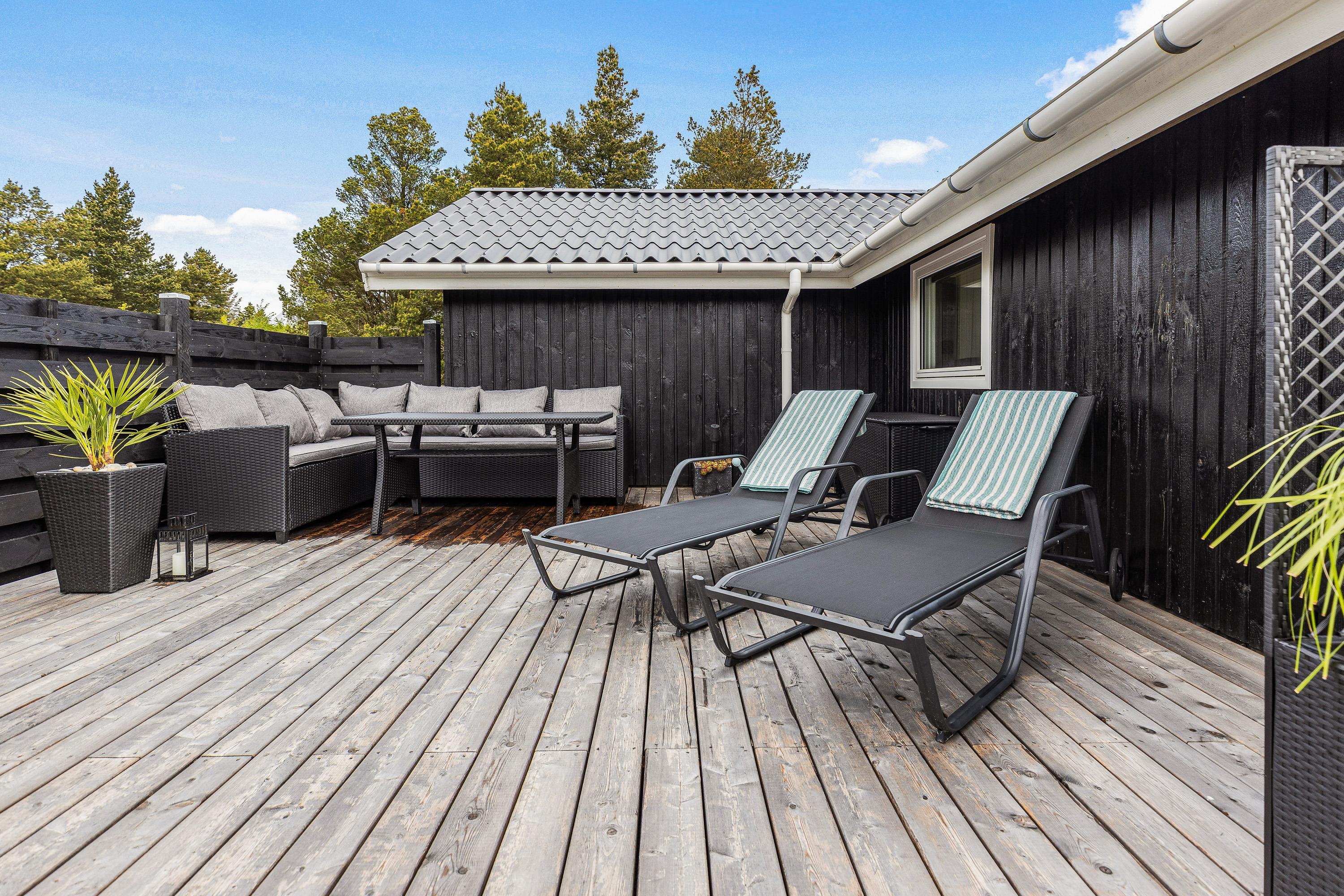 På solsiderne er Kirkeflod 60 flankeret af et stort terrassedæk. Herfra er der en flot udsigt ud over den skønne, store naturgrund. Du finder altid en dejlig solskinsplads, eller om du vil, et skyggehjørne til din liggestol.