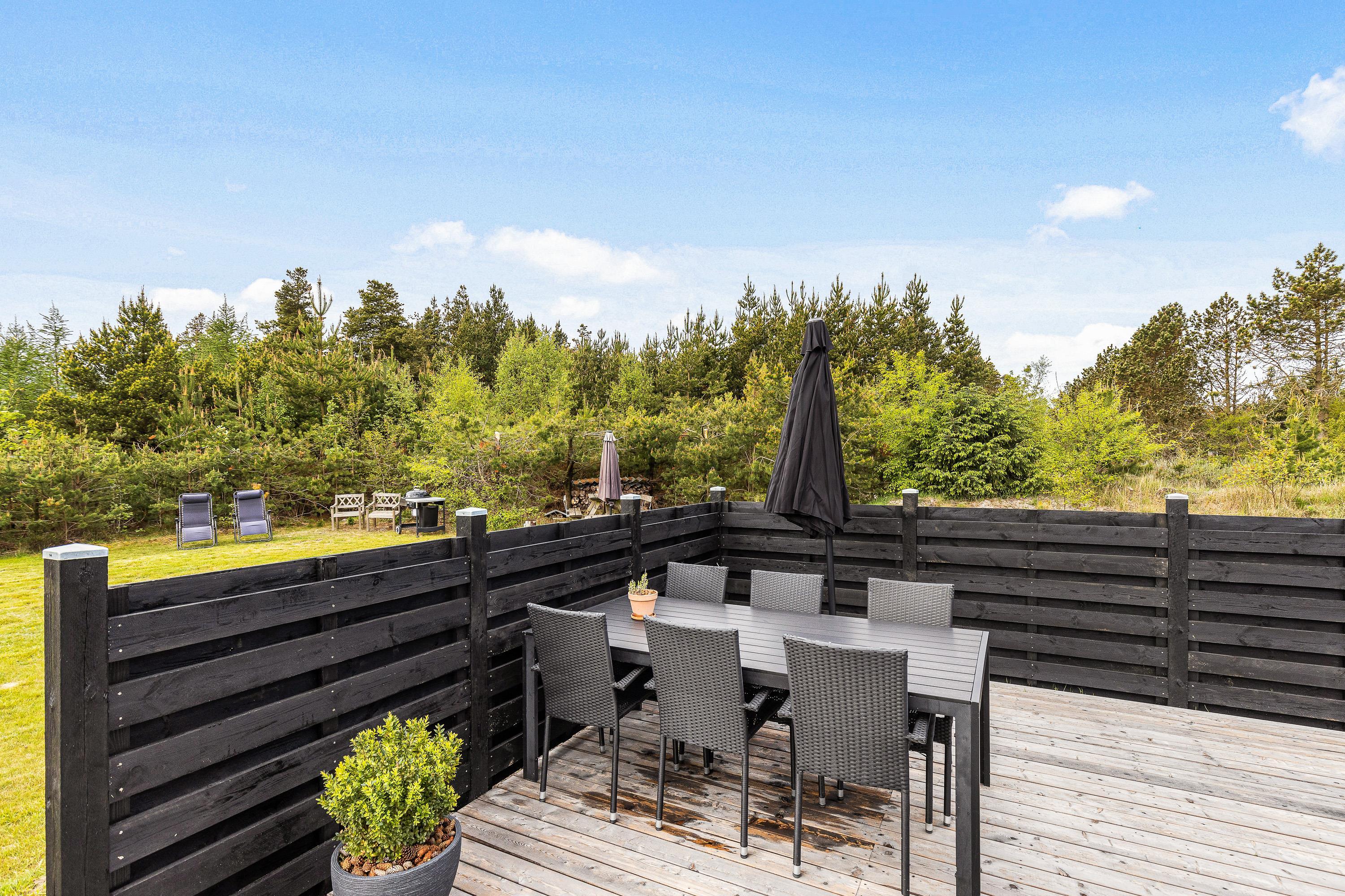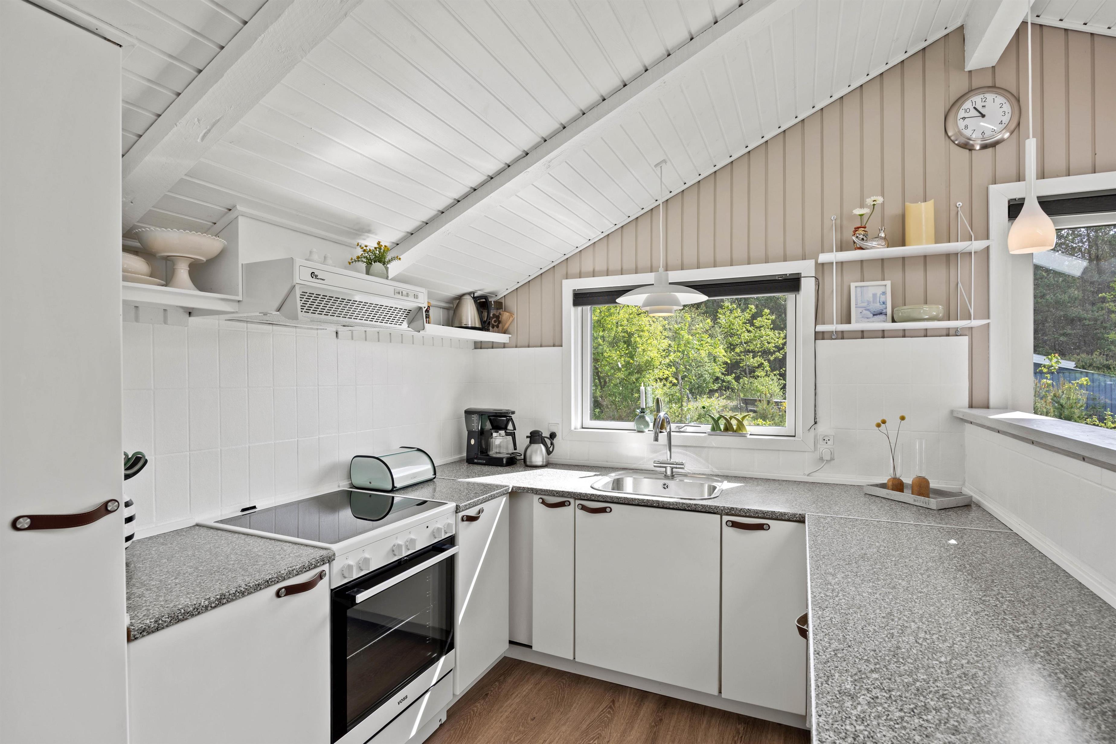 Lyst og moderne, men med bibeholdt feriehuscharme er dette idyllisk beliggende sommerhus perfekt til din ferie med familien. Det i 2019 renoverede feriehus indbyder til masser af indendørs hygge med brændeovn og sauna og til masser af solskin og frisk luft på den dejlig store terrasse, der forløber rundt om huset. Praktiske detaljer som vaskemaskine, opvaskemaskine og gulvvarme i badeværelset afrunder billedet.