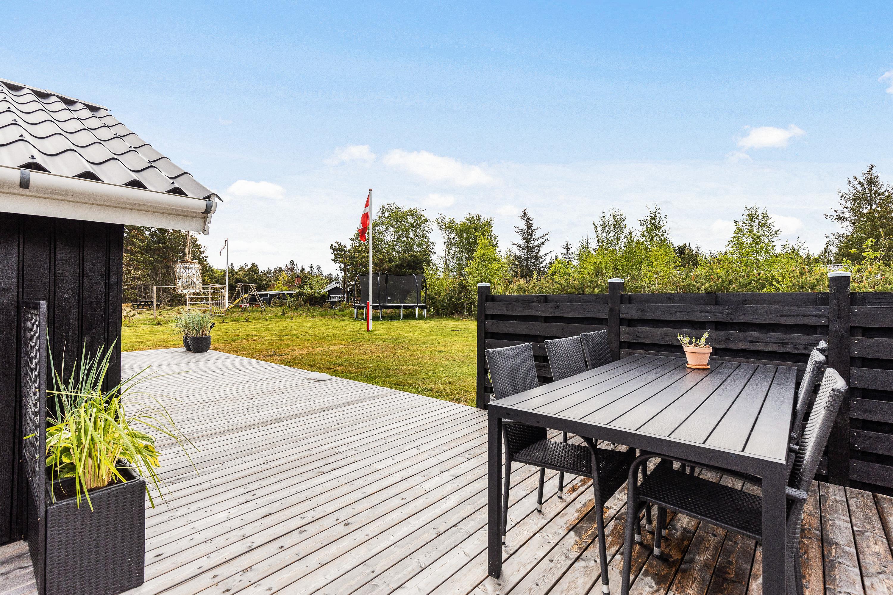 Imens resten af familien sover lidt længere, kan du tage morgenkaffen med på terrassen og nyde den klare morgenluft og fuglenes sang fra de omkringliggende træer. Når middagssolen bager, kan I søge skygge under husets udhæng og måske skal der om aftenen tændes op i grillen og hygges med god mad og snak indtil solen går ned.