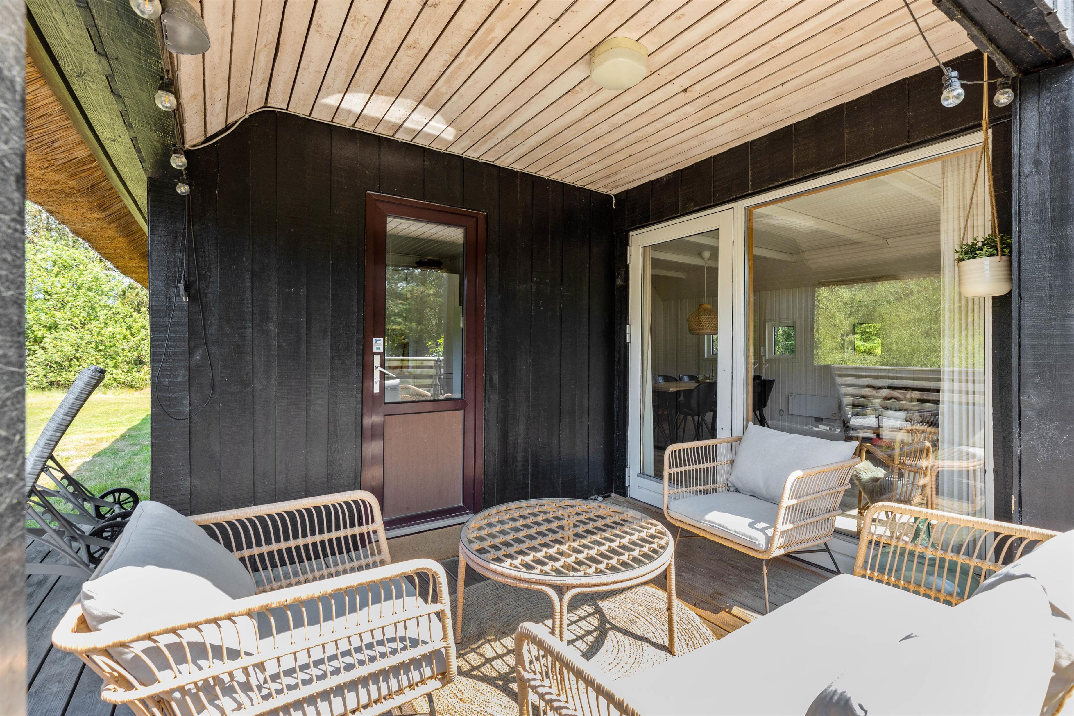 Vil du gerne nyde stilheden og roen på den overdækkede og afskærmede terrasse, er der god mulighed for det. Imens du hviler på solsengen med din bog, får du måske besøg på grunden af områdets beboere - smukke egern, harer, ræve og kronyr holder til i området. Alt i alt finder du her de perfekte omgivelser, hvis du drømmer om fred og ro - og når du trænger til åbne vidder, er der ikke langt til den smukke Houstrup Strand.