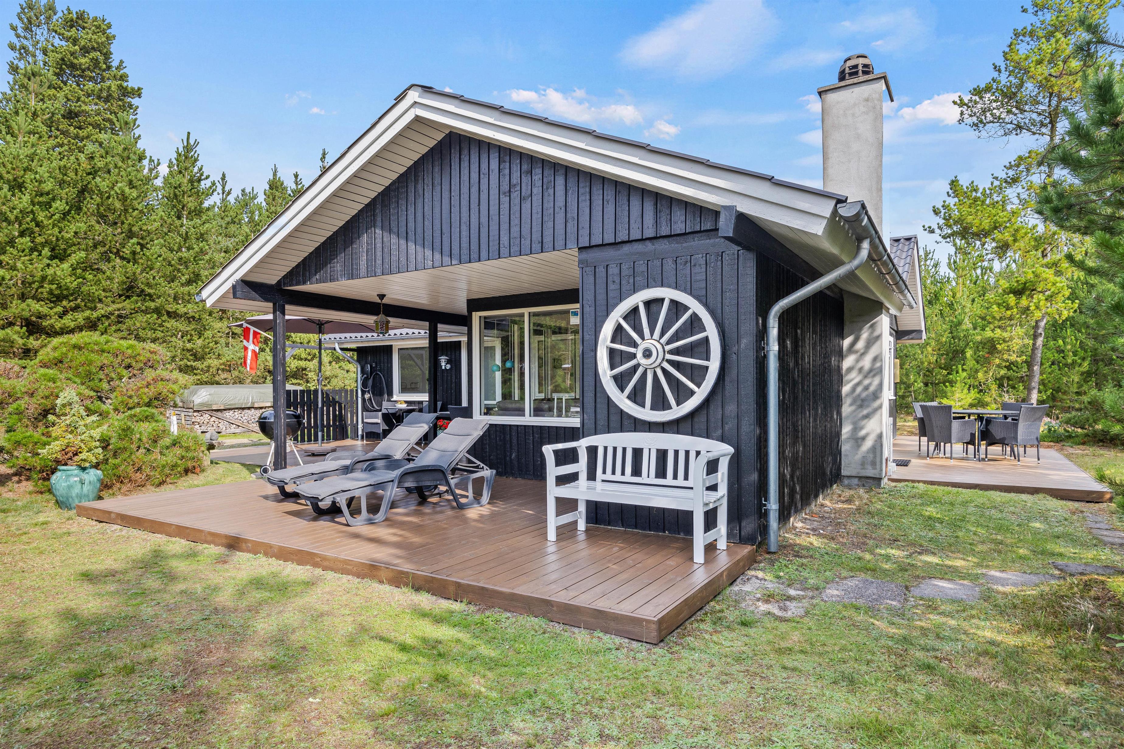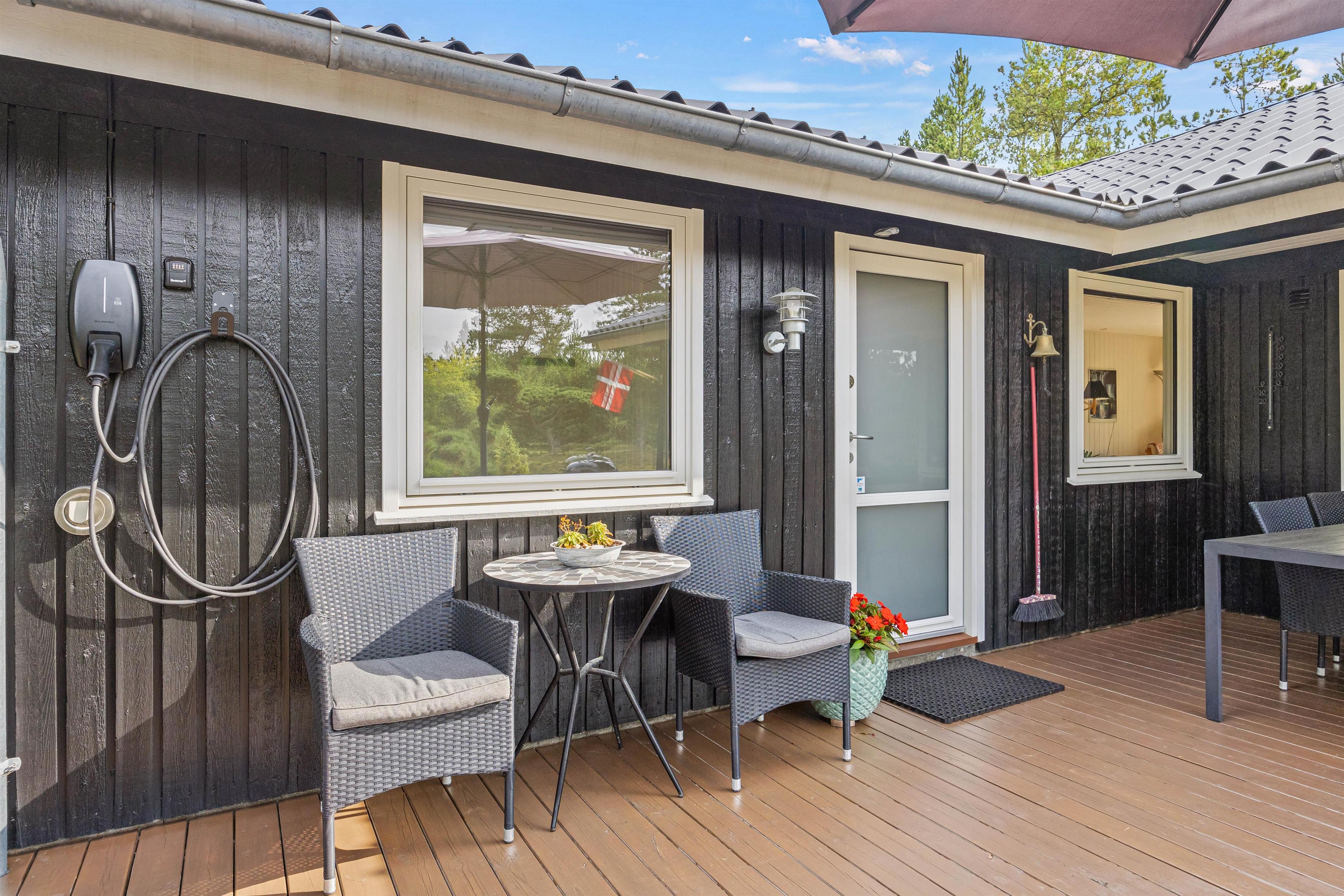 De varme sommerdage skal selvfølgelig bruges på den store terrasse, som både har en overdækket og en åben del. Grønne træer og buske giver jer en ugeneret beliggenhed, og I kan nyde feriedagene i ro og fred.