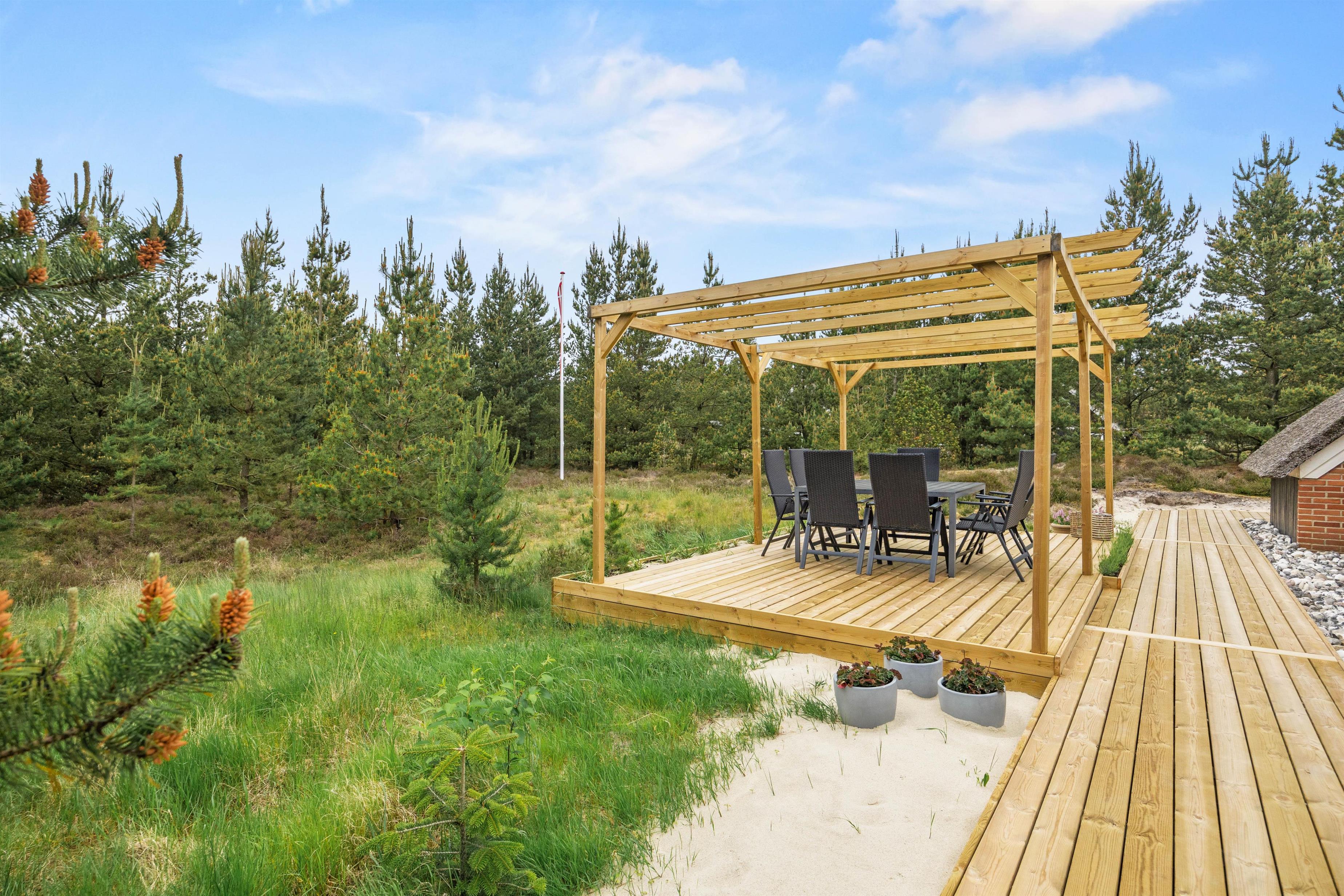 Der er to terrasser, så I har god plads til at nyde dagen udenfor i ro og fred. Det smukke område er helt sikkert også værd at udforske, og I kan roligt tage børnene med på tur i Houstrups flotte natur, for eksempel i den nærliggende Blåbjerg Plantage.