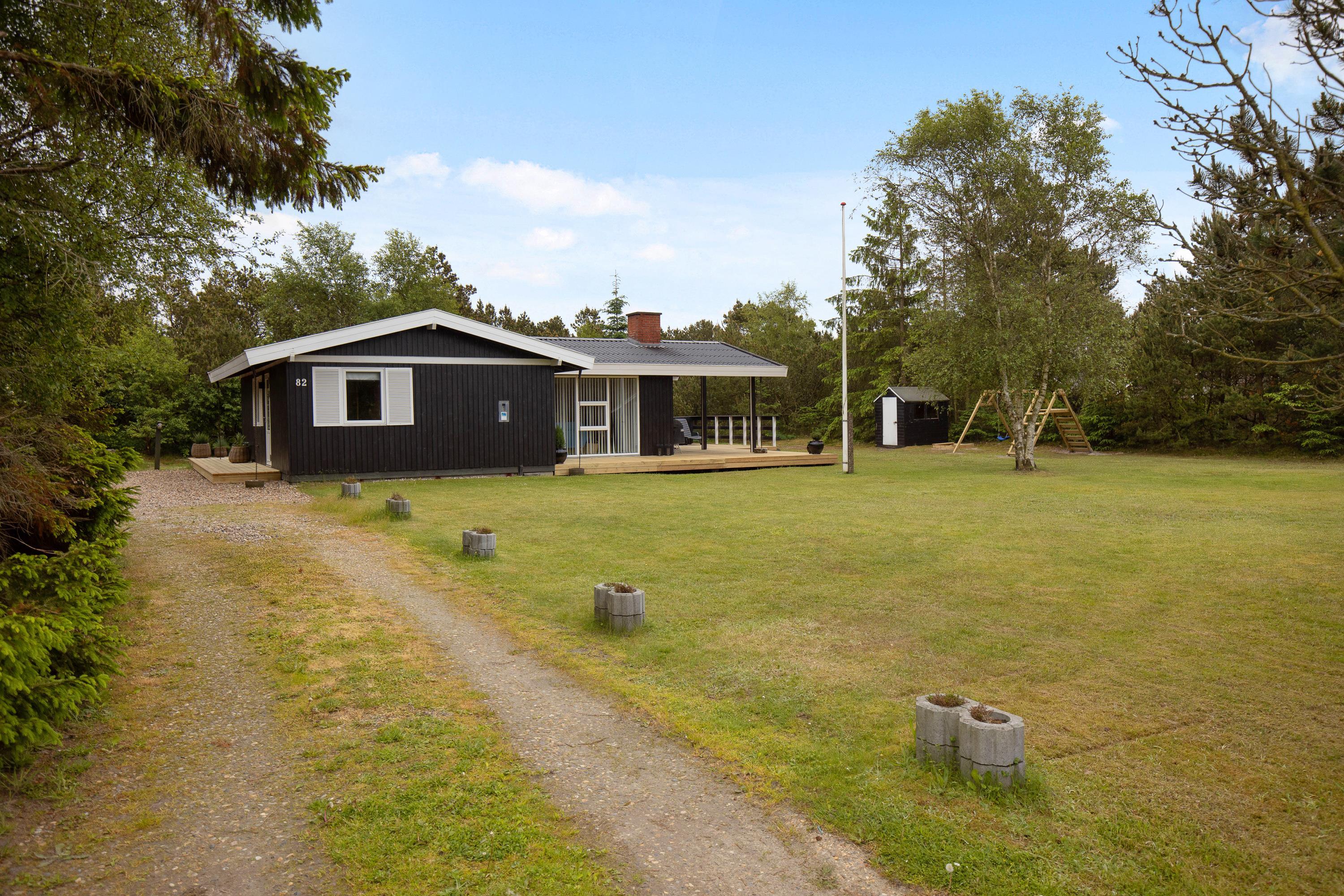 Beliggende direkte op til et skovområde er Hedevang 82 den perfekte adresse til jer, der elsker naturen og søger et dejligt roligt sted til at holde ferie. Feriehuset ligger på en stor naturgrund med masser af terrasseareal og udendørsplads. Med skoven i ryggen og randbeplantning er her læ og ro til virkeligt at få temporeduceret. Lige fra man drejer ind af indkørslen præsenterer det sorte vinkelhus med det sorte tag sig rigtigt fint med gode parkeringsforhold, fint indgangsparti og udendørslys.