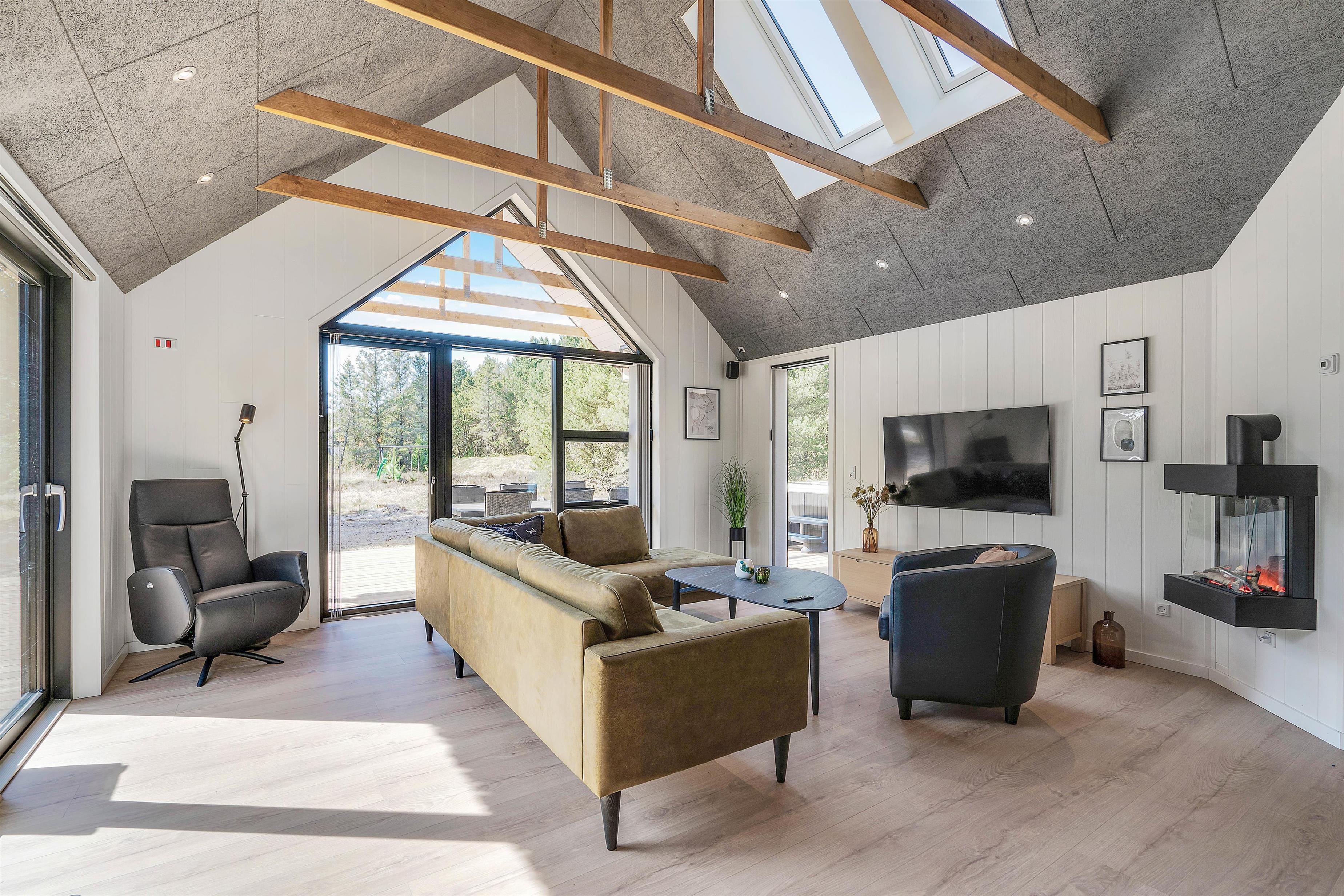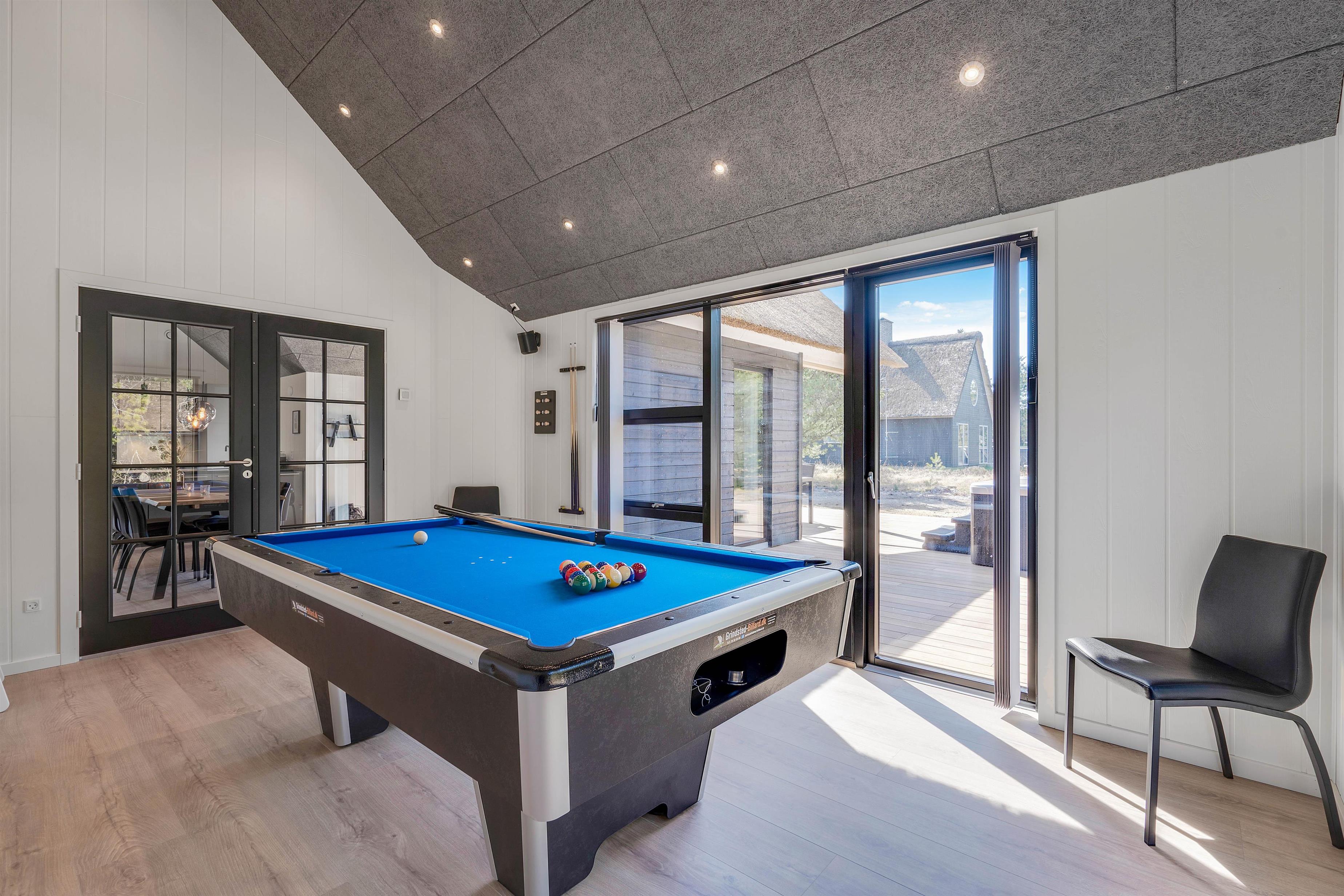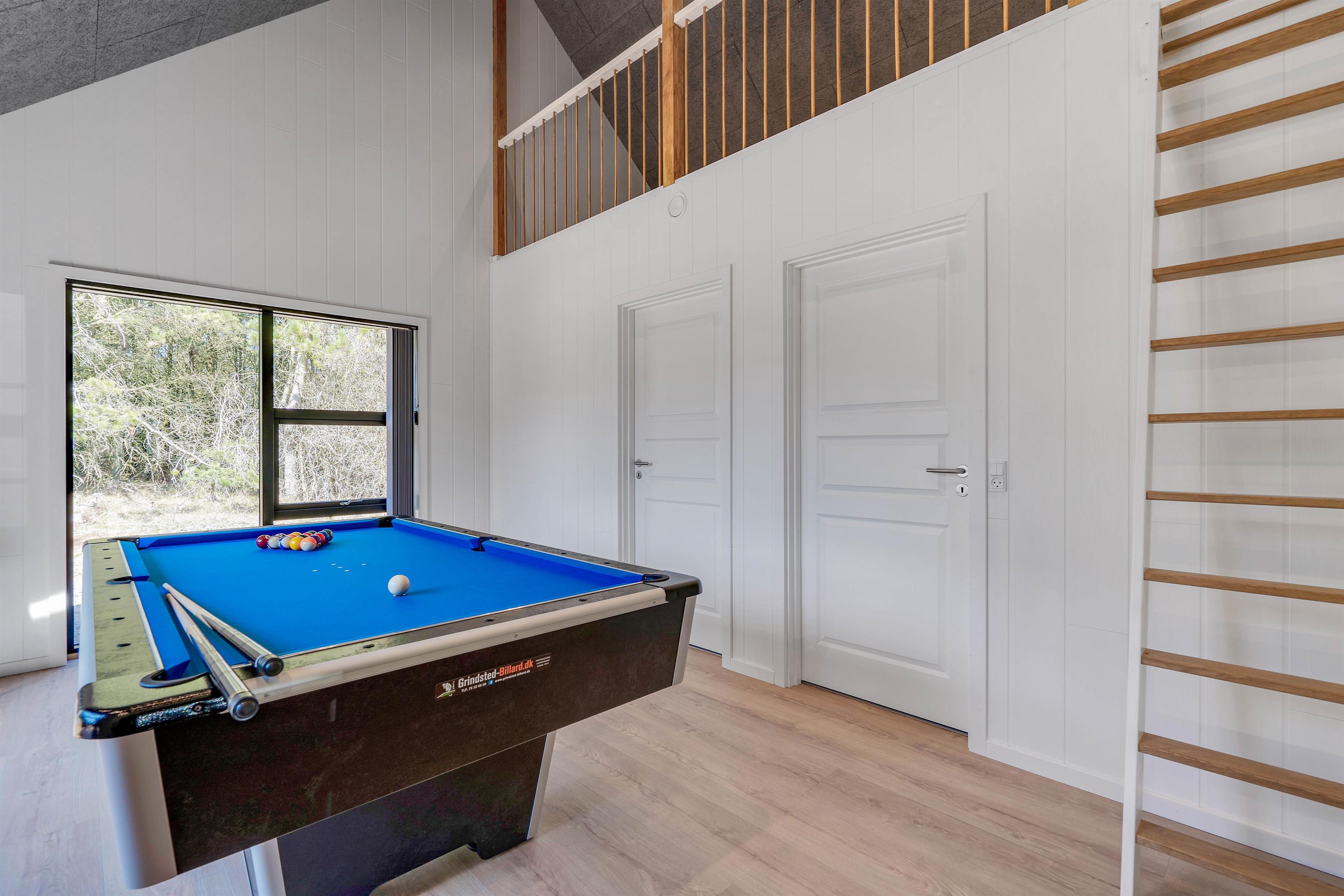 Når I træder ind i dette indbydende sommerhus, bliver I straks mødt af en atmosfære af både komfort og hygge. Hver detalje er gennemtænkt for at sikre en ferieoplevelse uden lige, hvor sociale stunder og afslapning går hånd i hånd. Det veludstyrede samtalekøkken, der smelter sammen med stuen, inviterer til fælles madlavning og hyggelige samtaler, hvor alle kan deltage. I stuen sikrer en el-pejs ekstra hygge og varme, perfekt til afslapning efter en dag fyldt med aktiviteter. Aktivitetsrummet med billardbord tilbyder desuden sjov og underholdning for hele familien.