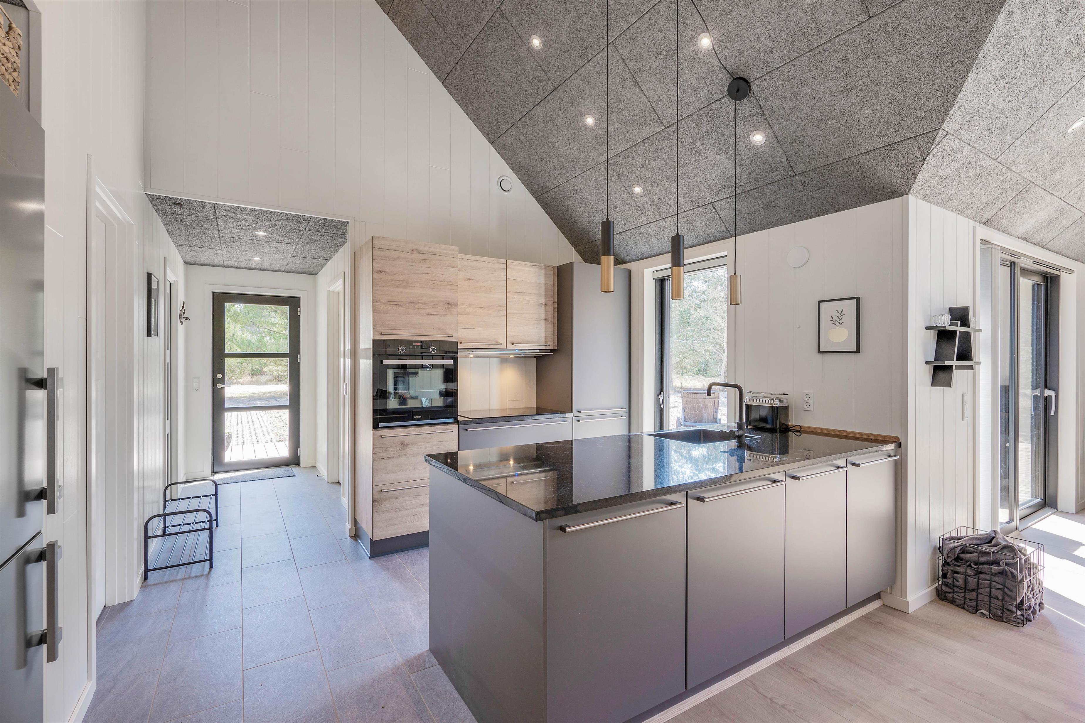 De tre lyse soveværelser lover en afslappende nattesøvn i komfortable dobbeltsenge, mens de høje lofter og den gennemtænkte indretning skaber en følelse af rummelighed og harmoni. Denne veludstyrede perle af et sommerhus er udstyret med to badeværelser med gulvvarme samt en vaskemaskine og tørretumbler for maksimal bekvemmelighed. Her kan I nyde feriedagene uden bekymringer og skabe minder for livet.