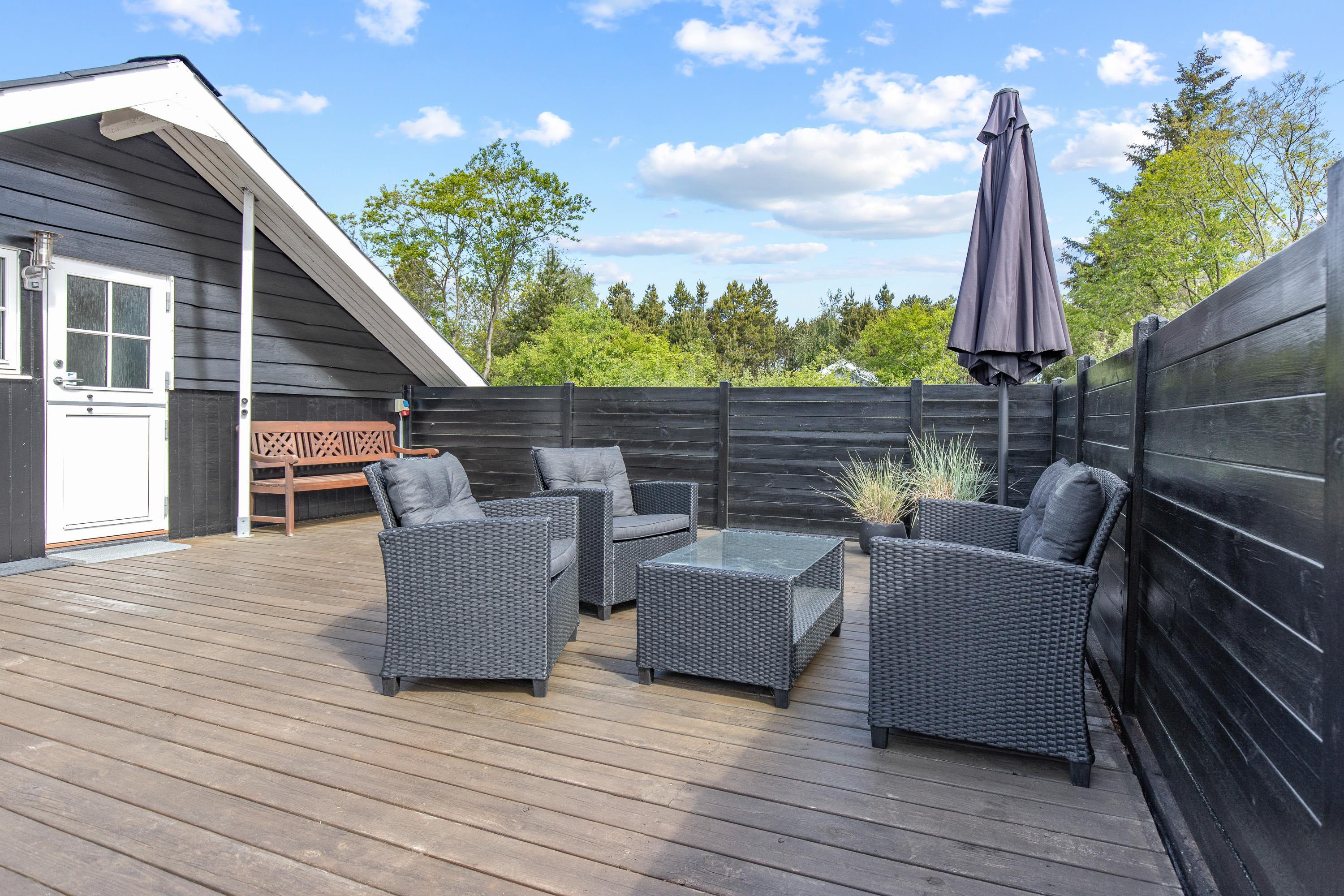 Vestjyllands storslåede natur kan nydes fra husets 2 terrasser, som er delvist overdækkede og har gode læforhold. Mens børnene gynger eller leger i sandkassen, kan I nyde en friskbrygget kop kaffe eller et koldt glas rosévin i solen.
