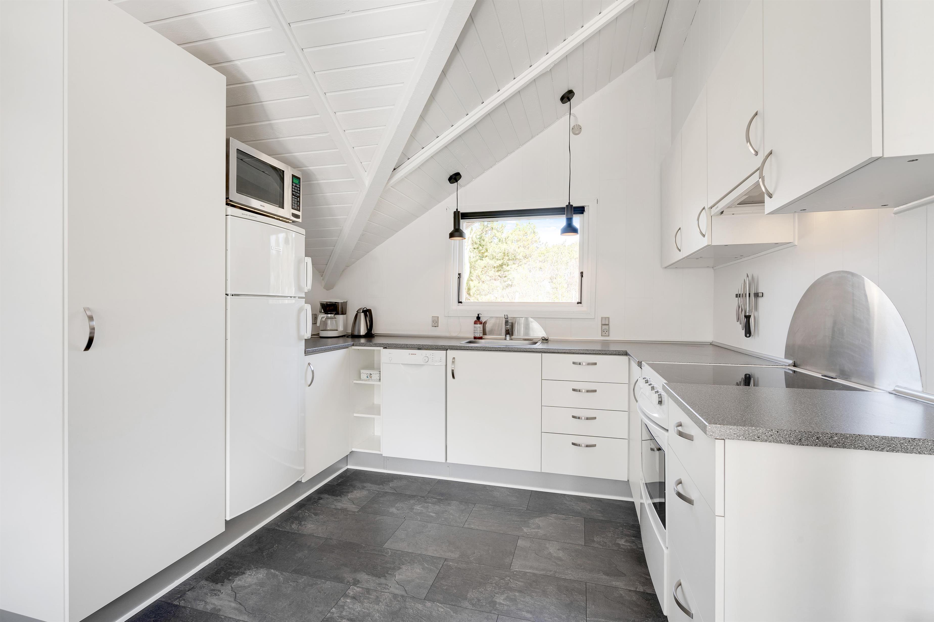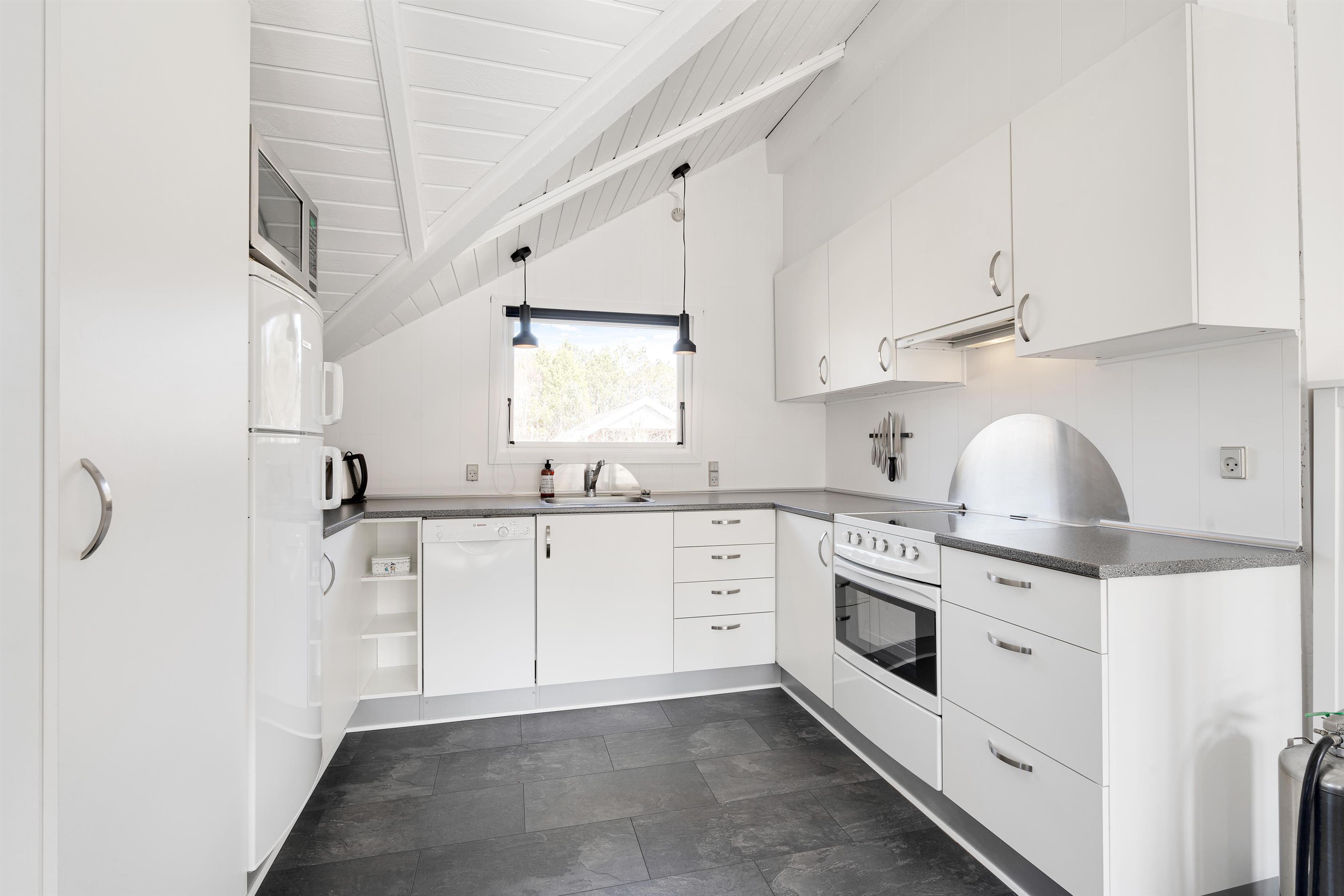 Sammen med spisestuen finder I også det åbne og moderne køkken. Her kan der tilberedes lækre middage sammen, og efter maden klarer opvaskemaskinen arbejdet for jer, mens I kan sætte jer ved bordet og spille et brætspil ved brændeovnens dansende flammer. De 3 soveværelser er lyse og venlige, lige sådan er badeværelset, som derudover er udstyret med gulvvarme. Resten af huset kan varmes godt op af den energibesparende varmepumpe.