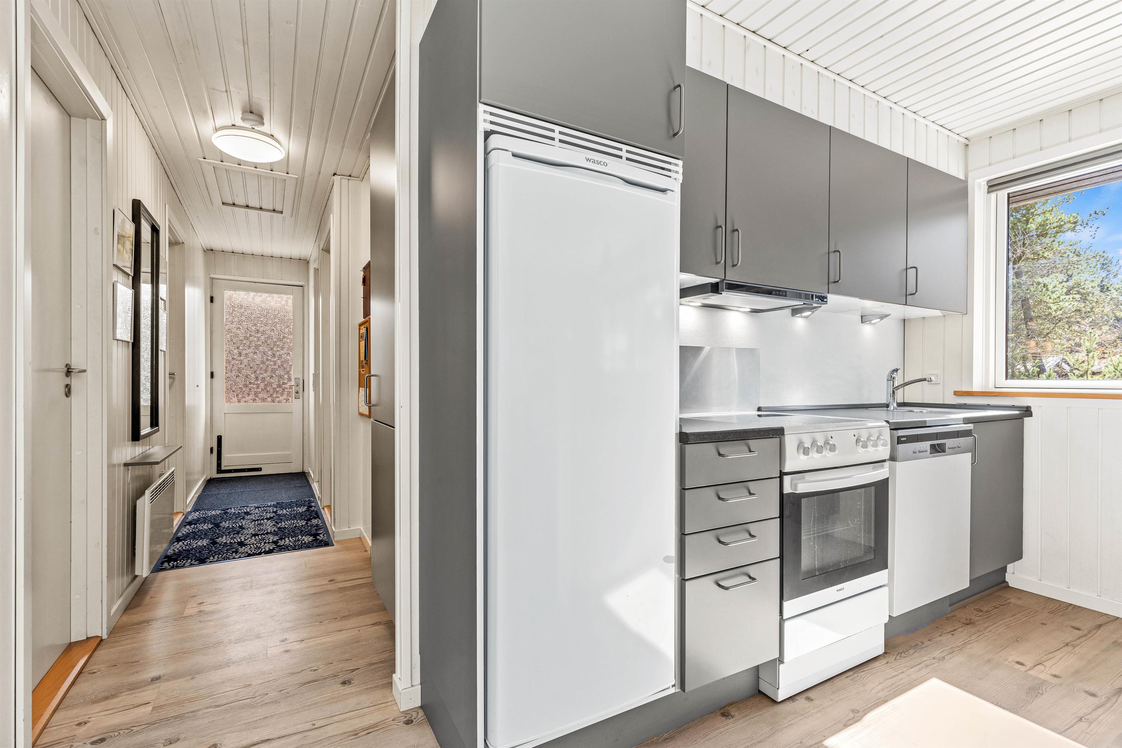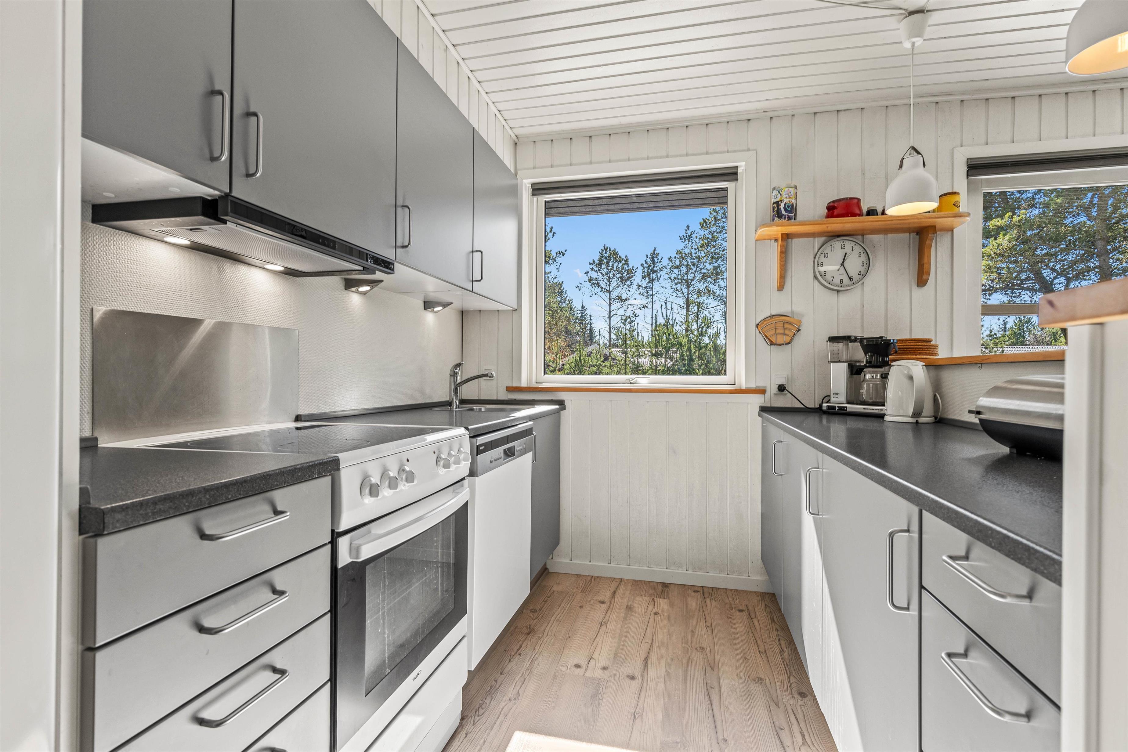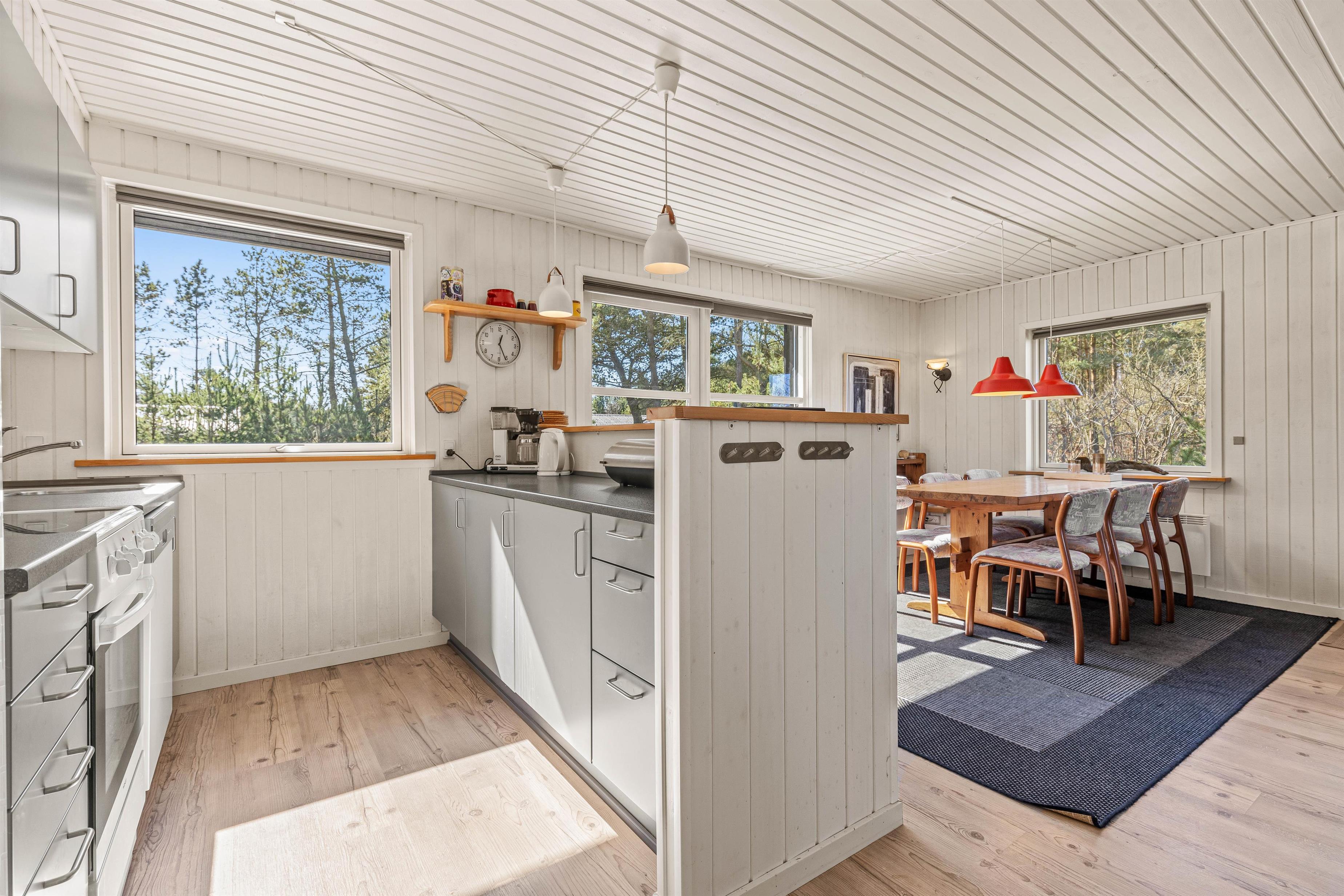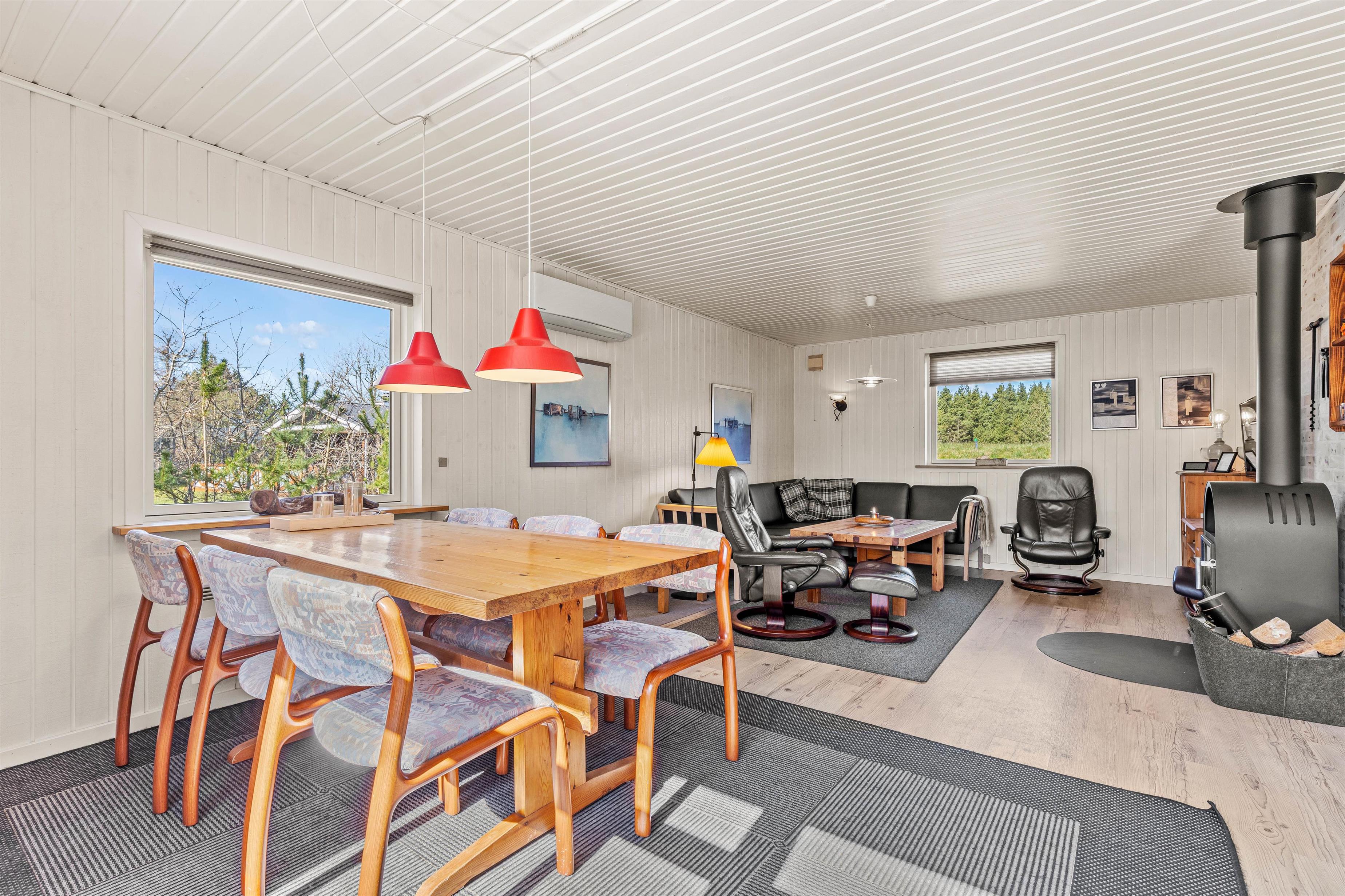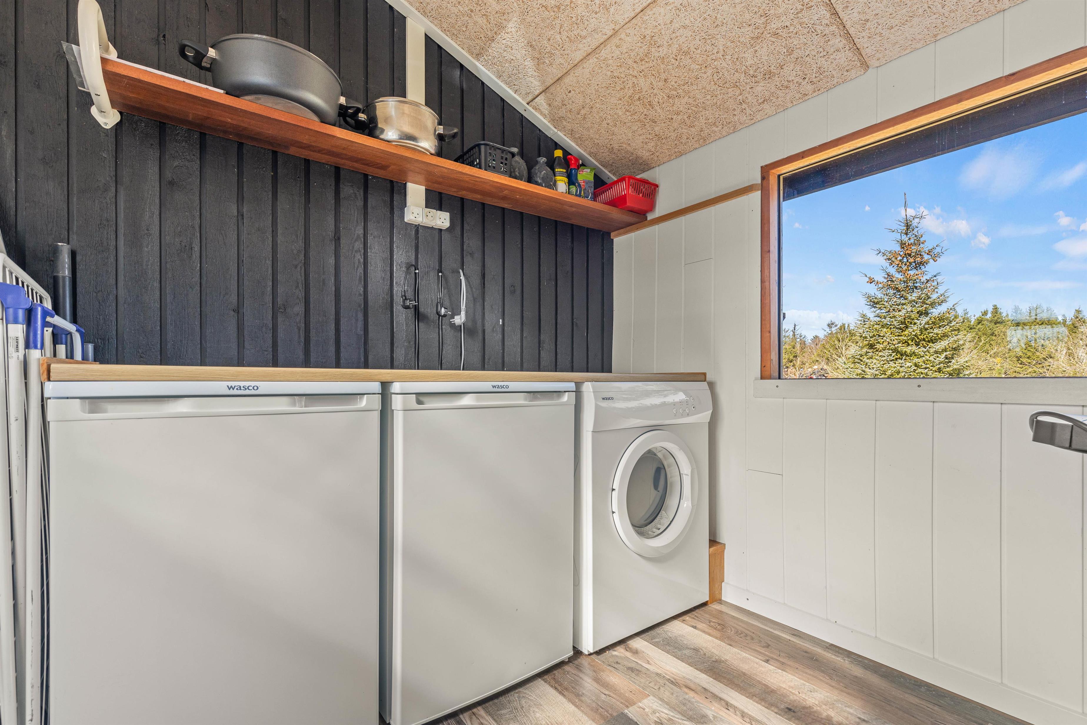 På Hans Hansensvej 108 bor I rigtigt dejligt. Her er brændeovn til hyggeaftener, stor fryser i skuret til is og madvarer - eller måske til de friskfangede fisk fra Ringkøbing Fjord? Selvfølgeligt rummer køkkenet en opvaskemaskine i køkkenet og vaskemaskinen og tørretumbleren afrunder billedet af en ferie, hvor det er gjort nemt, rigtigt at kunne slappe af.