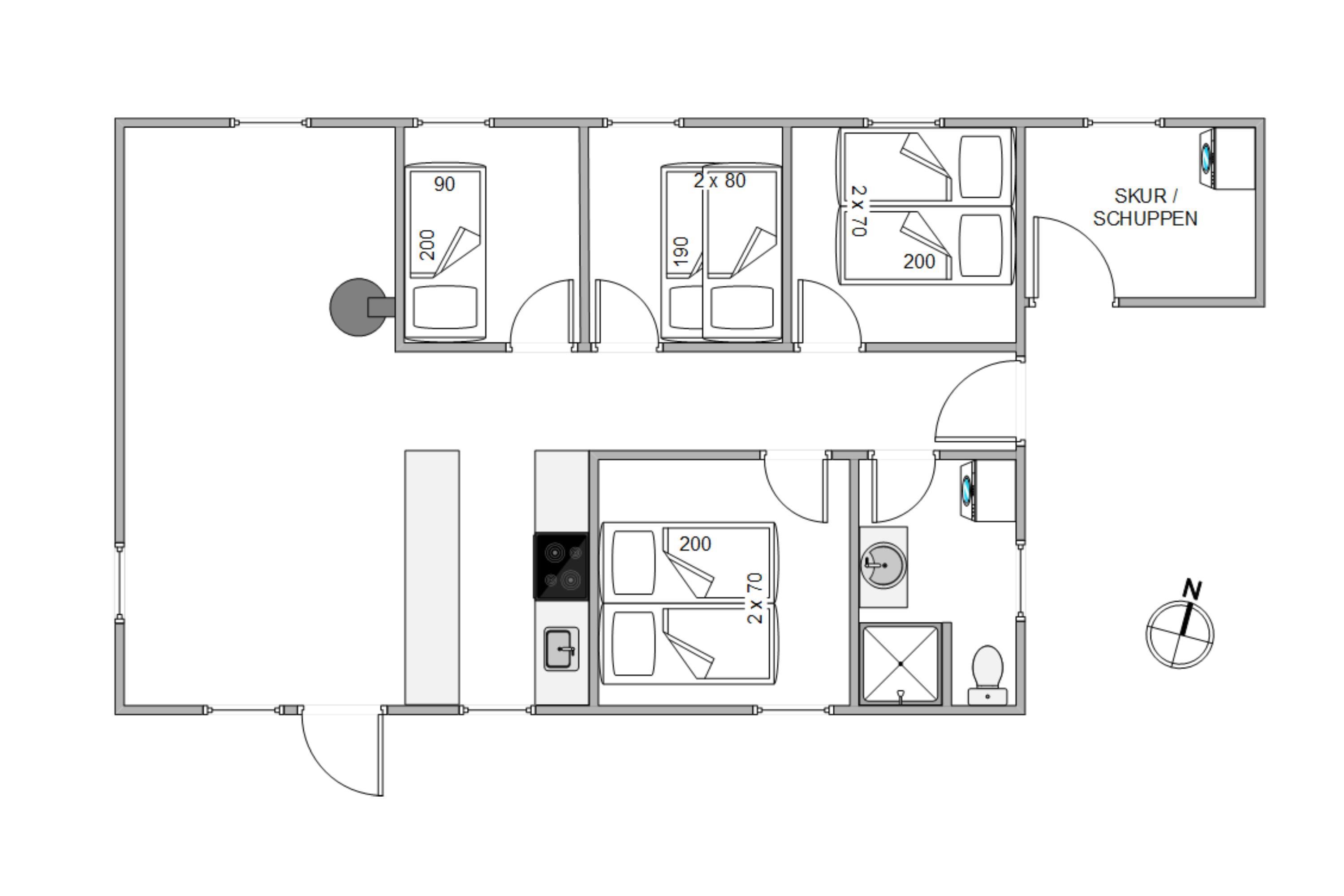 For de helt små er der både højstol og barneseng, de mellemste vil elske køjesengene og til de store er der gode 140'er dobbeltsenge. Her er simpelthen plads til hele familien og familiens hund er også velset.