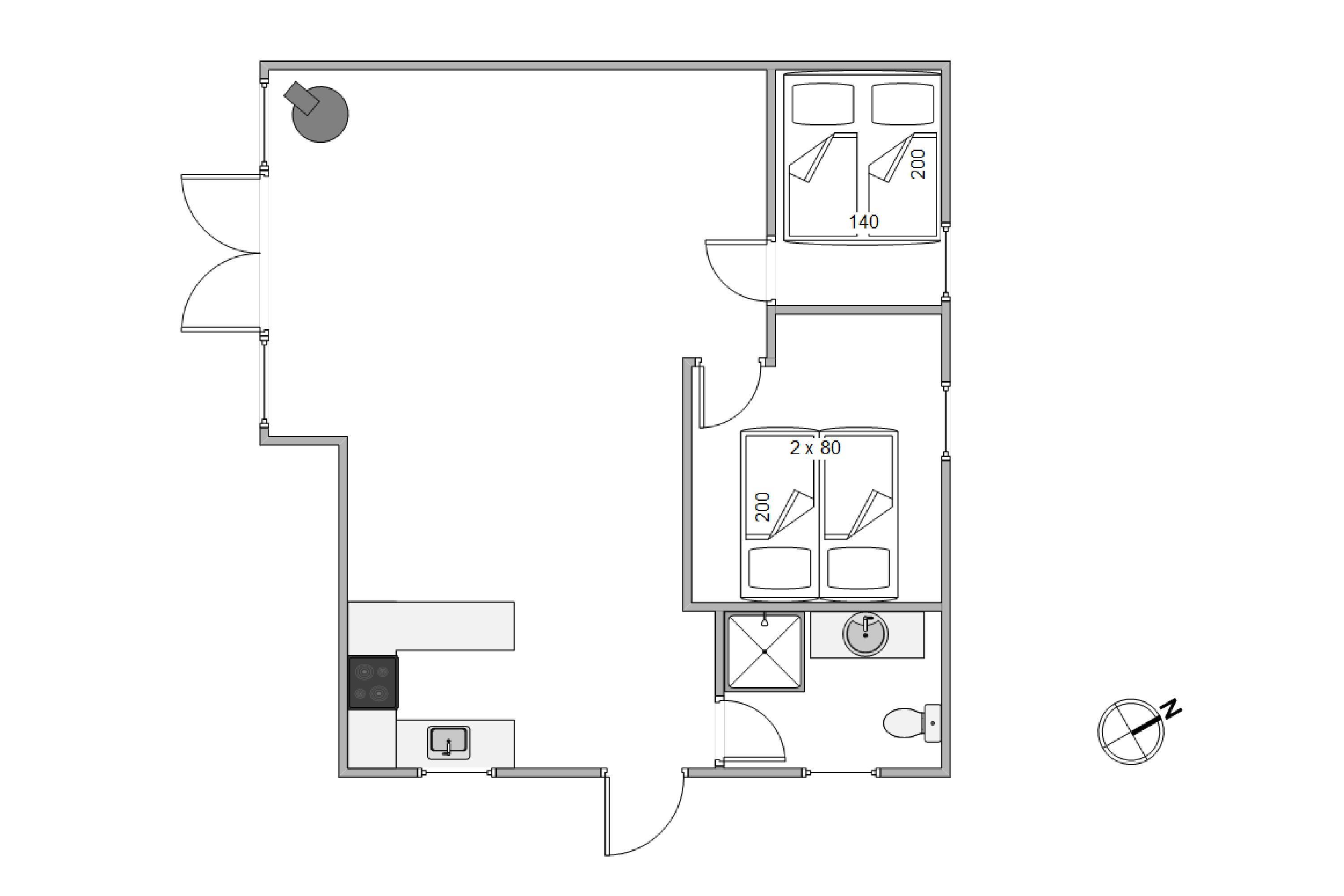 Dette hyggelige sommerhus er indrettet med 2 soverum. Det ene værelse er udstyret med dobbeltseng og det andet har to enkeltsenge. Begge værelser har adgang til stuen, som ligger i åben forbindelse med køkkenet, som har opvaskemaskine. Når vejret ikke indbyder til eventyr i området, kan I hygge jer i stuen med brætspil, puslespil, en god bog, eller hvad der nu interesserer jer. Fra stuen kan I gå direkte ud på terrassen, hvilket er enormt praktisk, hvis I har hundene med. I kan blot åbne terrassedørene og lade jeres firbenede venner løbe frit på den store, indhegnede grund.