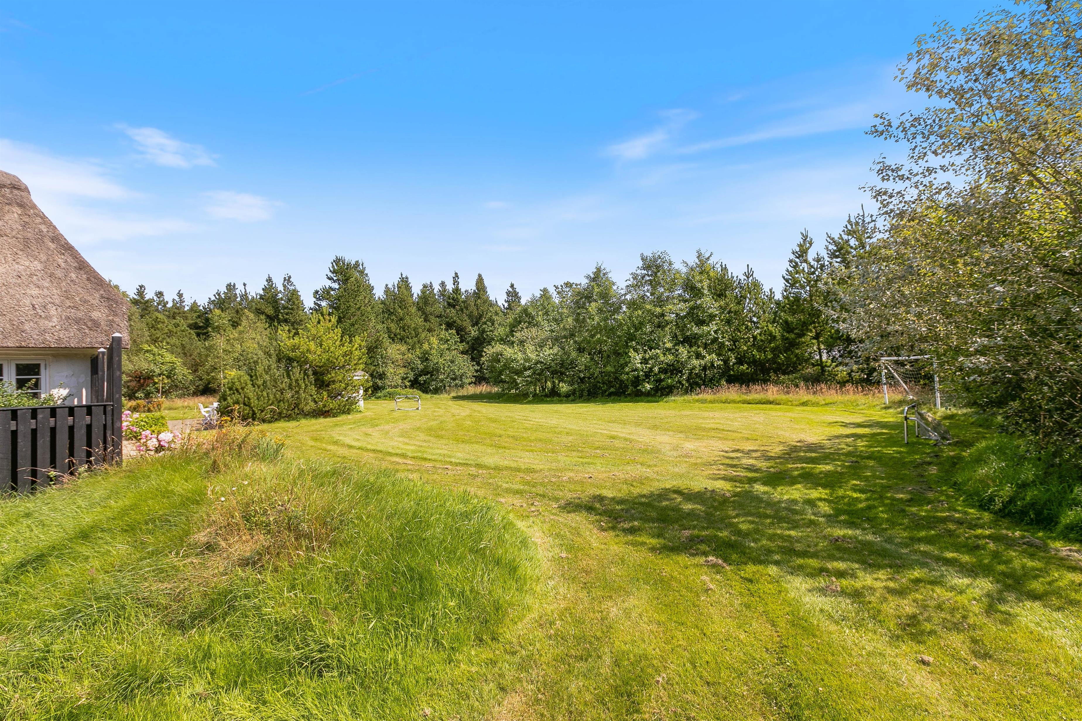 Flere hyggelige områder omkring huset inviterer til afslappende stunder med en kop nybrygget kaffe eller et godt glas vin, og her er der rigeligt med plads til ro og fordybelse. Sommerhuset er omgivet af en imponerende naturgrund, hvilket giver jer masser af plads til udendørs aktiviteter og leg i det fri.