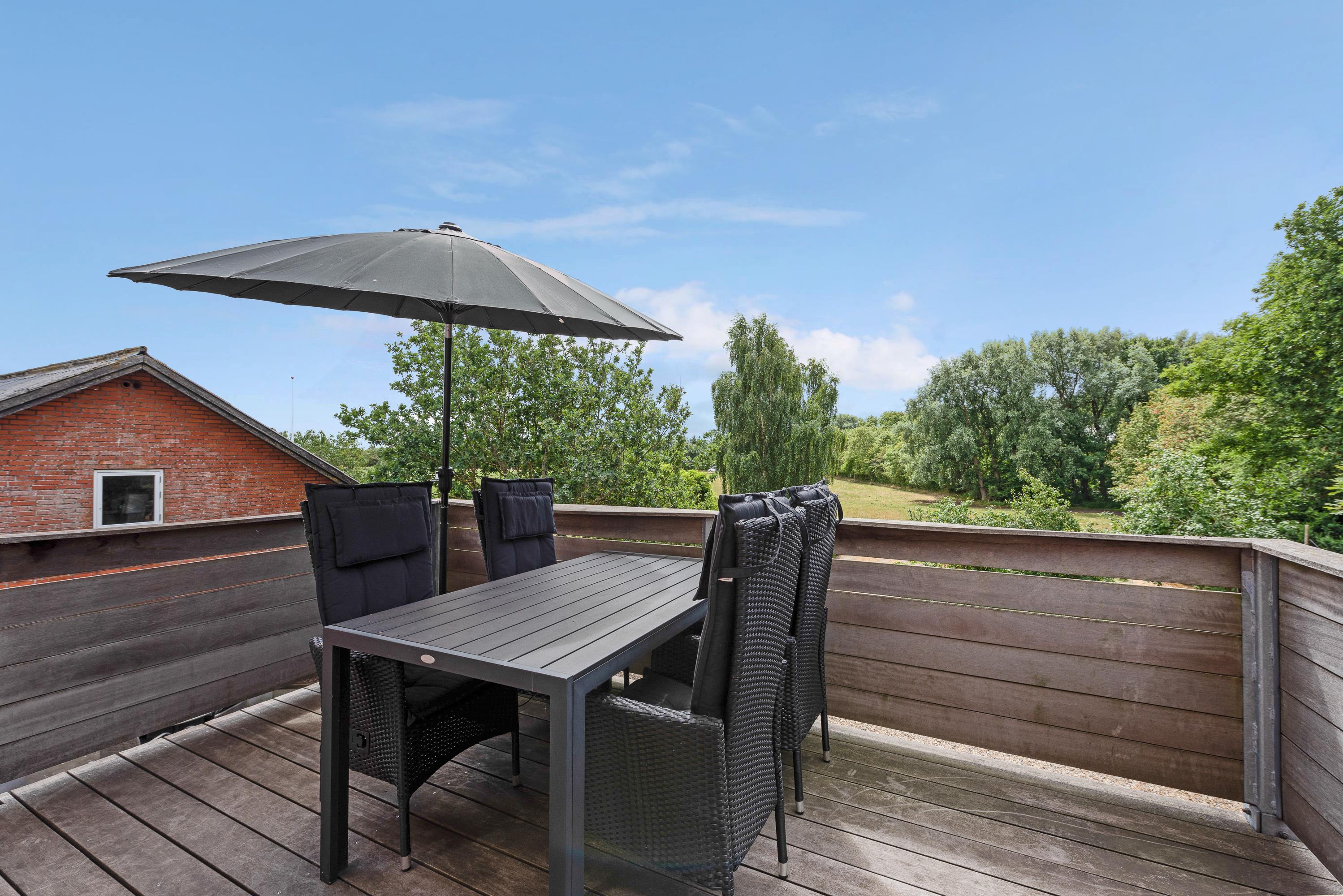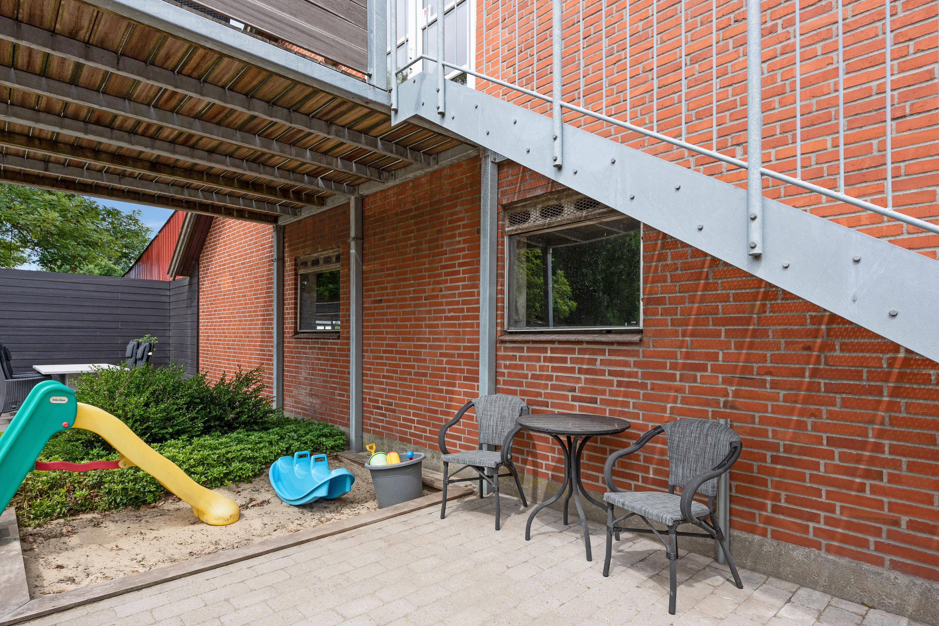 Rigtigt dejligt er det, at I har adgang til 2 store balkoner. Perfekt til at hygge med et glas vin og nyde solnedgangen og den dejlige udsigt over mark og enge. Samtidigt må I bruge gårdhaven. Her kan børnene hygge sig og lege i sandkassen, imens I slapper af og drikker en kop kaffe i solen eller måske tænder op i grillen.