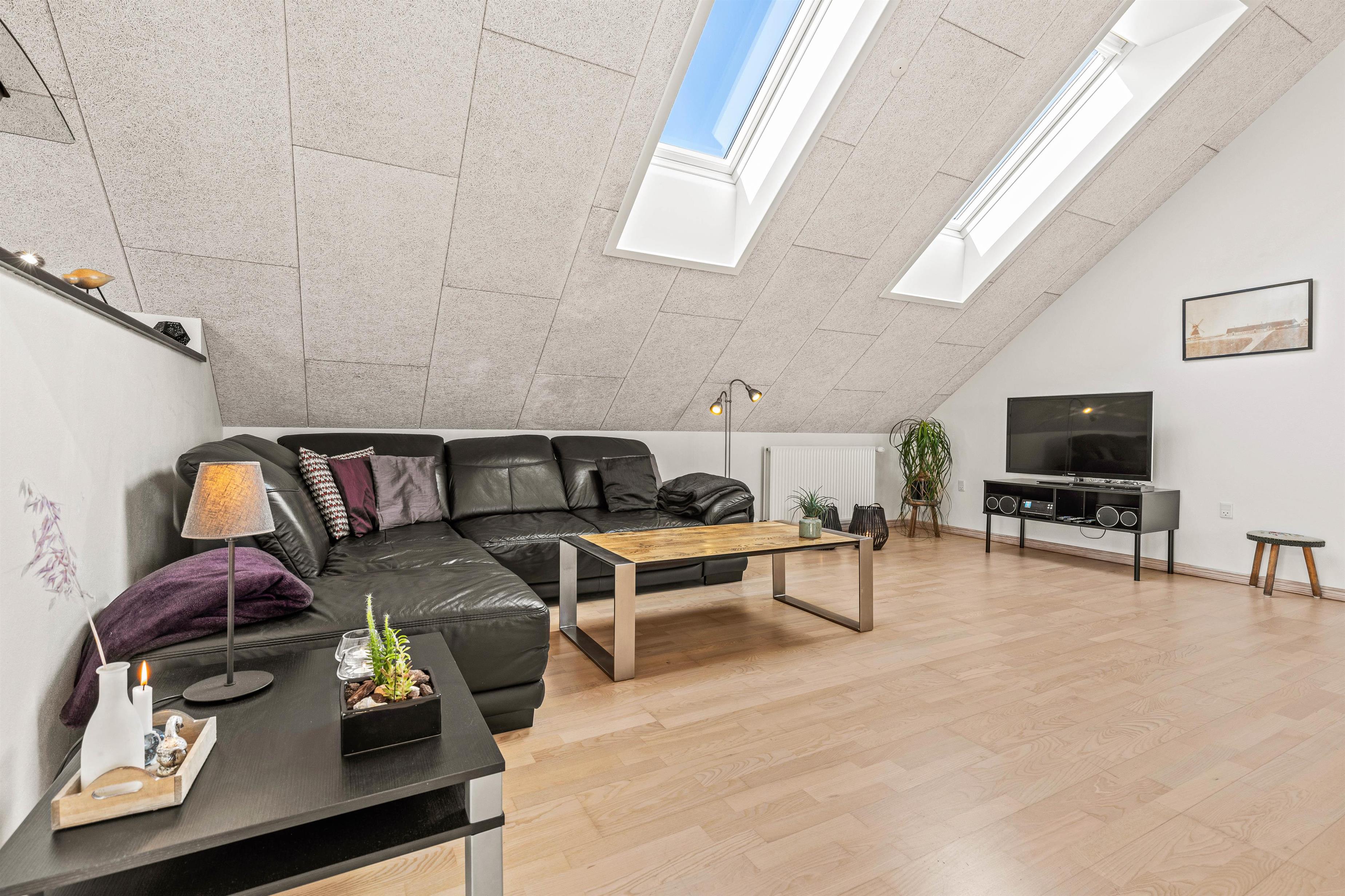 Den 122 m2 store lejlighed har loft til kip, den er dejlig lys og praktisk indrettet med 2 gode store soverum med dobbeltsenge og en fin, let tilgængelig hems med yderligere 2 sovepladser. I det moderne køkken er der induktionskomfur og naturligvis opvaskemaskine, ligesom I har både vaskemaskine og tørretumbler til jeres rådighed.