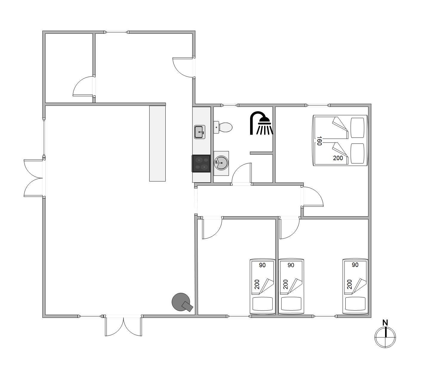 1 soveværelse med dobbeltseng (160x200) og yderligere 2 soveværelser med enkeltsenge (80x200). Både badeværelset og gangen har gulvvarme, så kolde fødder ikke er til frygt her.