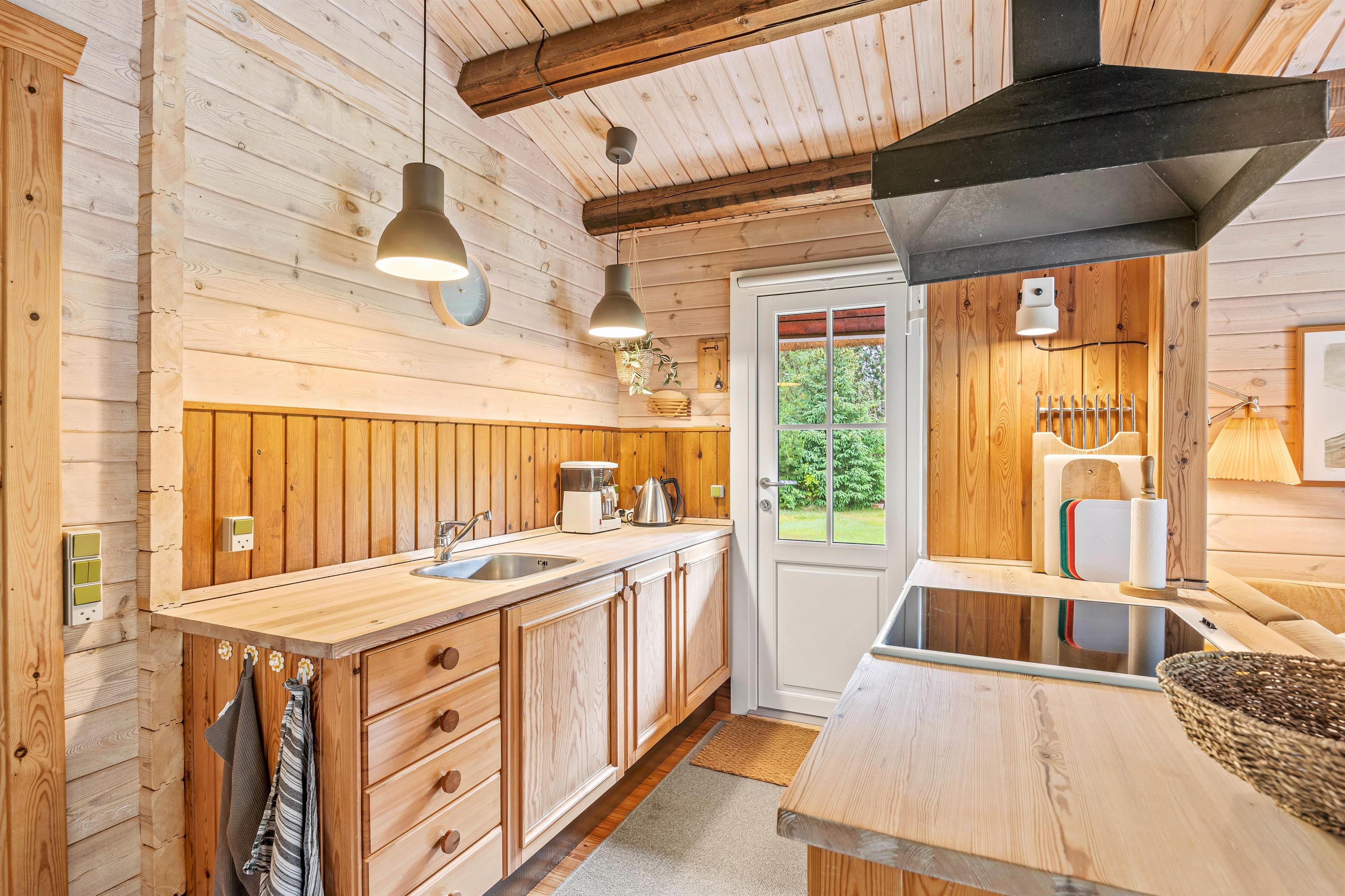 Køkkenet, der har emfang (istedet for emhætte), er åbent ud mod spiseplads og en rigtig hyggelig stue, der opvarmes af en energibesparende luft-til-varme-pumpe.