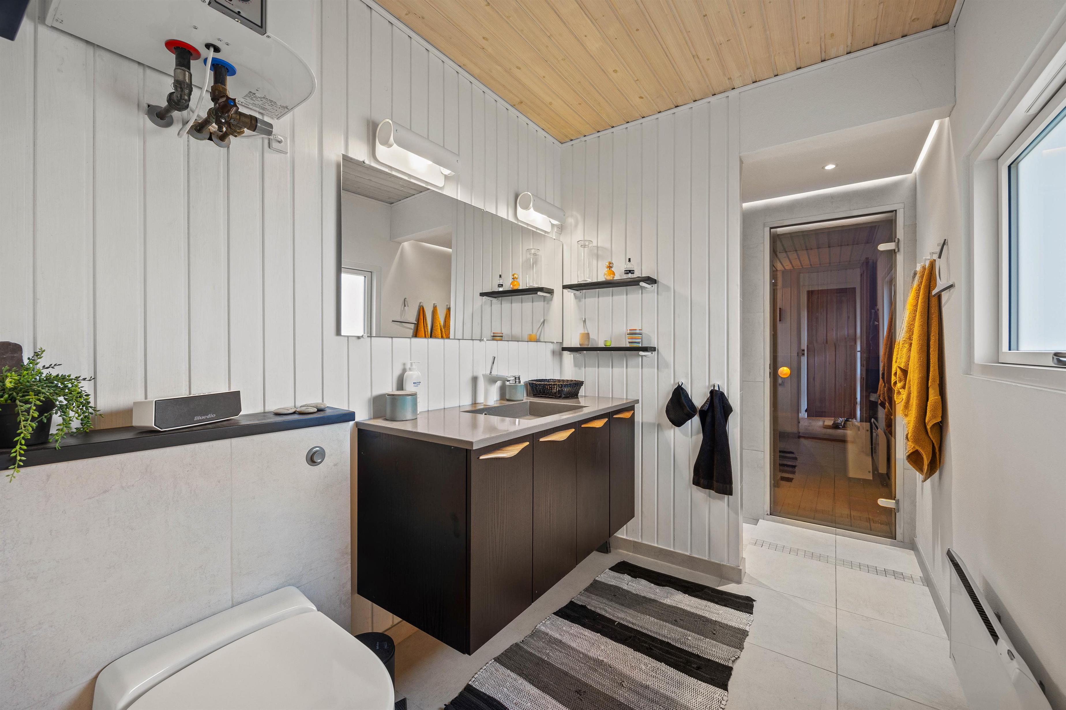 De tre soveværelser rummer god plads og er alle udstyret med skabe og behagelige dobbelt- og enkeltsenge. Badeværelset er også blevet moderniseret, og her finder I også husets sauna, som helt sikkert vil blive brugt flittigt i løbet af ferien. Efter en lang gåtur i den smukke natur er det den perfekte måde at få varmen på og lade batterierne op igen.
