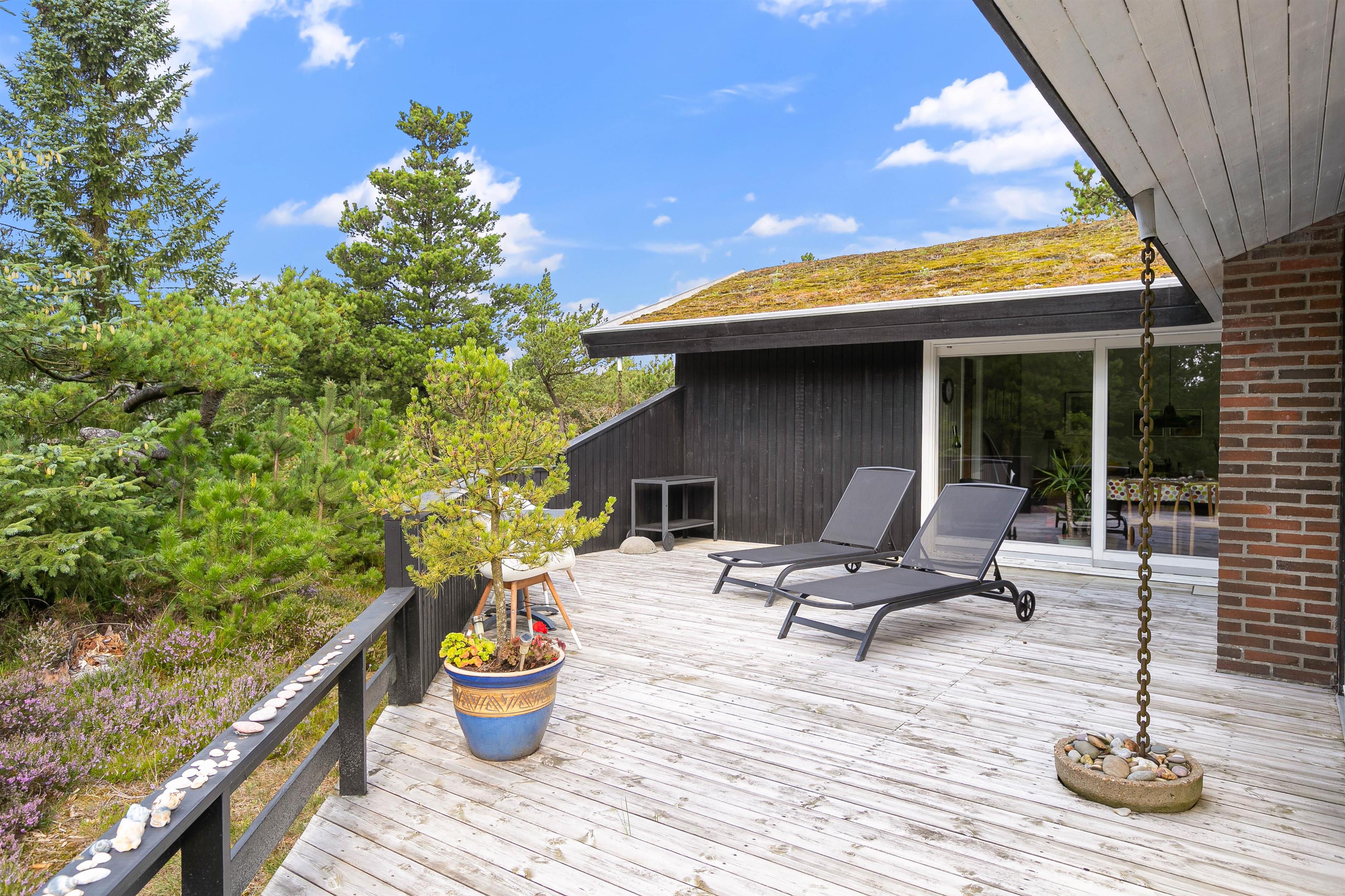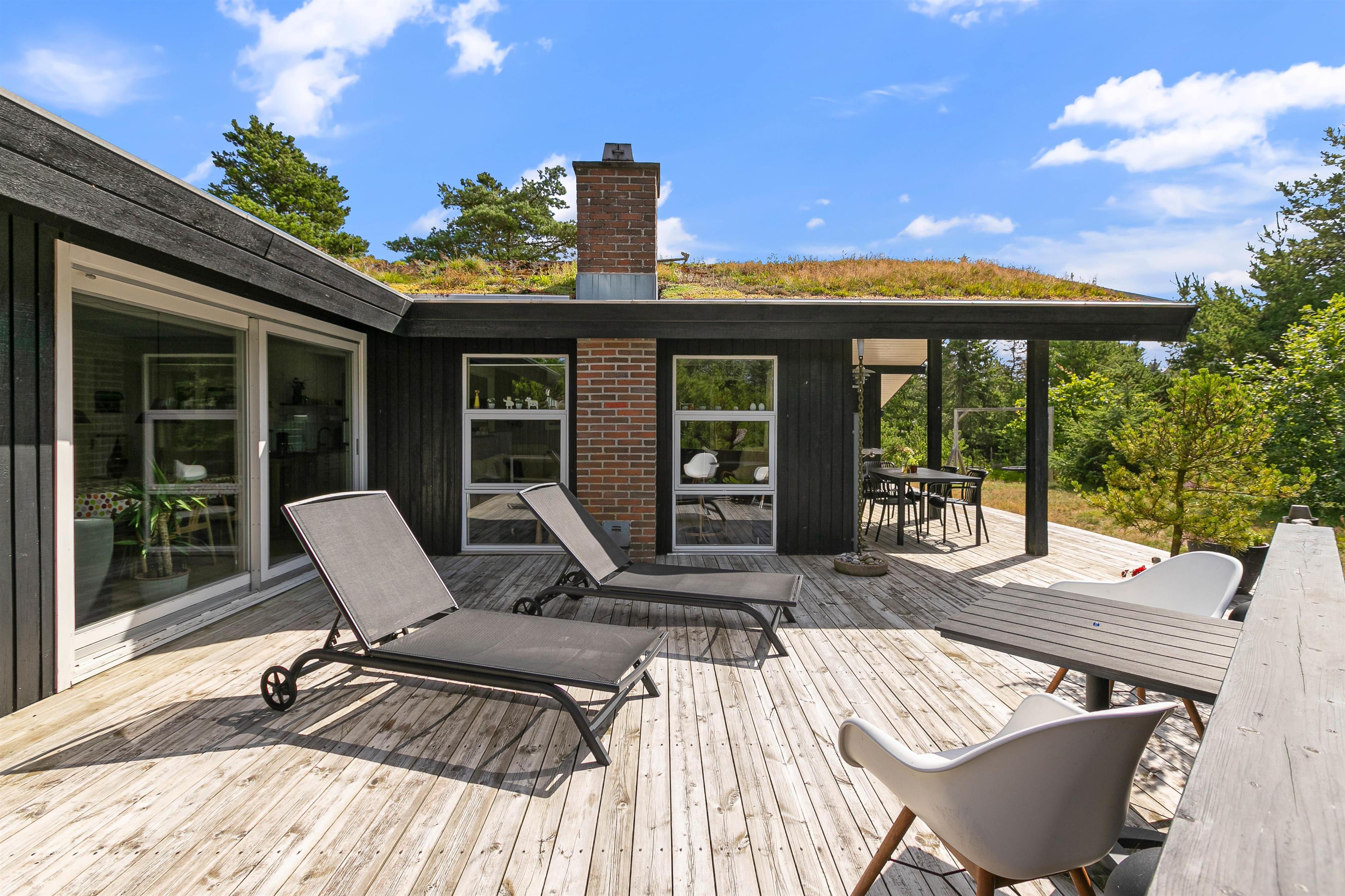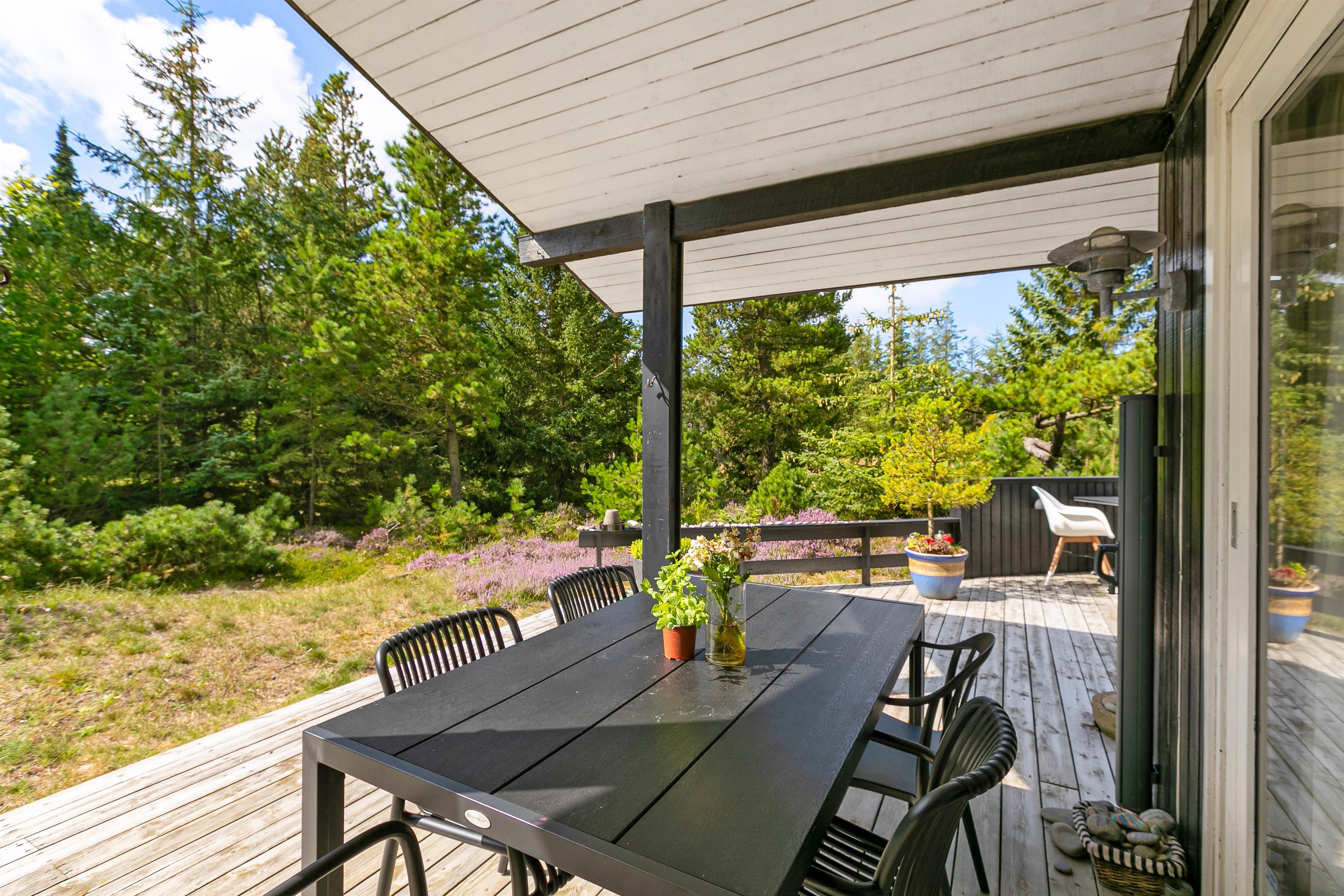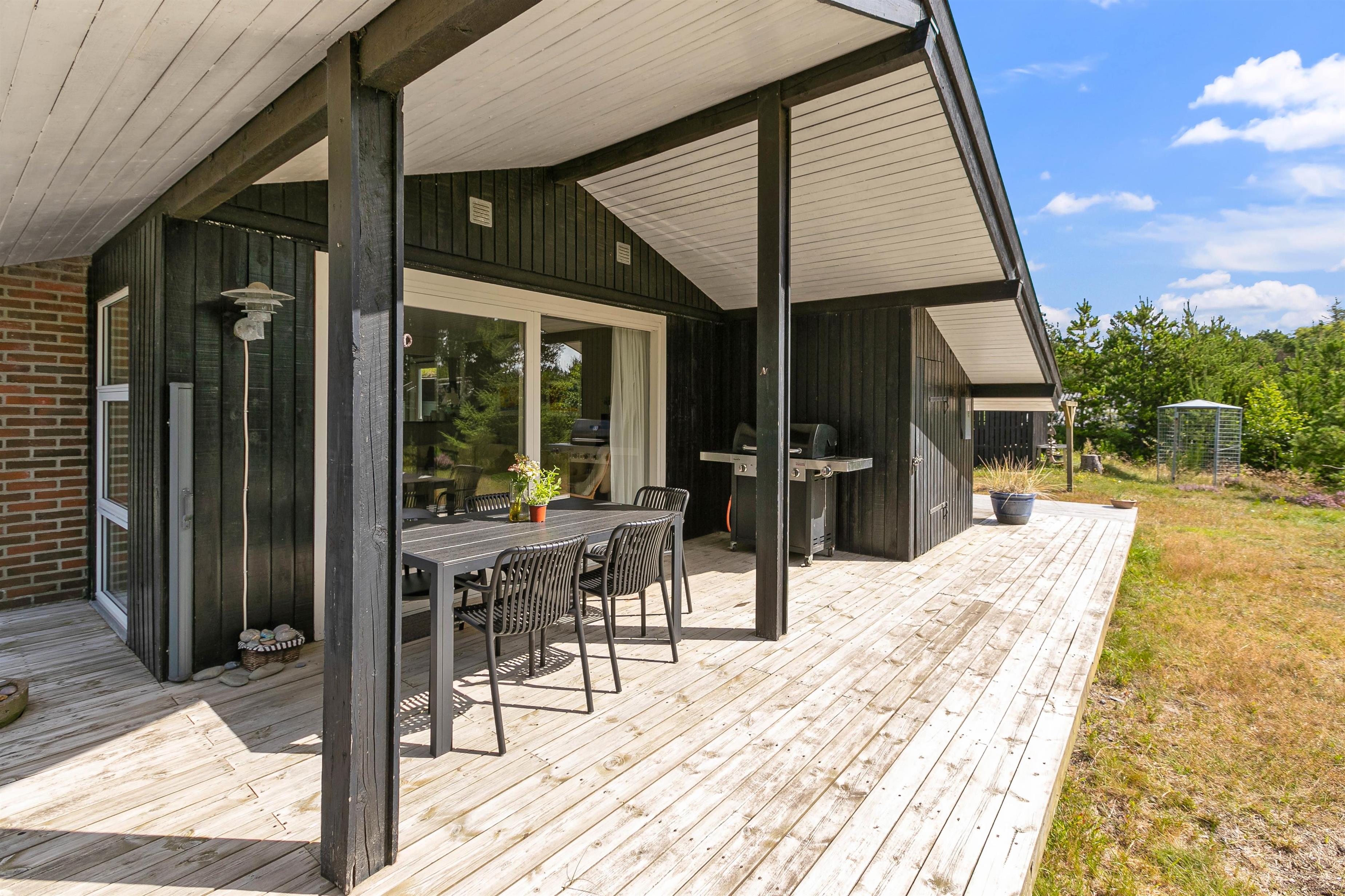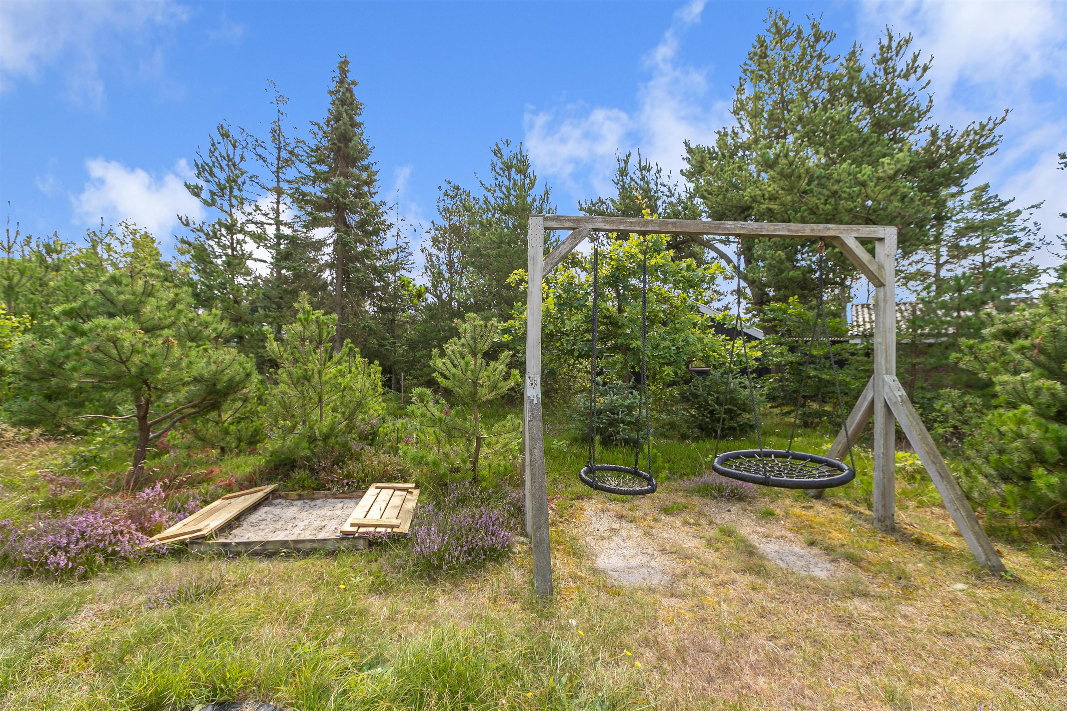 Terrassen omslutter næsten hele huset, og her står både havemøbler, liggestole og en grill klar til jer, så I kan få hele dagen til at gå i den friske luft. Til de mindste feriegæster er der lavet en sandkasse og et gyngestativ, så de ikke kommer til at kede jer, mens I læser en god bog i liggestolene.