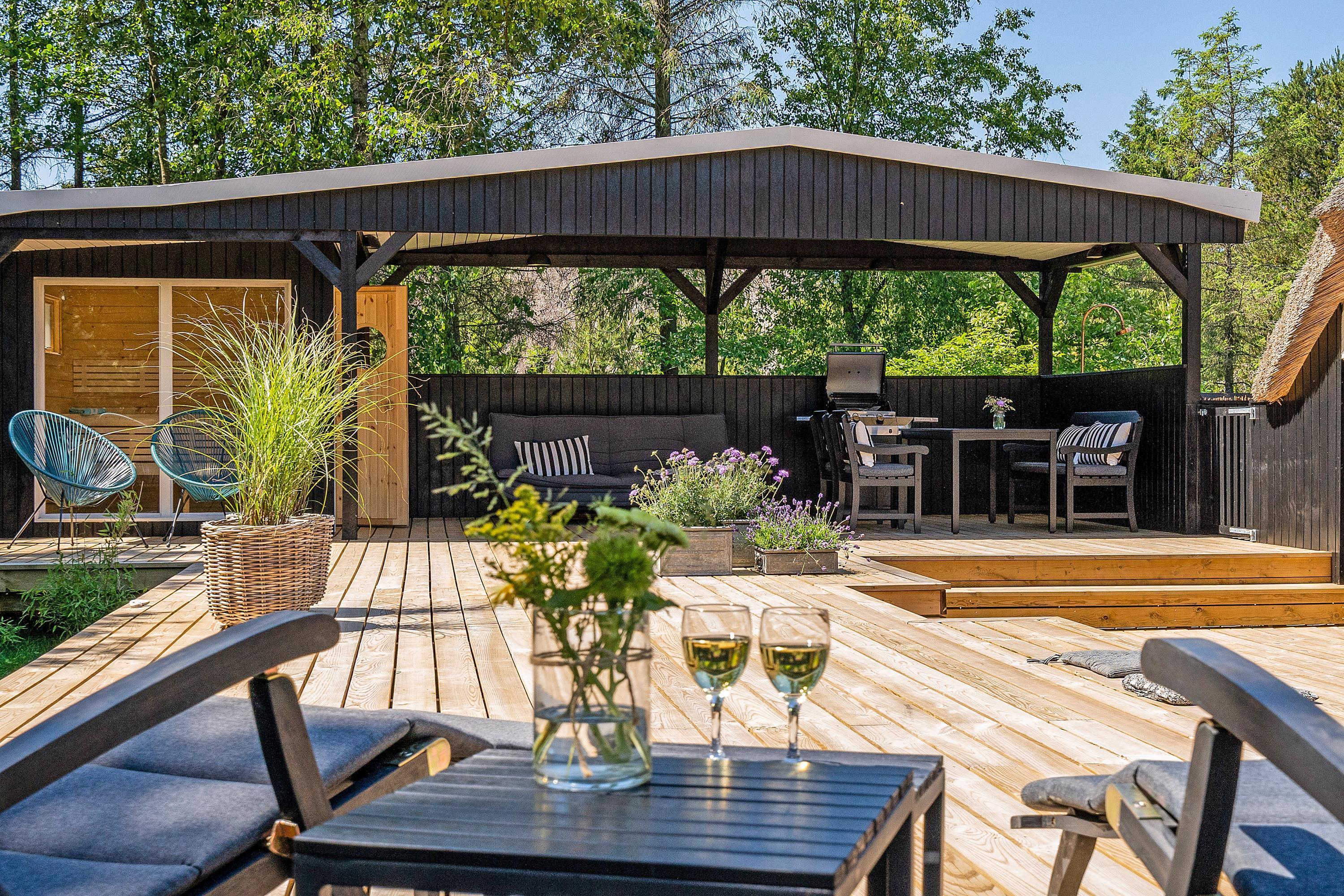 Terrasseliv året rund med udendørs sauna og udendørs bruser
