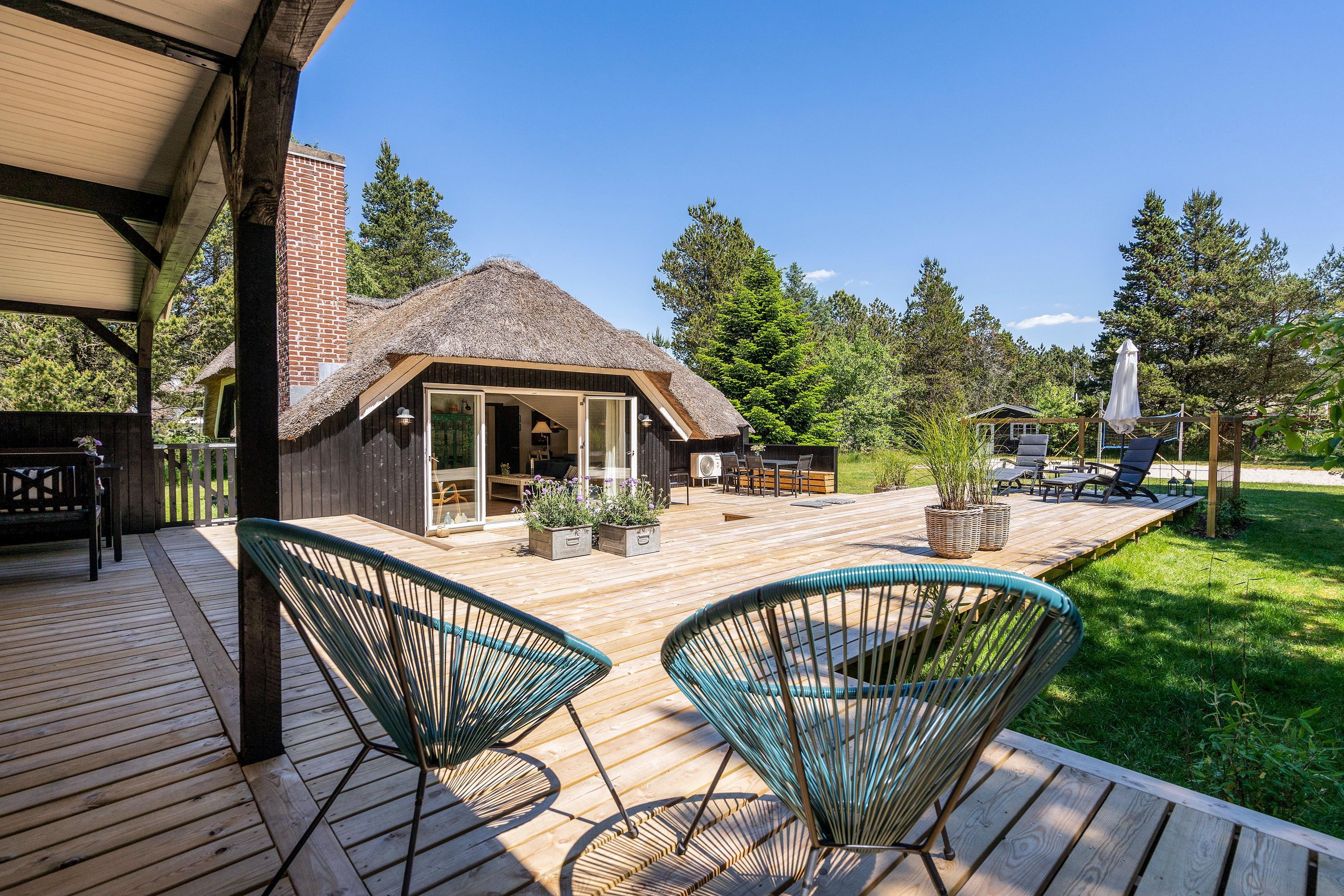 Lyst til en rigtig dejlig familieferie med lidt ekstra luksus? Det stråtækte sommerhus på Hans Hansensvej 53 i Houstrup lægger op til både hygge og luksus – indenfor er det ren ferieidyl med brændeovn og bekvemt sofahjørne og udenfor på de fine terrasser lover den udendørs sauna og udebruseren masser af frisk luft og afslapning. Feriehuset er blevet renoveret i 2020, det har plads til 5 og familiens 2 hunde må gerne være med.