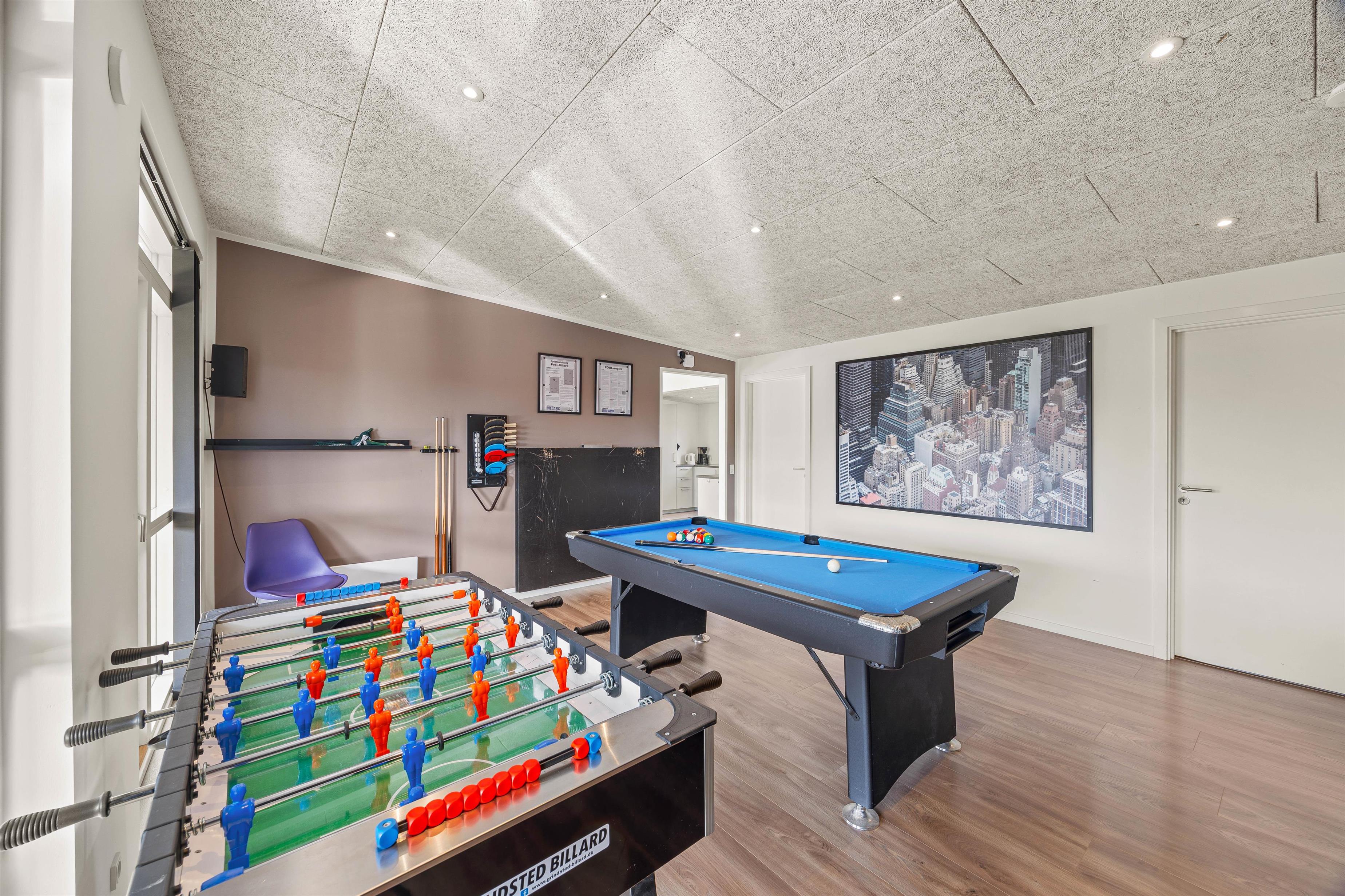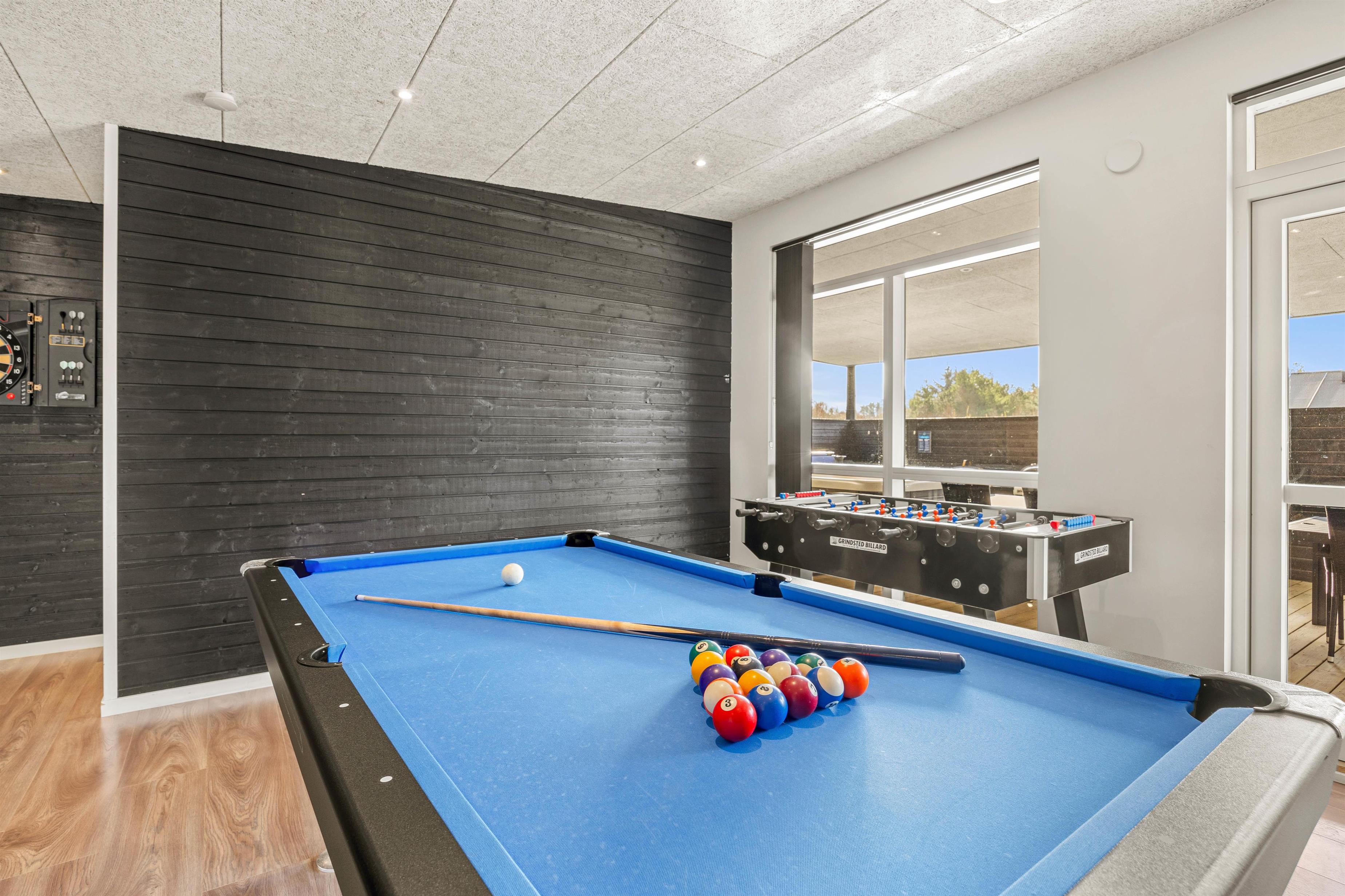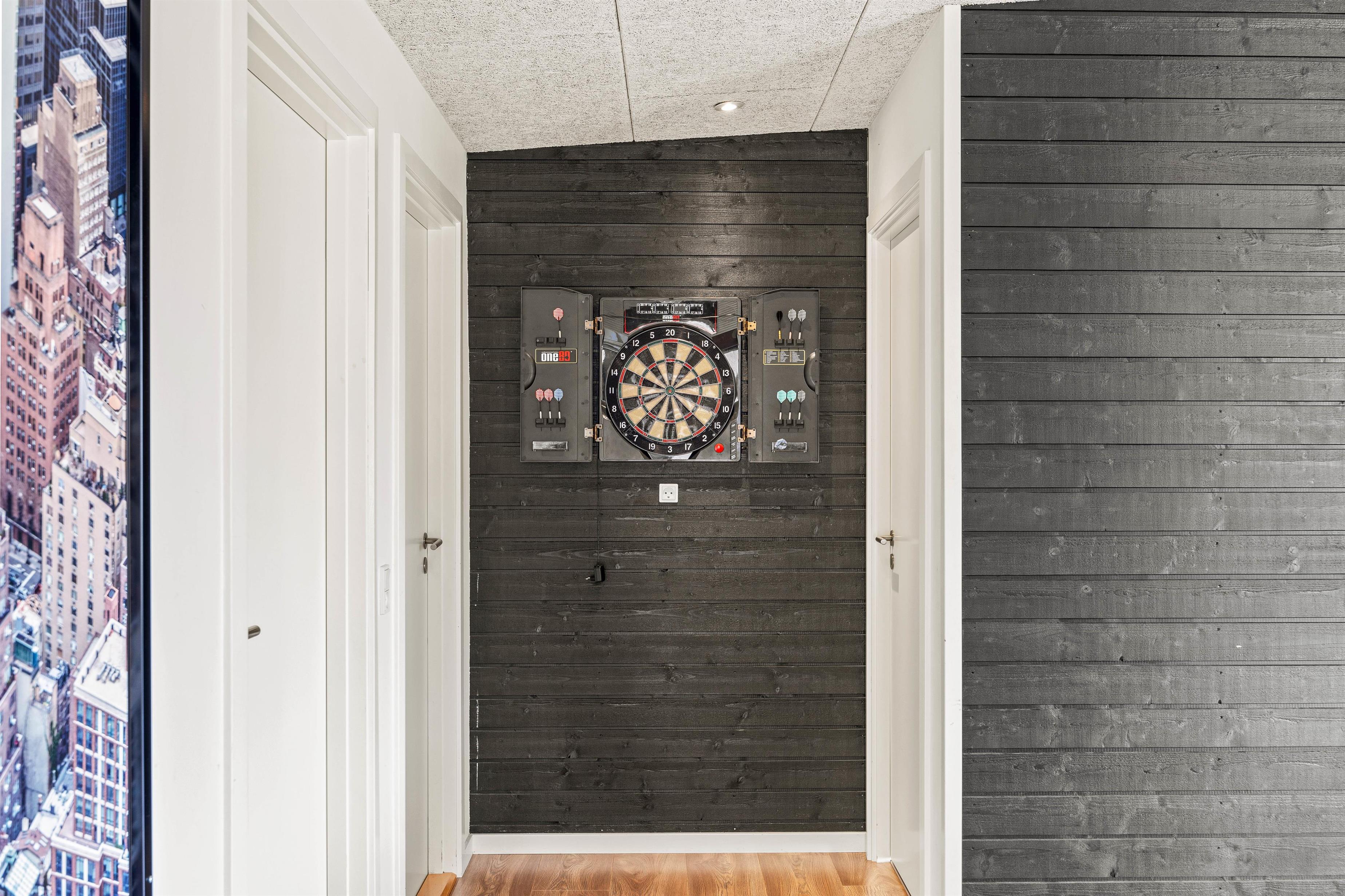 Fra stuen har I direkte adgang til et aktivitetsrum fyldt med fornøjelser. Her kan I udfordre hinanden i både billard, dart og bordfodbold – en oplagt mulighed for en venskabelig turnering blandt familie eller venner.