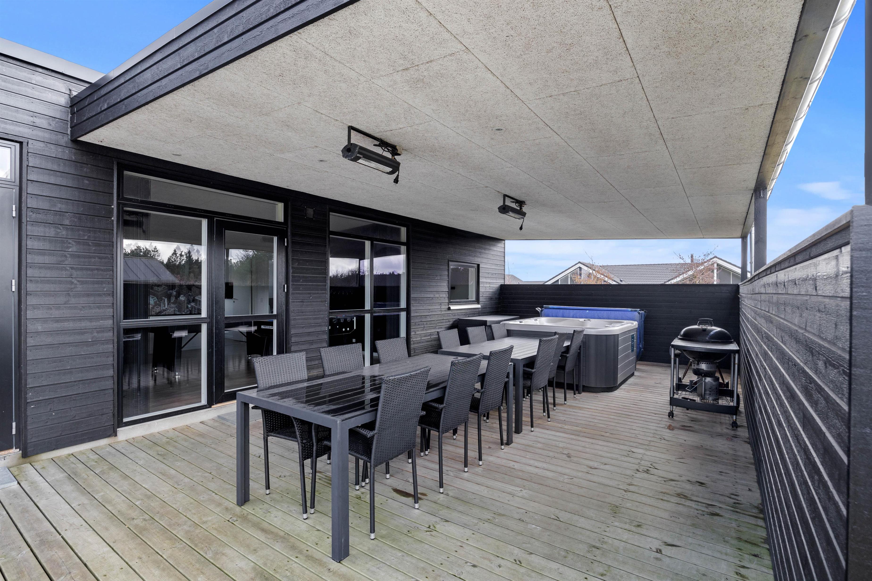 Udenfor venter jer et indbydende terrasseområde på alverdens muligheder for at nyde de varme dage. Her finder I en delvist overdækket og afskærmet terrasse, perfekt til at nyde et måltid under åben himmel med familie og venner.