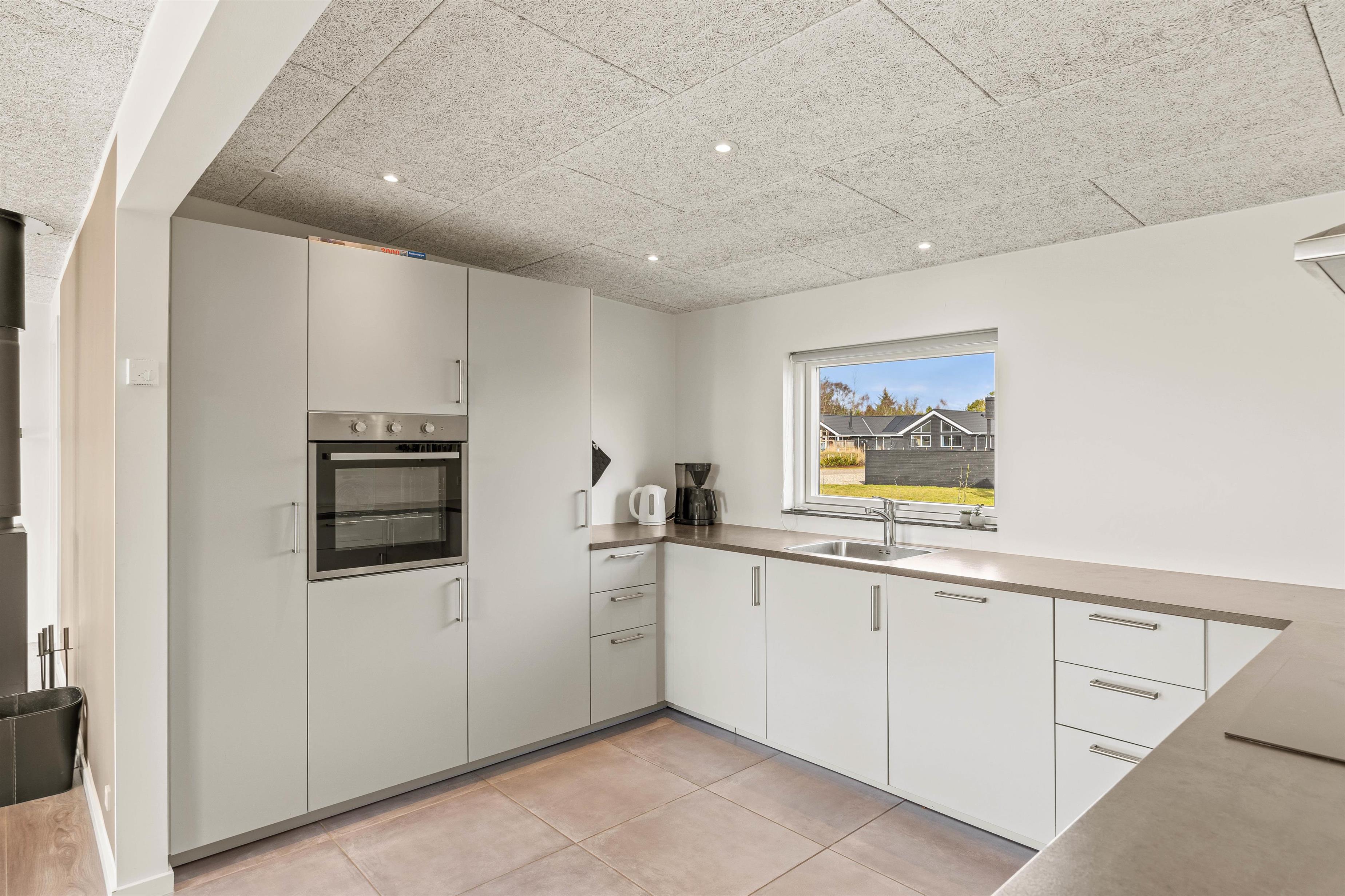 Indenfor i sommerhuset møder I et fuldt udstyret køkken, hvor en praktisk opvaskemaskine gør det let for jer at vende hurtigt tilbage til feriens hyggelige stunder. I stuen står en charmerende brændeovn, der spreder varme og hygge, mens I slapper af i de bløde sofamøbler.