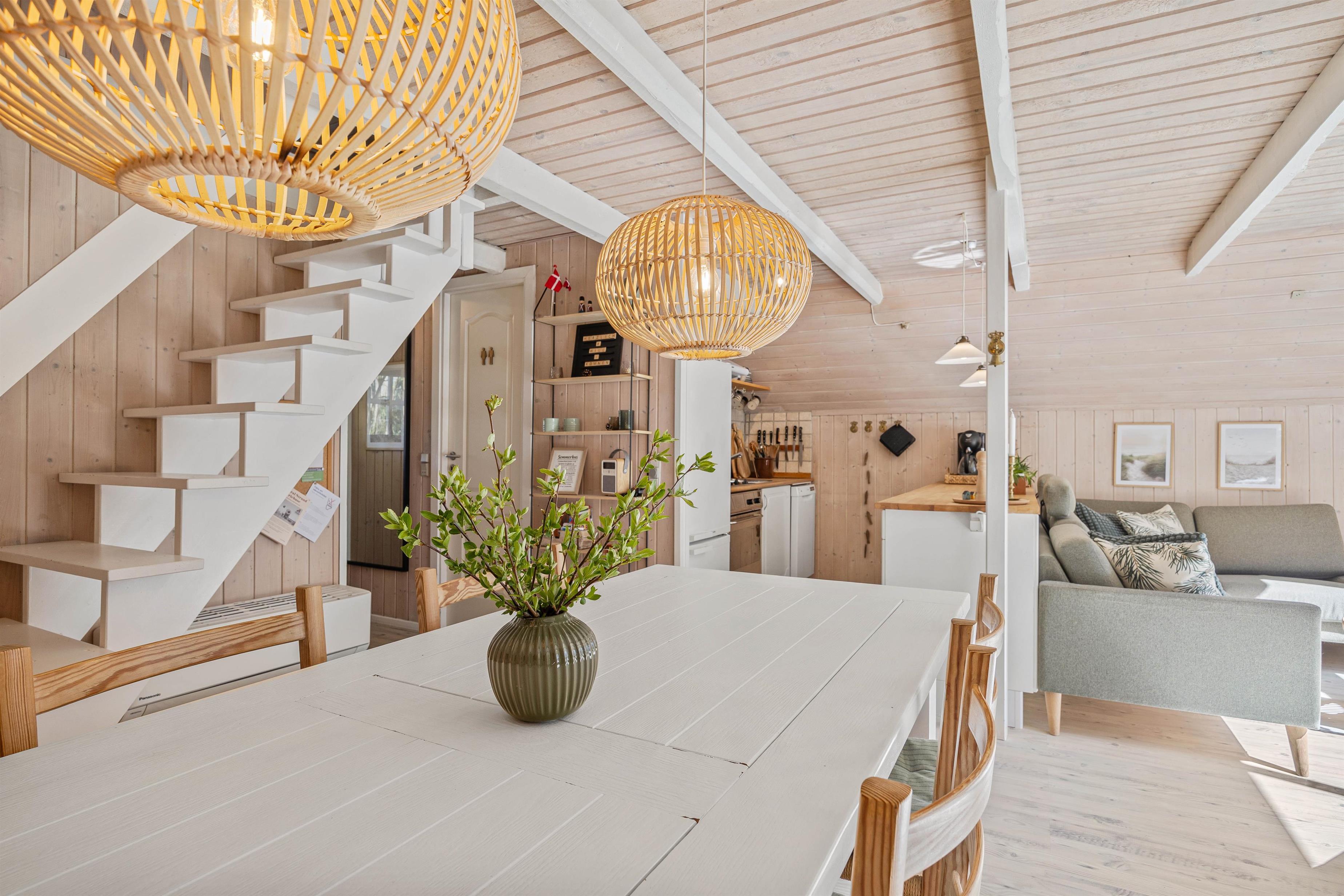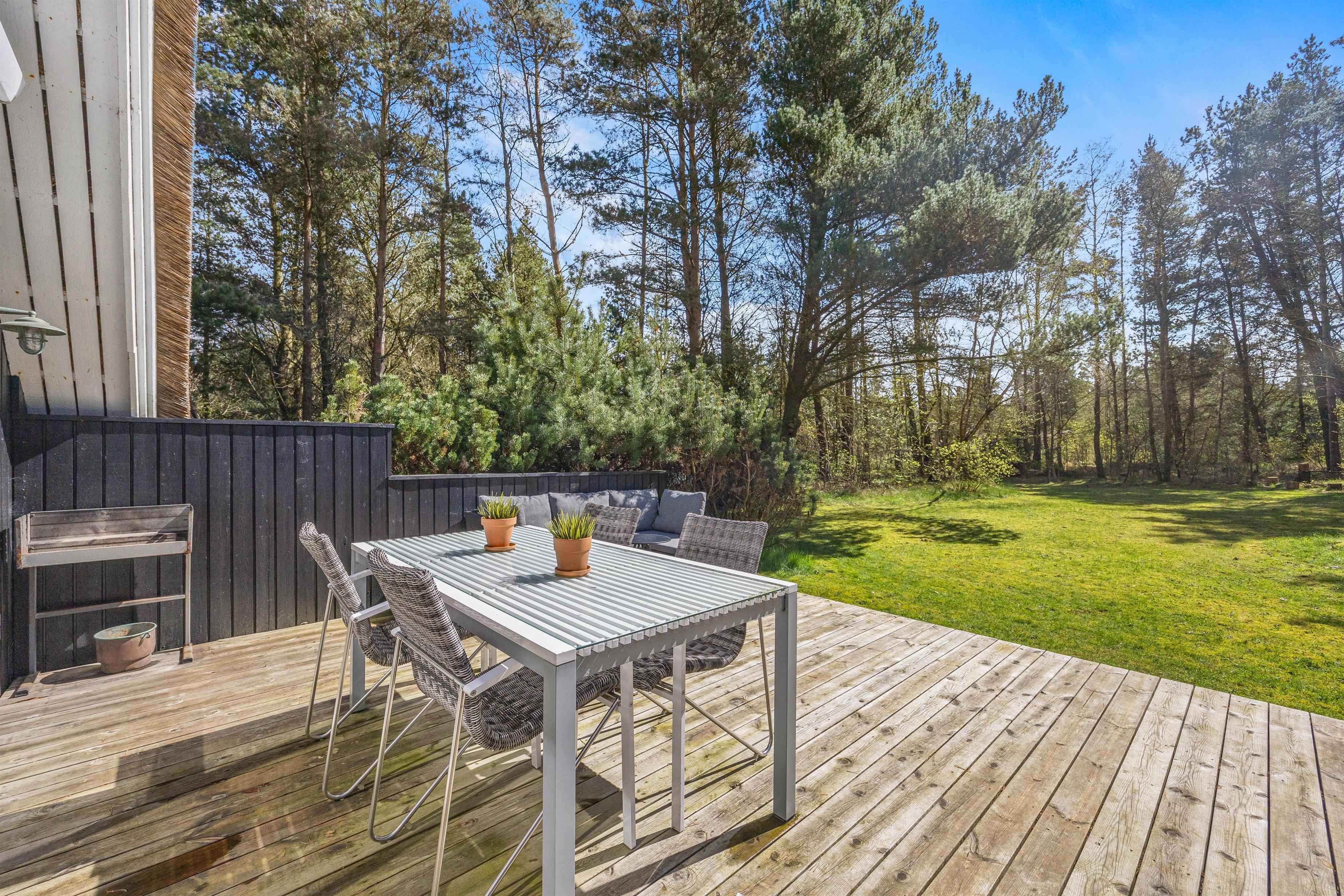 Sommerhuset er smukt indlejret på en 2600 kvadratmeter naturgrund, omgivet af frodige træer og buske, der giver en følelse af fred og ro. Den åbne terrasse, der strækker sig ud i det naturskønne område, indbyder til afslapning og nydelse af ferien. Her finder I alt, hvad I behøver for at gøre opholdet behageligt og mindeværdigt - fra komfortable havemøbler og solvogne til en praktisk grill, der giver jer mulighed for at tilberede lækre måltider udendørs. Mens I sidder på terrassen, kan I fordybe jer i naturens lyde og nyde øjeblikket.