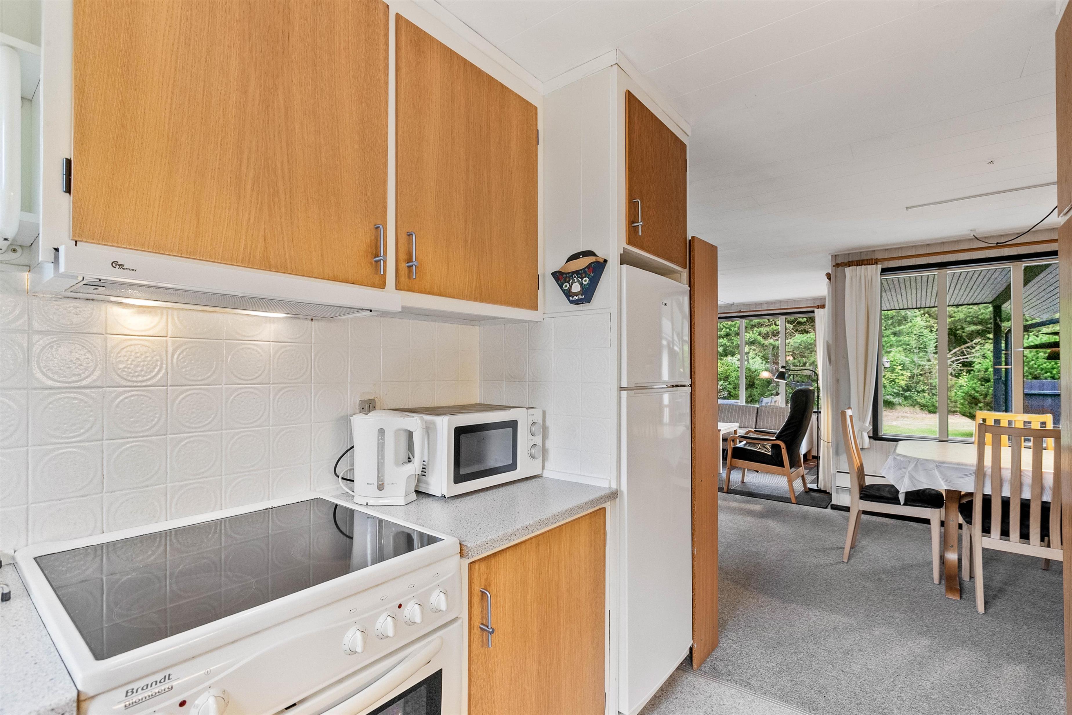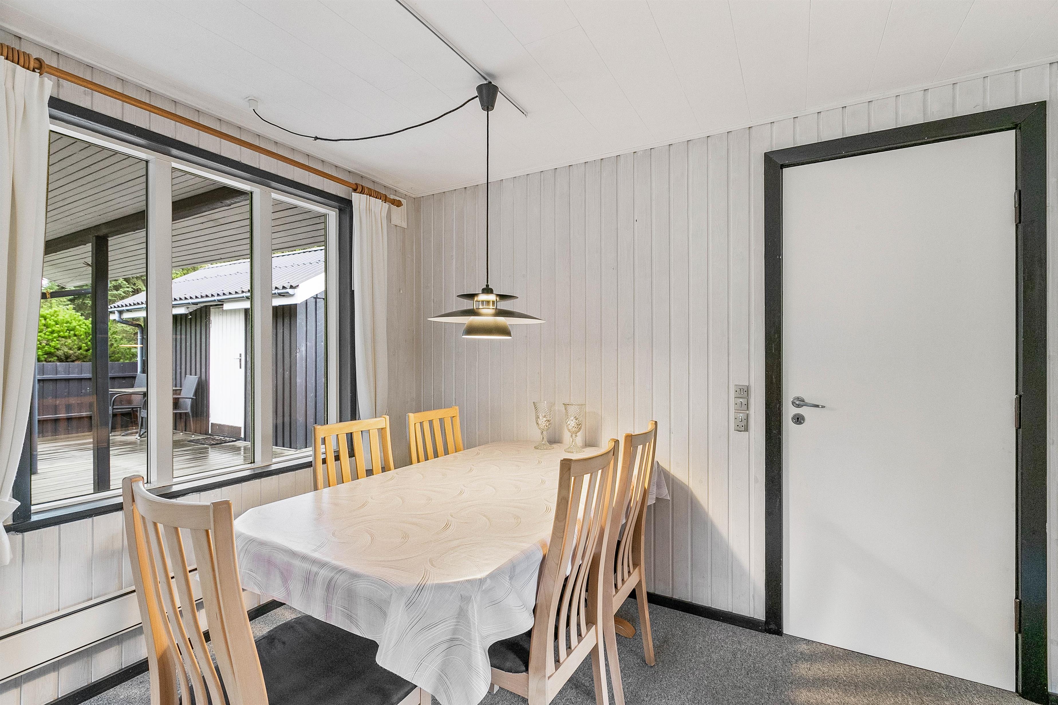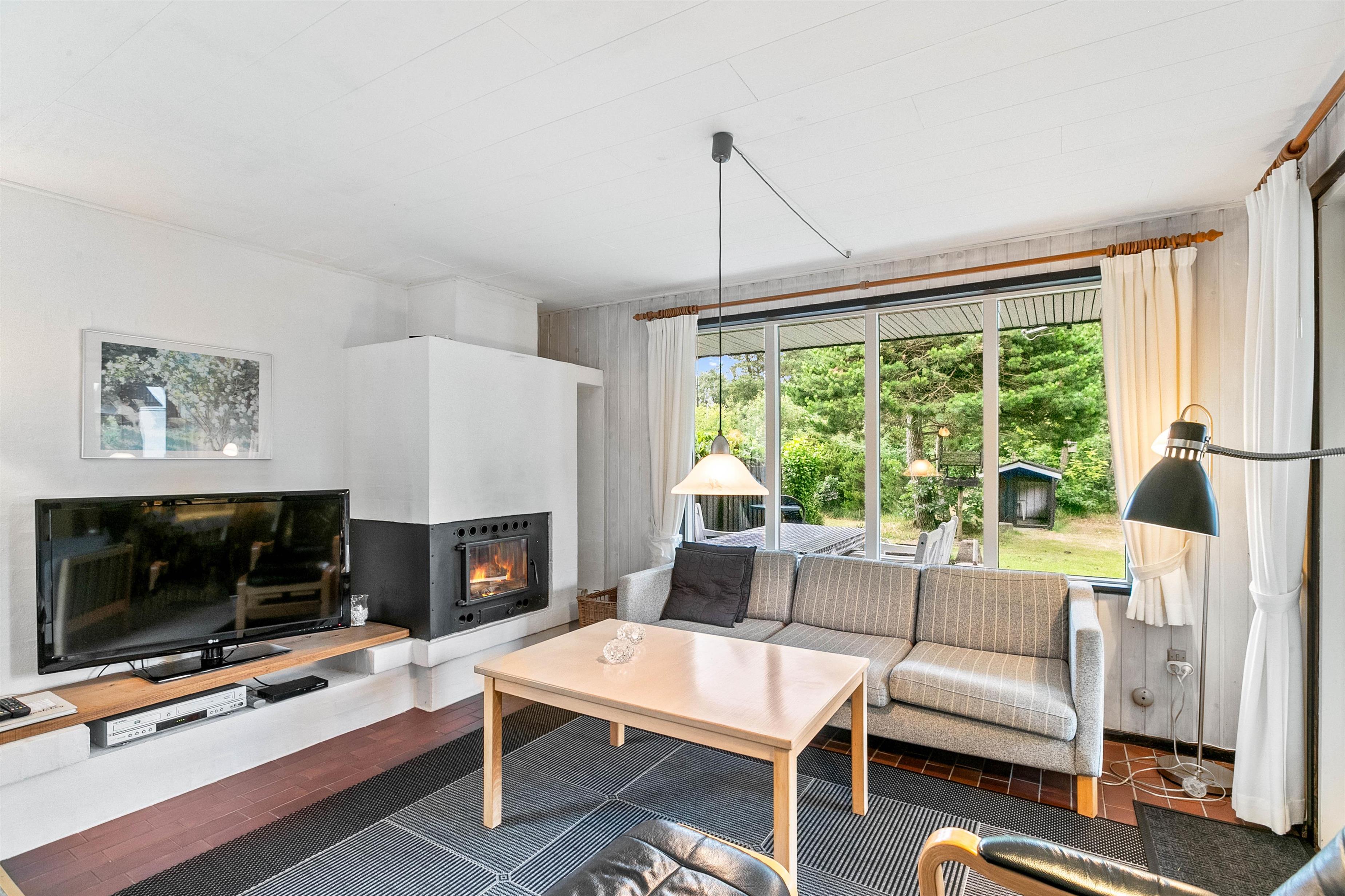 Kom godt ned i tempo og få ladet batterierne op, inden hverdagen igen presser sig på. Feriehusets hyggelige stue giver jer mulighed for at nyde en stille stund ved varmen fra brændeovnen, eller I kan slå benene op og se en god film sammen, mens mørket falder på udenfor. Når sommerhuset skal varmes op, kan I også benytte jer af varmepumpen, der hurtigt og effektivt varmer hele boligen op.