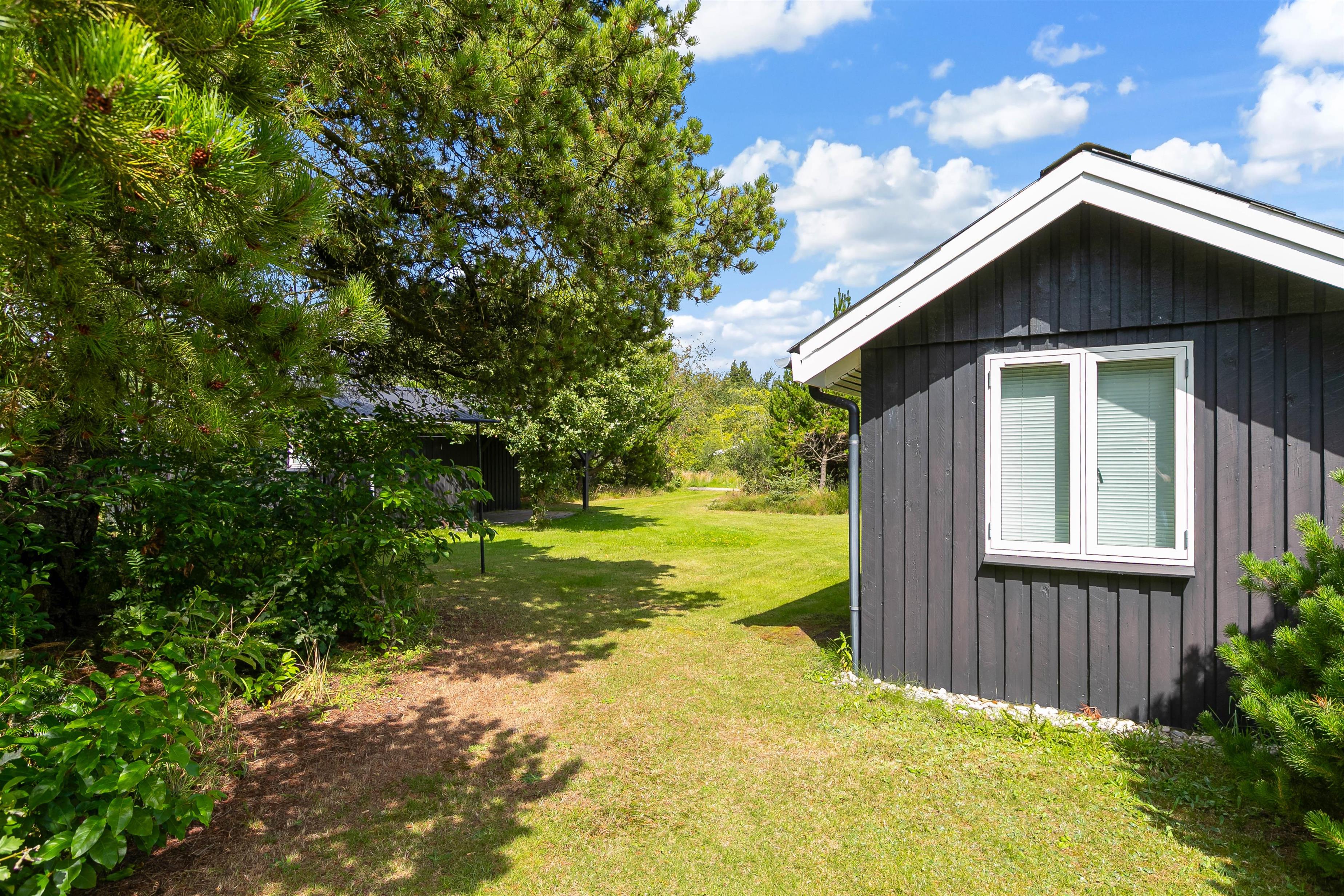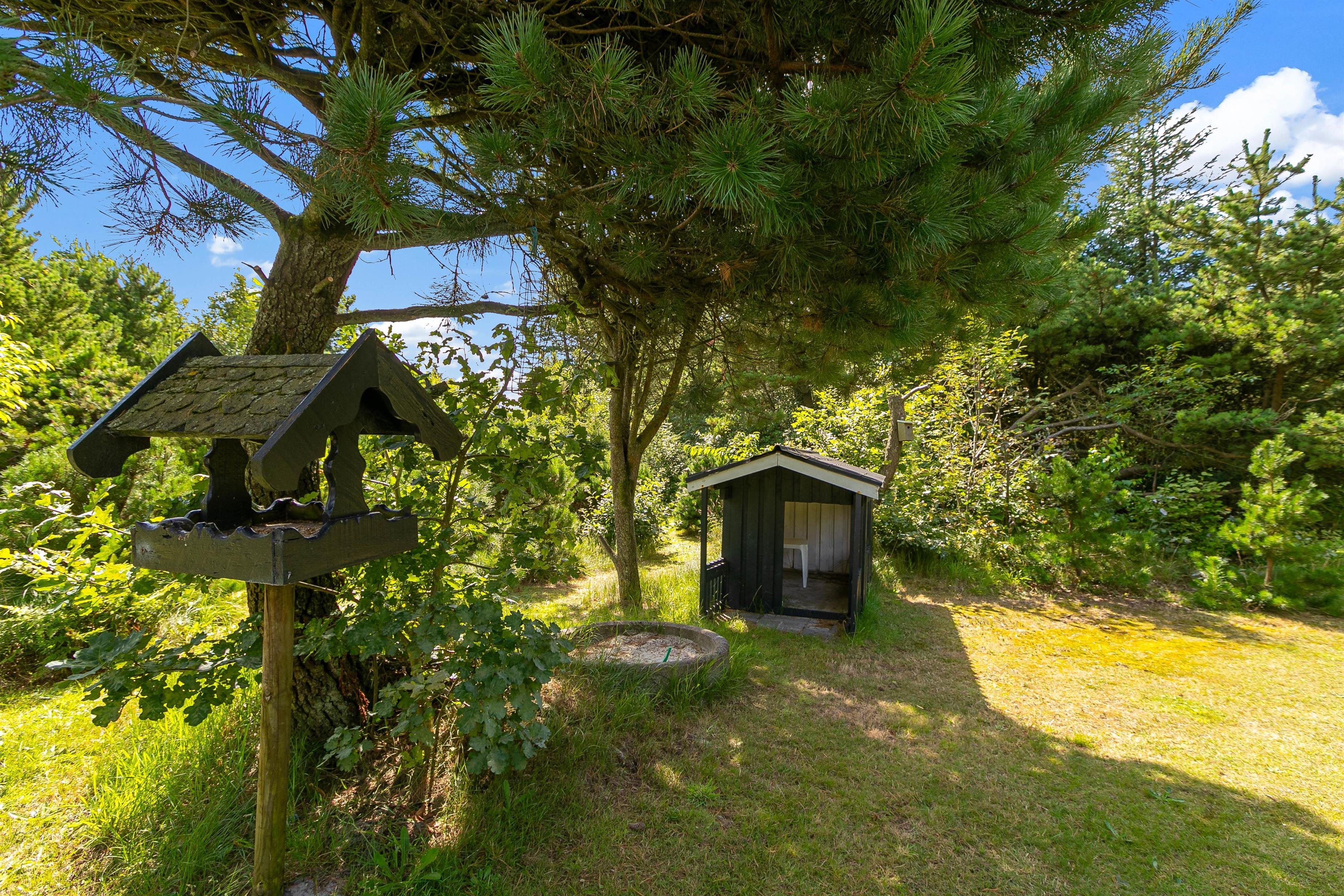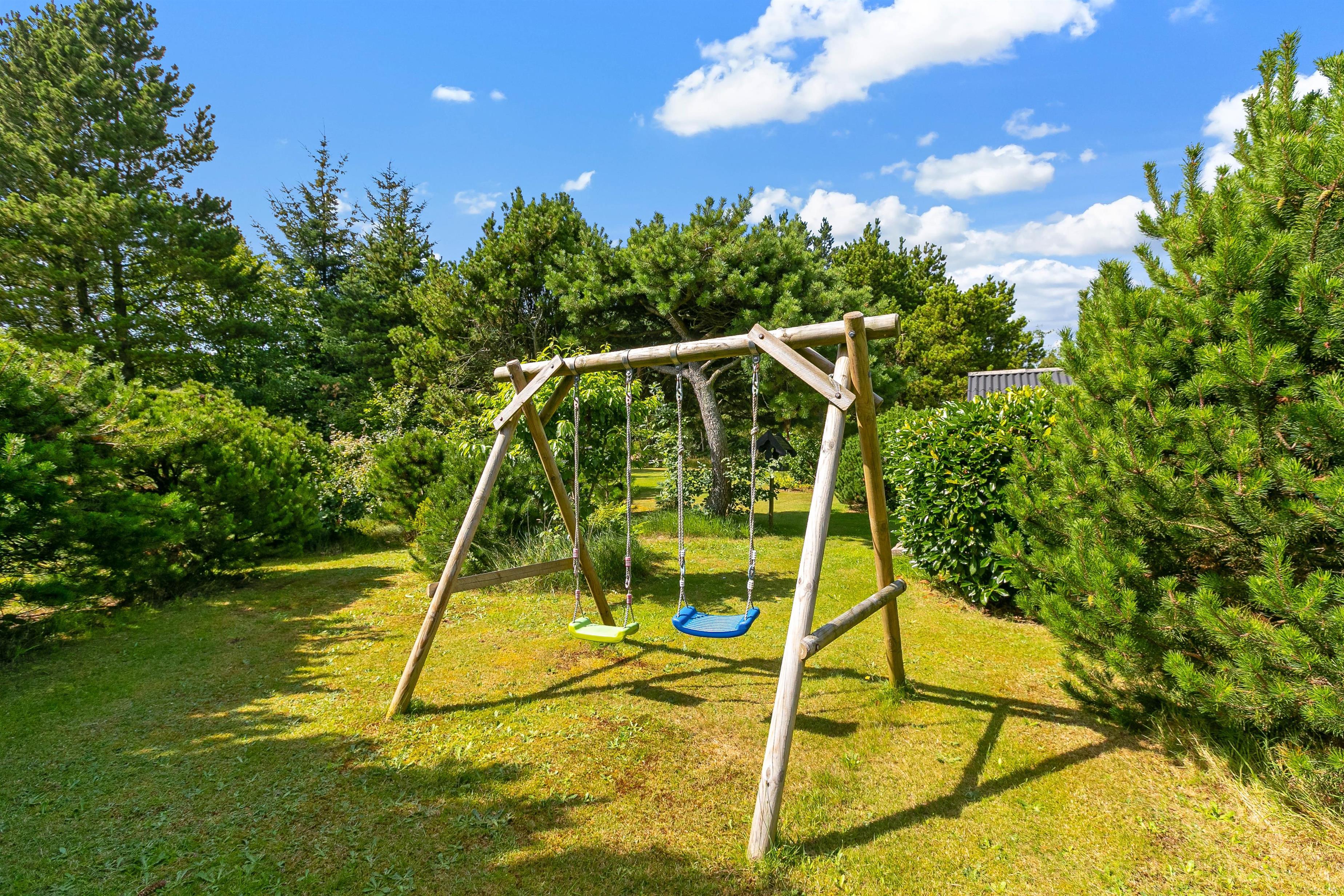 Feriehusets grund er omgivet af træer, så I vil opleve en dejlig privat følelse på jeres ferie, og der vil være mange læmuligheder på grunden. Haven er fyldt med små hyggekroge, samt der er gyngestativ, hvor børnene kan slå sig løs. Haven giver også mulighed for mange udendørs aktiviteter; her er det kun fantasien, som sætter grænser.