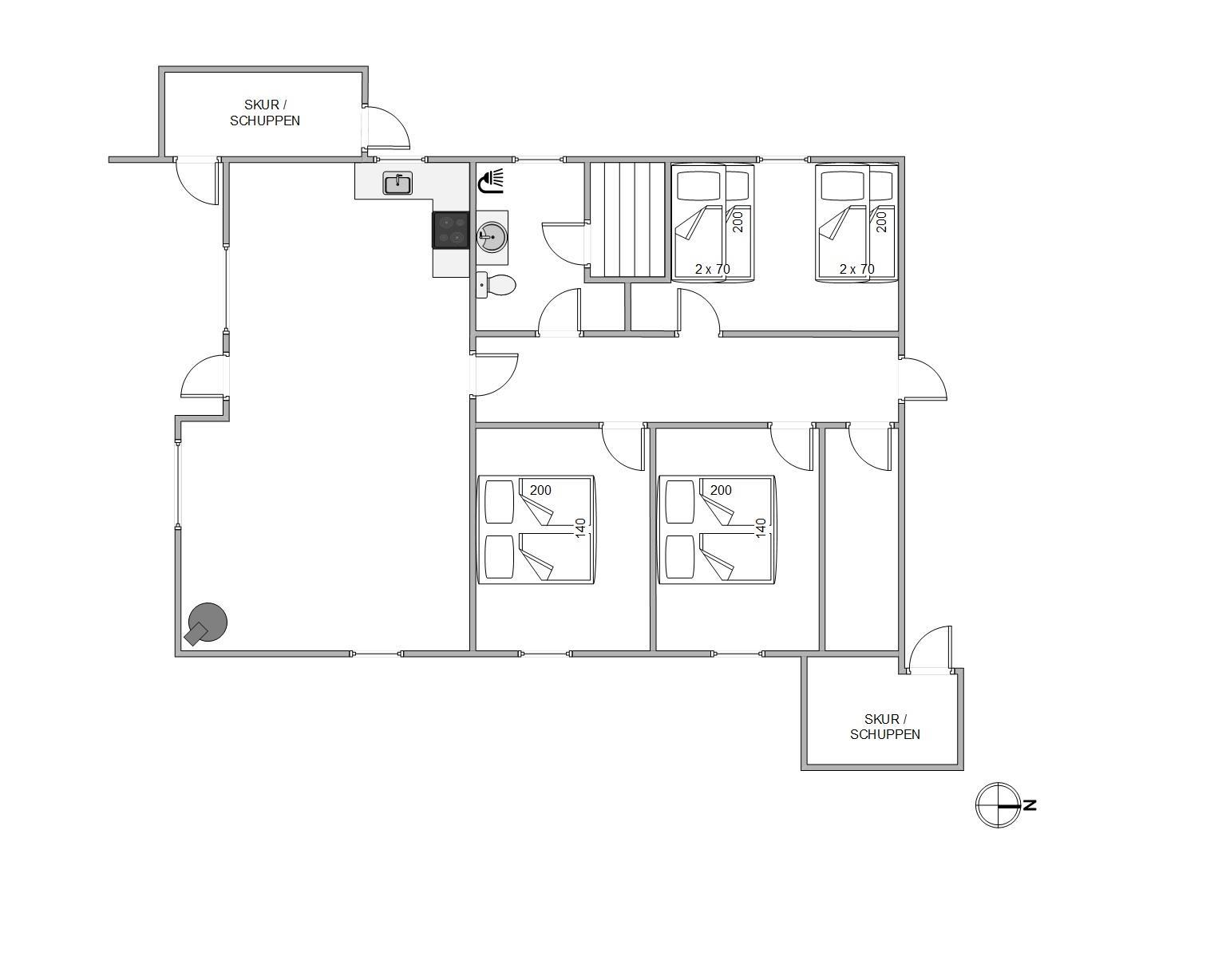 På Peder Larsensvej 69 finder I et nyrenoveret feriehus, som bare venter på at byde jer velkommen, og skabe den perfekte ramme for jeres næste ferie. Feriehuset som er på 74m² fremstår lyst og hyggeligt, og råder over hele 3 soveværelser, og et lækkert køkken, hvor I helt sikkert kan tilberede noget lækkert mad. Husets opvaskemaskine giver selvfølgelig gerne en hjælpende hånd med opvasken, så I får mere tid til familiehygge. Badeværelset som er enkelt og stilrent har også en sauna, hvor I kan trække jer tilbage og mærke varmen løsne op i kroppen.