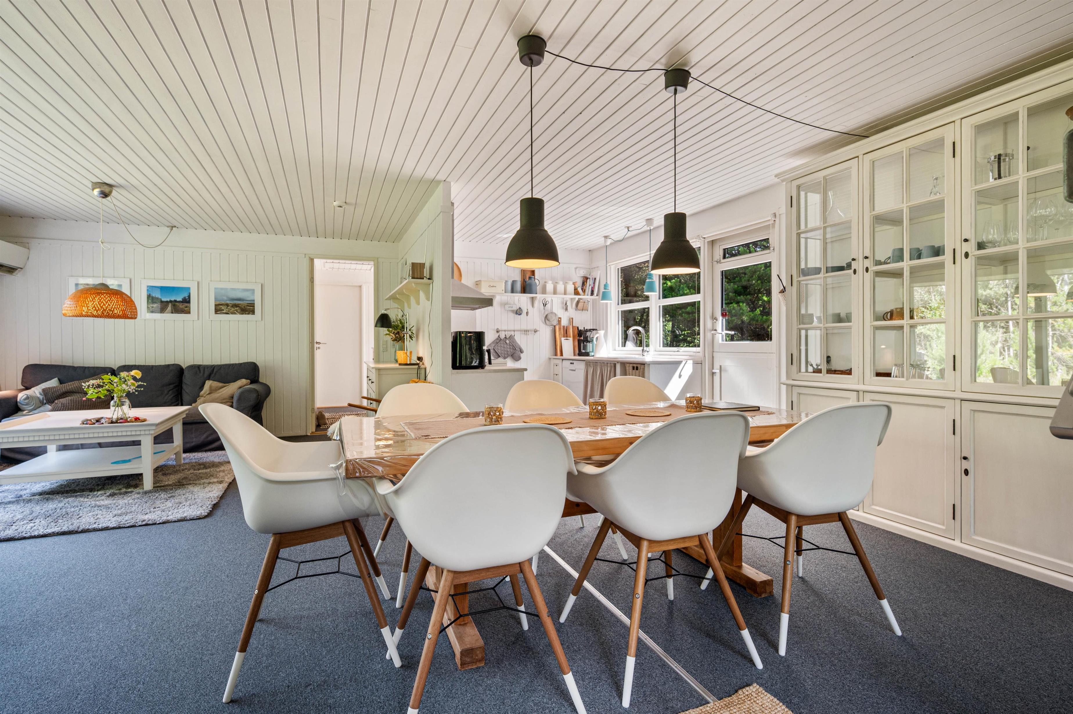 Her i dette feriehus forefindes både børneseng og højstol. Det ene køjerum er sågar indrettet med pusleplads og tremmeseng og i det andet finder I et langt skrivebord, så der er ekstra plads til hobby eller computer.
