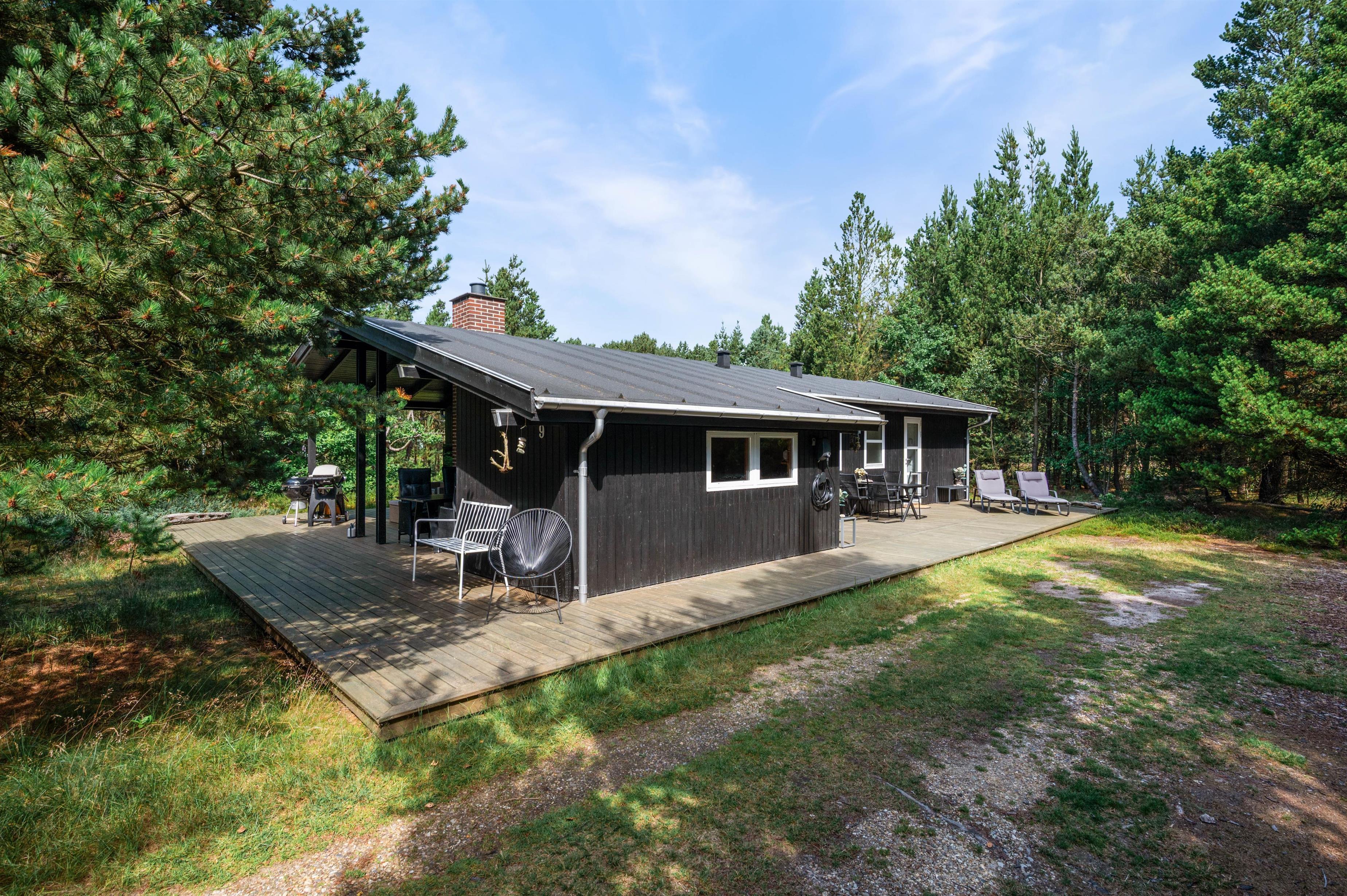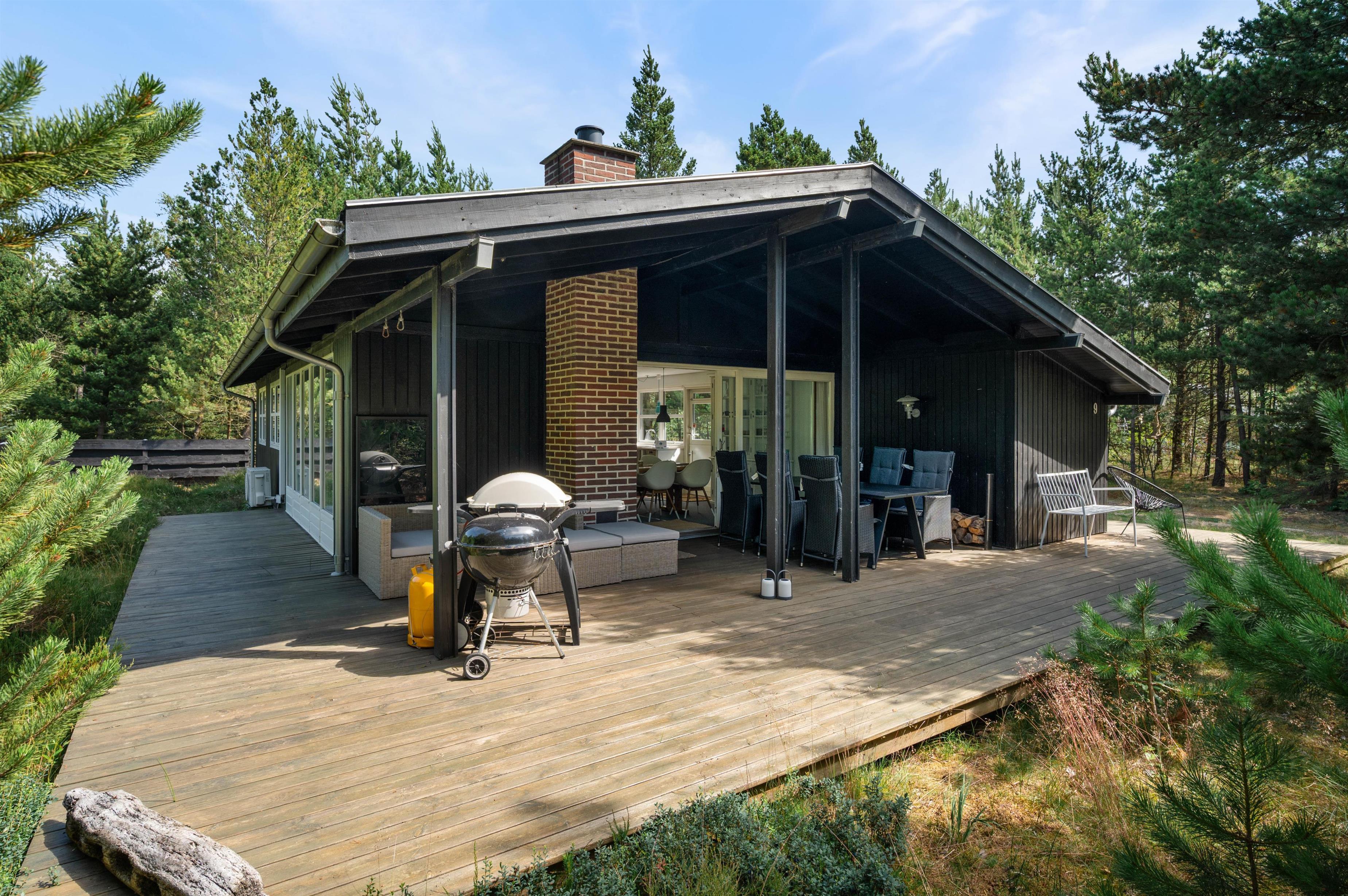 Med udgang fra både køkken og stue er der dejlige ophøjede træ-terrasse på 3 sider af huset. Her kan I altid finde ro og en perfekt læplads til solslikkeri eller en lang "morfar" i skyggen i en af husets bekvemme liggestole. Efter at have tilbragt en lang dag ved stranden, er det skønt at se frem til en stille aften på terrassen med grillmad og gode samtaler, og skulle det dryppe lidt, kan I sagtens tænde op alligevel, da en del af terrassen er overdækket.