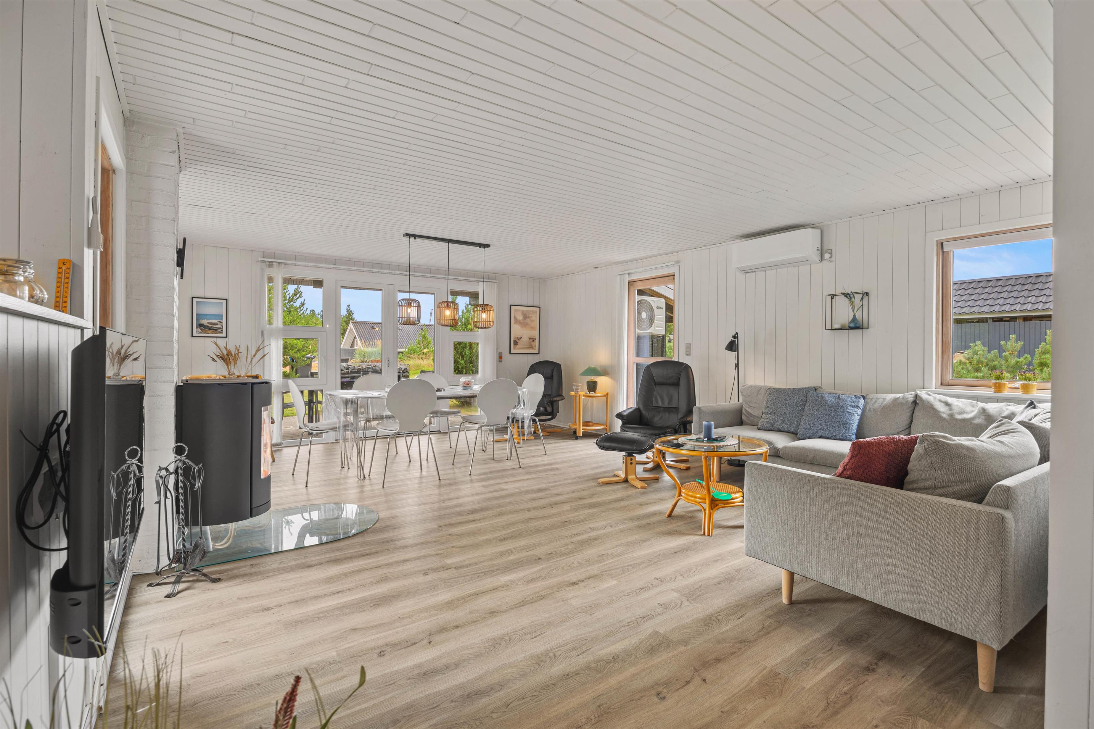 Husets hjerte er opholdsrummet, der ligger i åben forbindelse med køkkenet. Her er samværet i centrum, og der vil med garanti blive skabt masser af nye ferieminder med hyggelige middage rundt om spisebordet og afslapning på sofaen foran den knitrende brændeovn.
