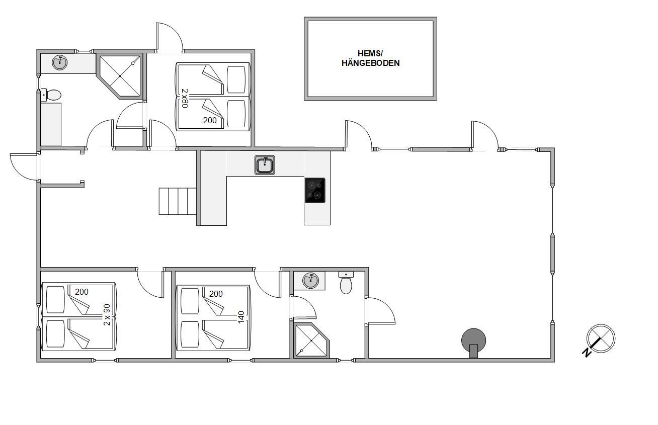 Huset er indrettet med 2 badeværelser, og det ene har I endda adgang til gennem soveværelset.