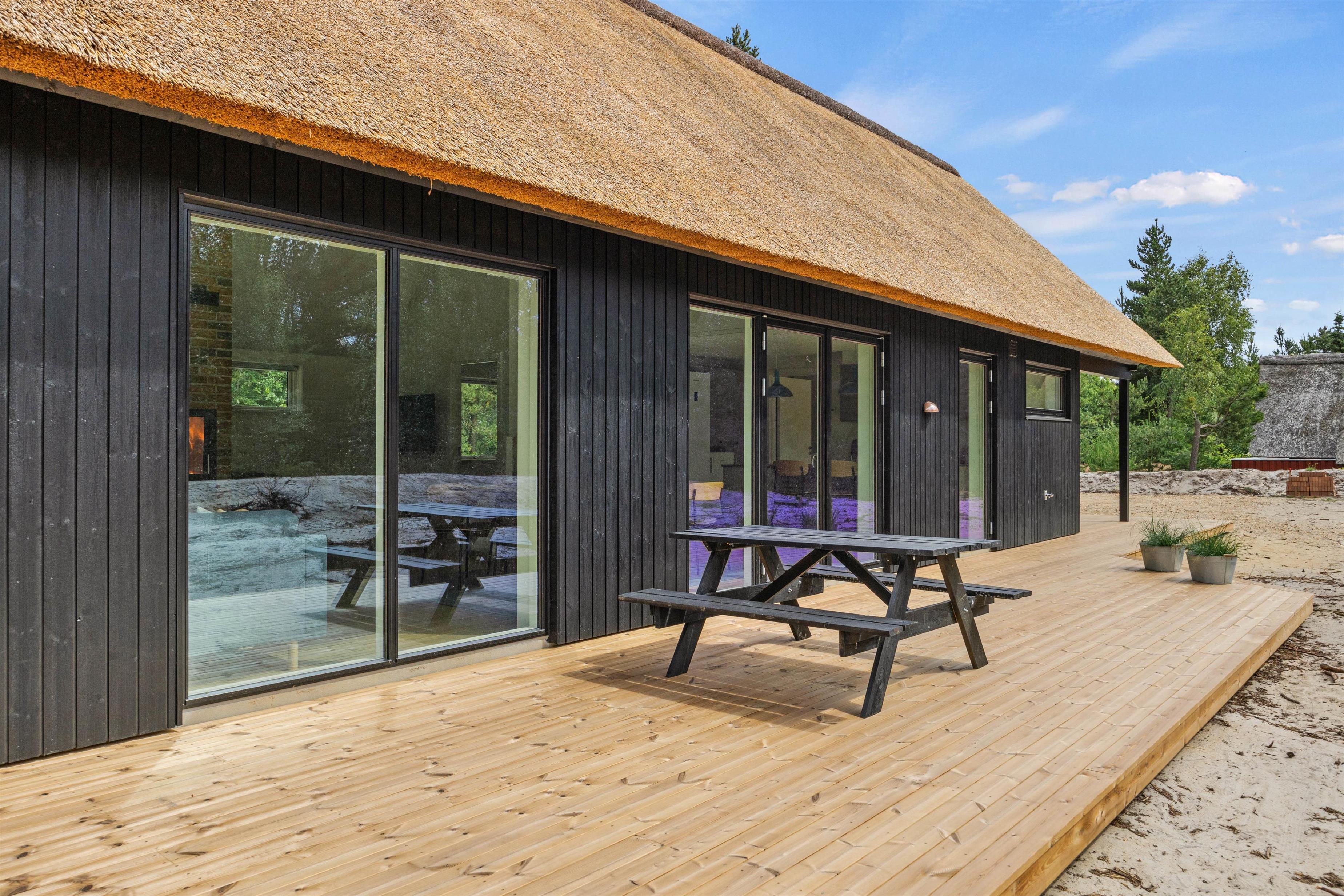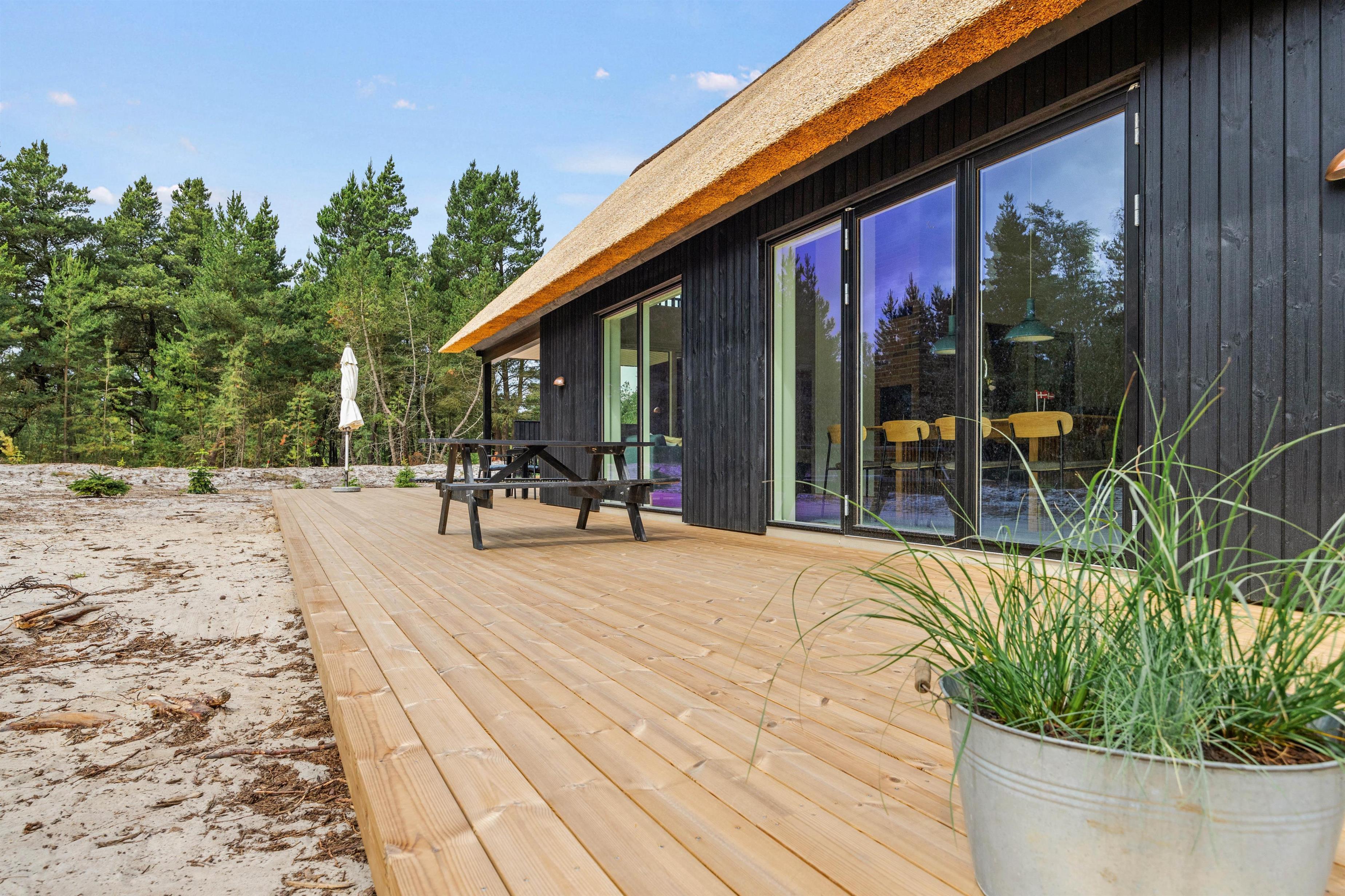 I naturskønne Houstrup, på Hans Hansensvej 41, finder I dette stilfulde 4-stjernet sommerhus, opført i 2025. Huset kombinerer moderne komfort med det charmerende traditionelle stråtag og tilbyder hele 171 m2 boligareal.