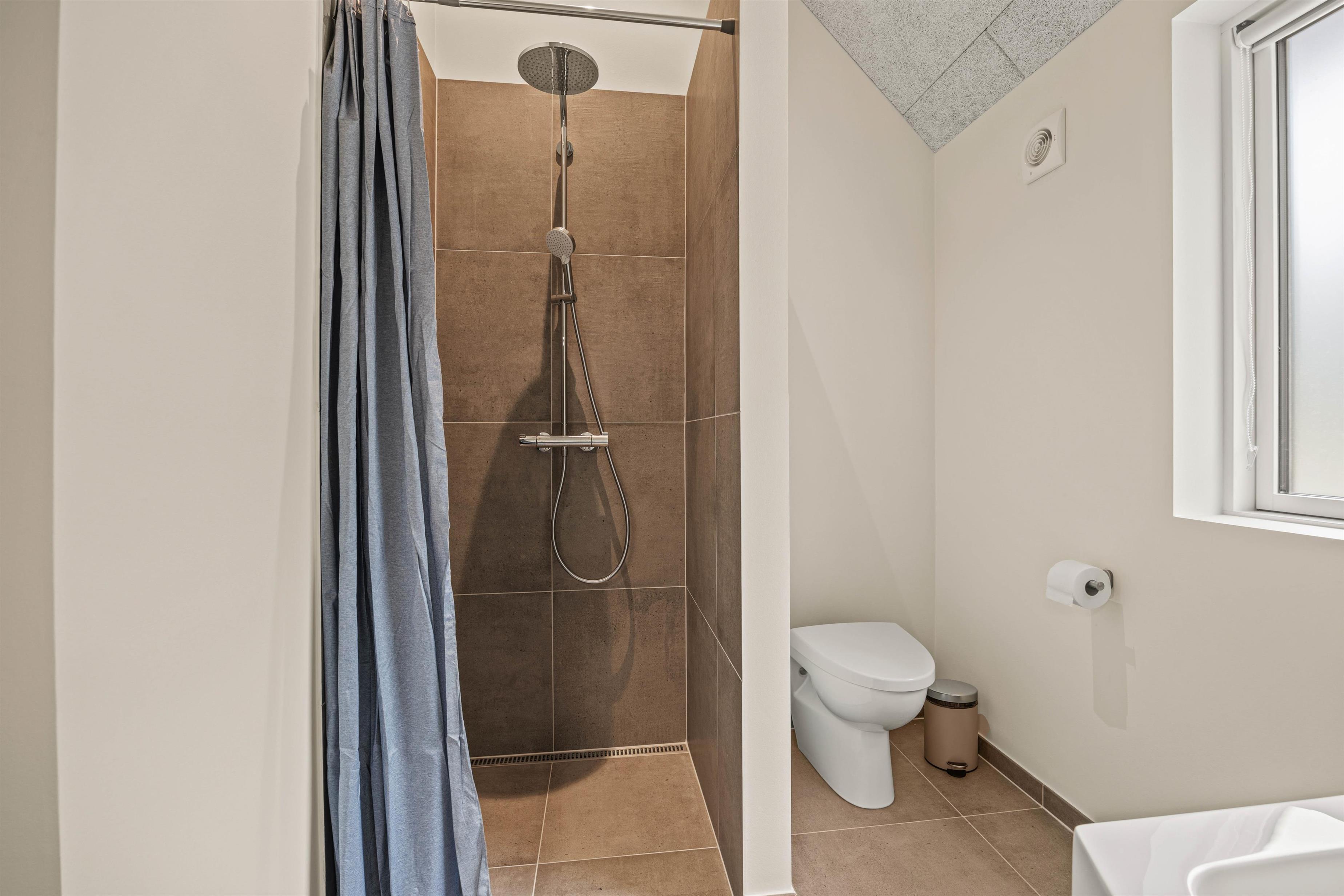 Sommerhuset har to dejlige badeværelser, begge med komfortabel gulvvarme, og det ene af dem er udstyret med en tømmespa, som er perfekt til afslapning efter en lang dag.