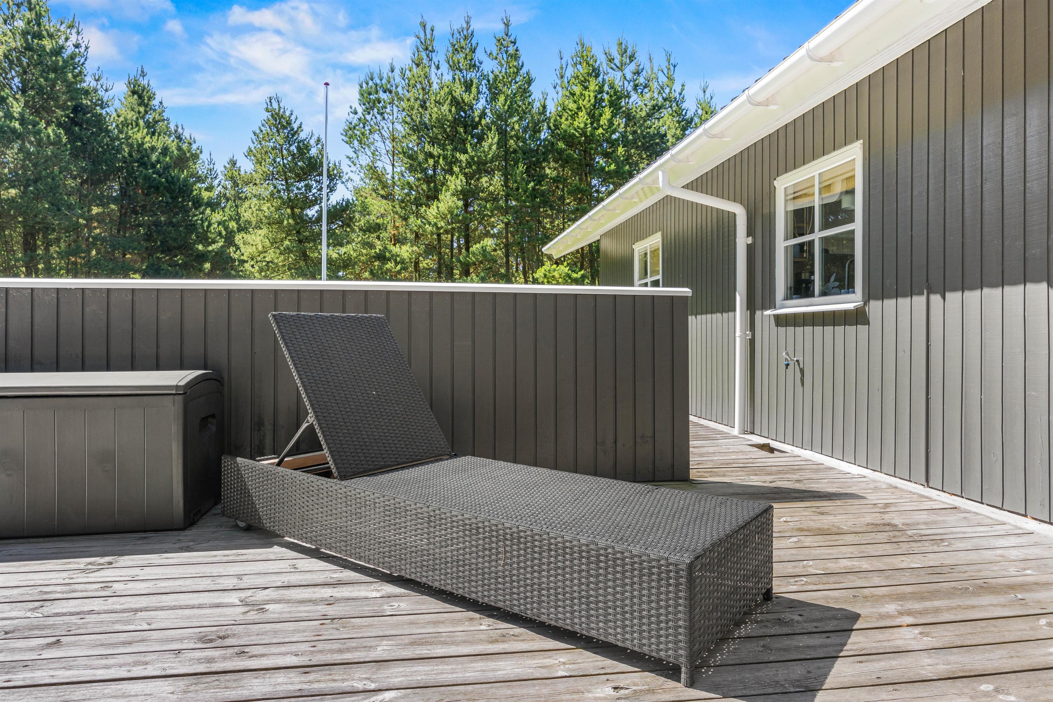 Den 1326 kvadratmeter store plænegrund, hvorpå sommerhuset ligger, giver gode muligheder for at nyde det gode vejr udenfor med bold- og havespil, eller hvis I er mere til afslapning på solvognene, er det bestemt også en mulighed her. Rundt om hele ferieboligen er der terrasse, så I kan nyde hver en solstråle i løbet af dagen. Havemøbler og grill står også til jeres rådighed her, så I blot skal læne jer tilbage og nyde en dejlig ferien.