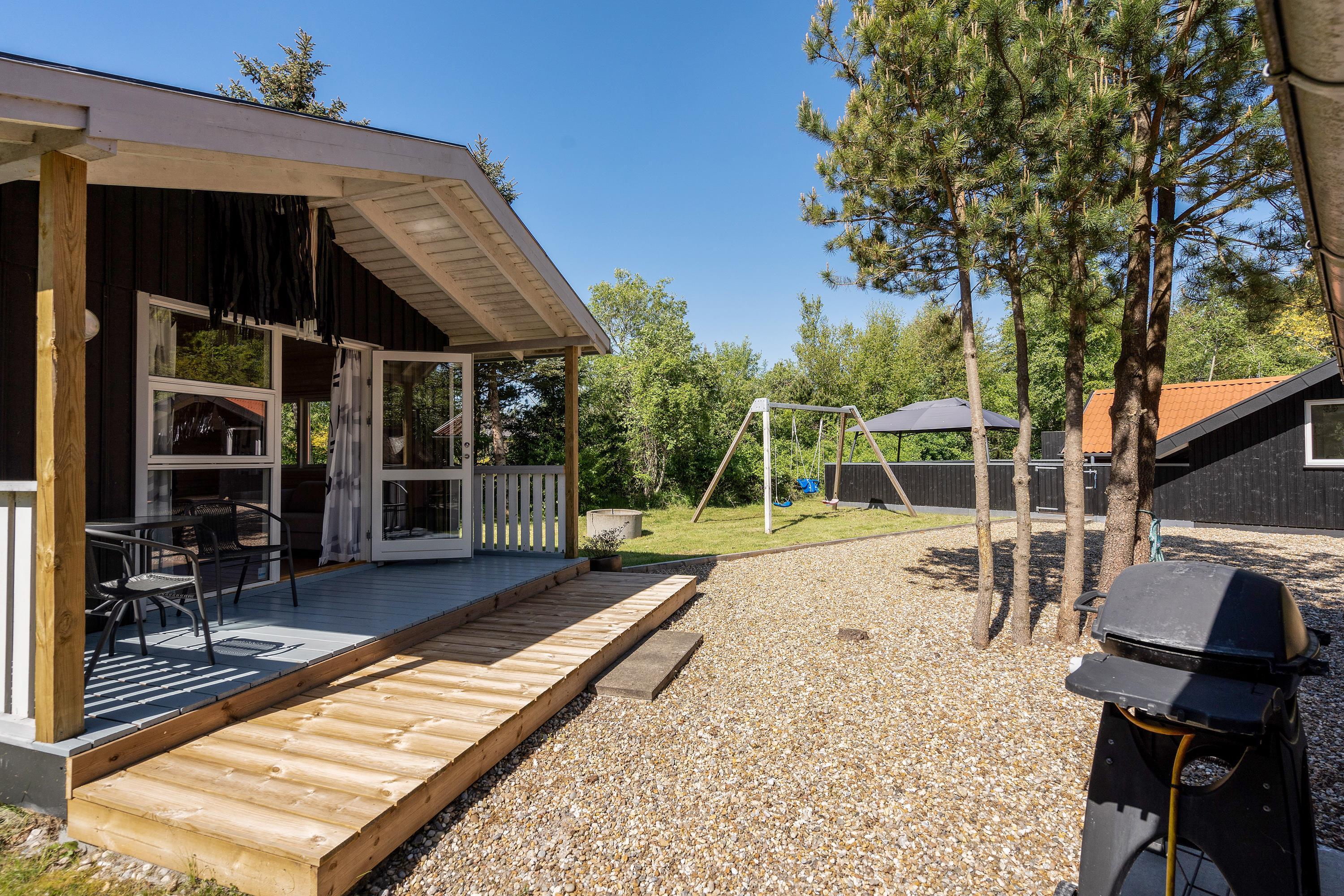 Nyd den læfyldte grund og hyg jer på den lukkede terrasse imens børnene leger på naturgrunden, hvor der også er gynger. Måske skal hele familien også på en tur på skinnecyklerne på den nedlagte bane, der fører gennem smuk natur fra Nr. Nebel til Nymindegab – forbi en grillhytte, så medbring gerne en madpakke med grillpølser. Tilbage i Nr. Nebel kan I købe en kage ved bageren og så nyde den velfortjente eftermiddagskaffe hjemme i jeres egen skønne pavillon.