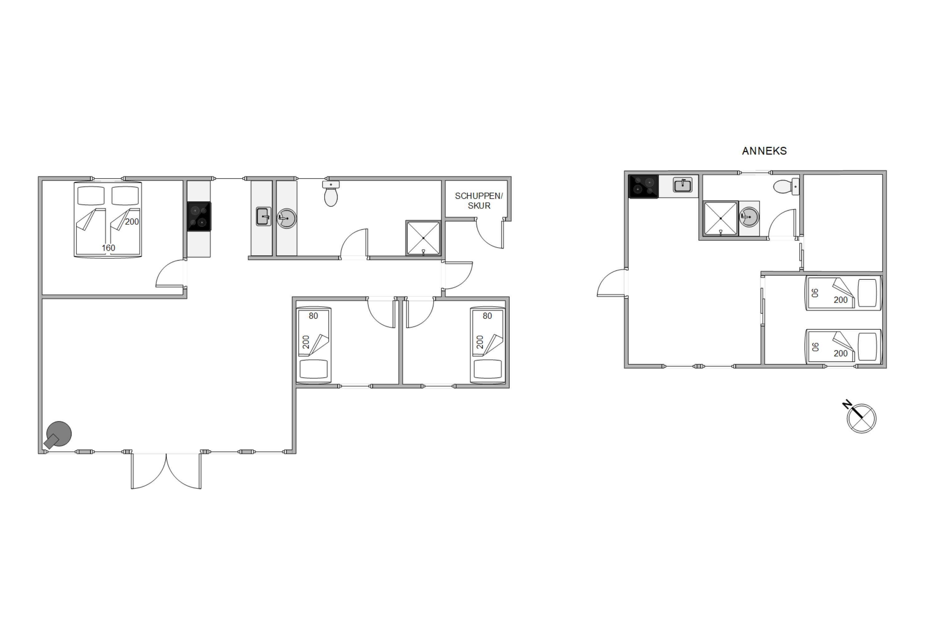 Annekset har 25 m2 og er perfekt, når man gerne vil være sammen og alligevel godt vil have sit eget lille rige. Her er der 2 soverum, et opholdsrum og eget badeværelse.
